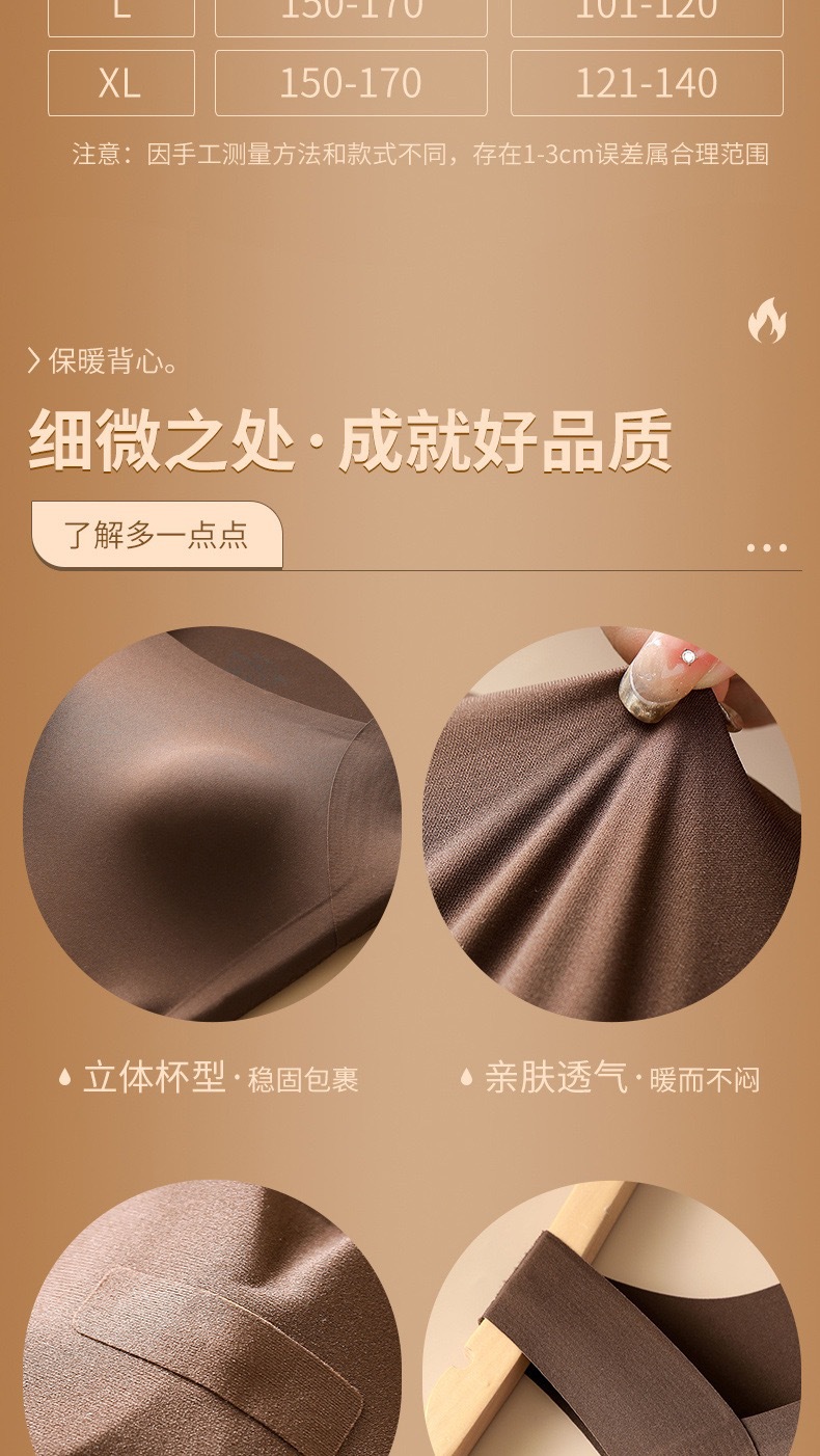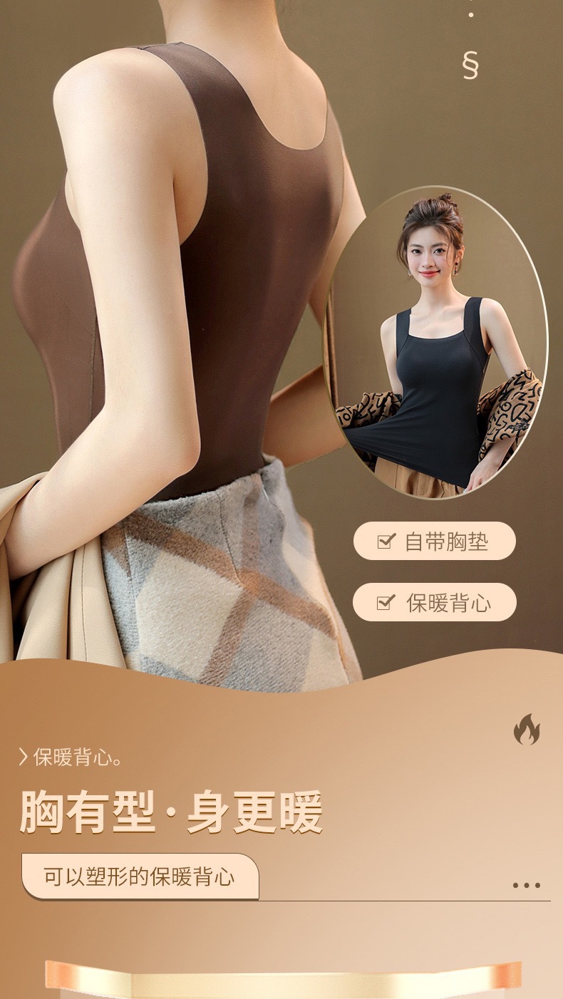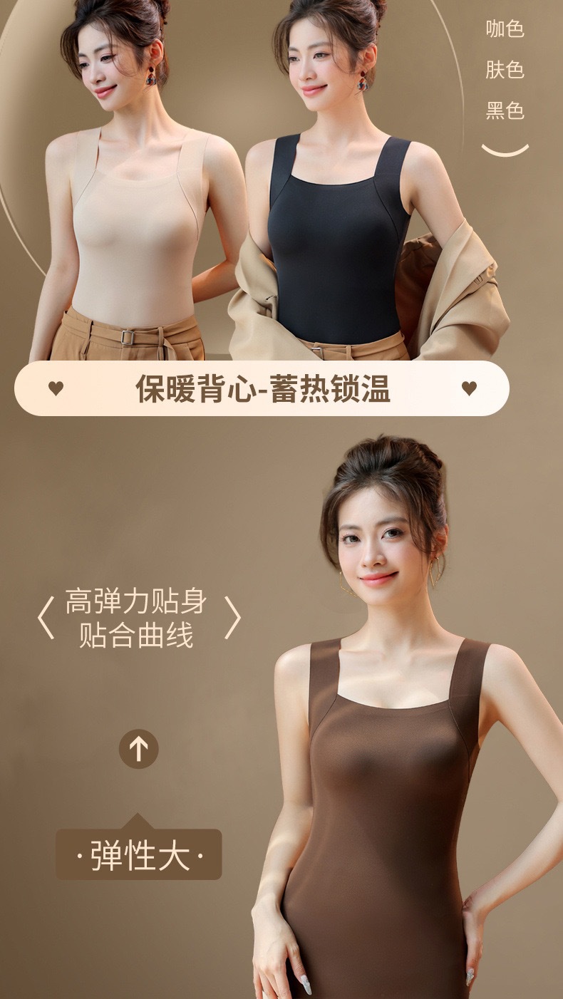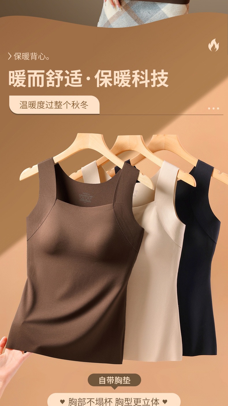 【买一送一】保暖内衣免穿文胸新品秋冬款云朵无痕润肤裸感肌底衣保暖背心女固定杯美肤打底秋衣
