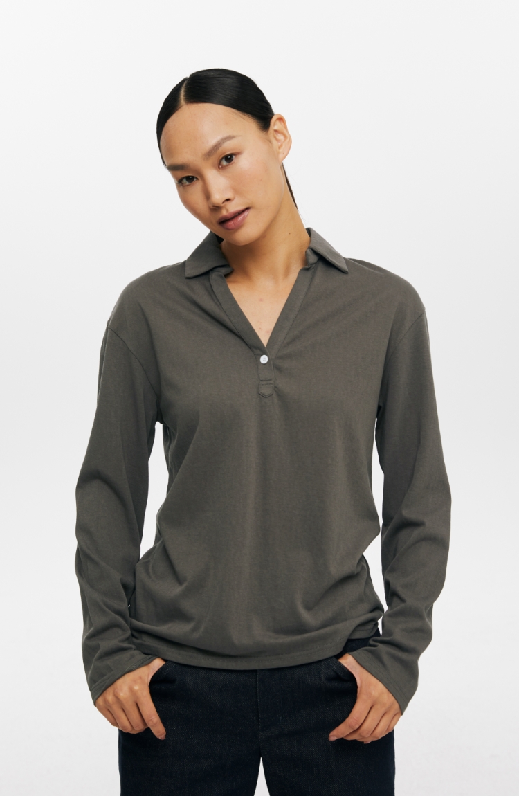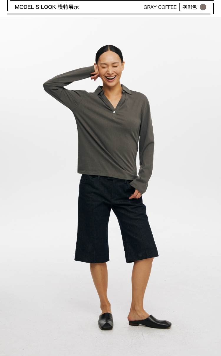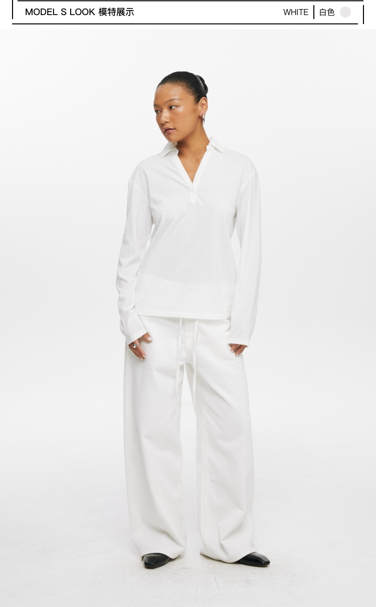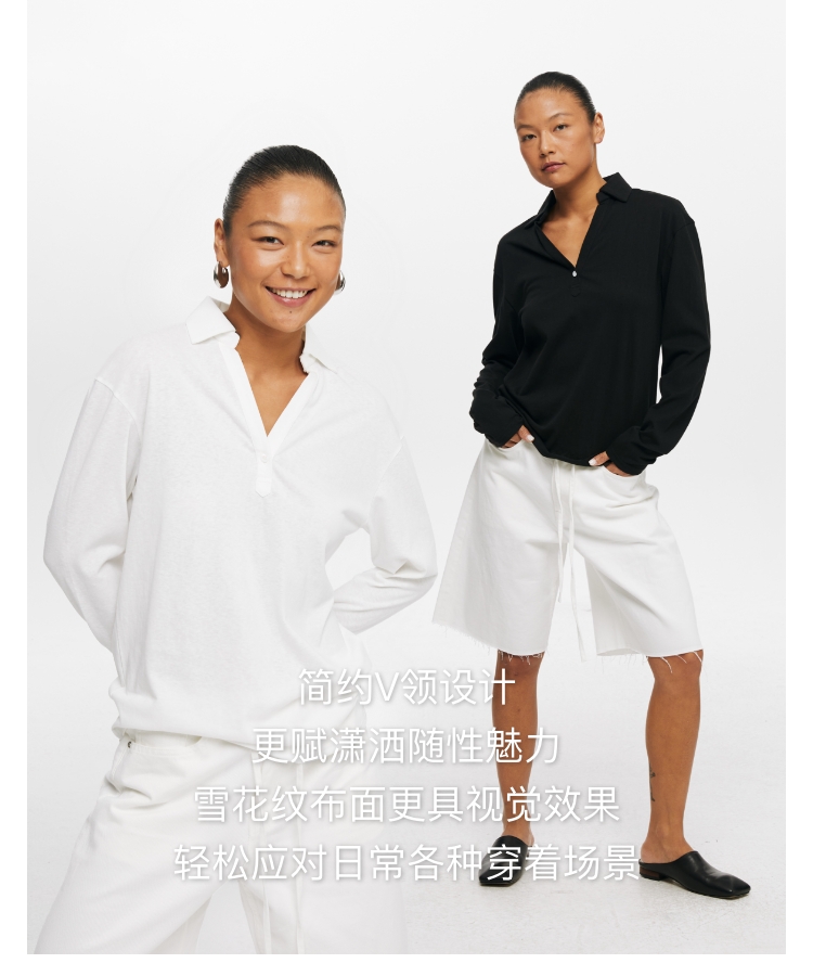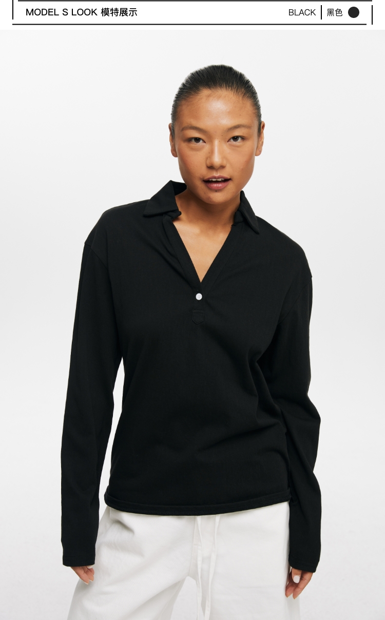 oneup V领翻领宽松长袖Polo