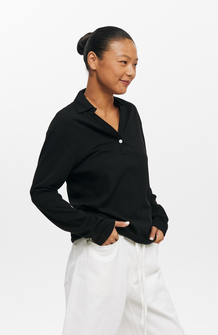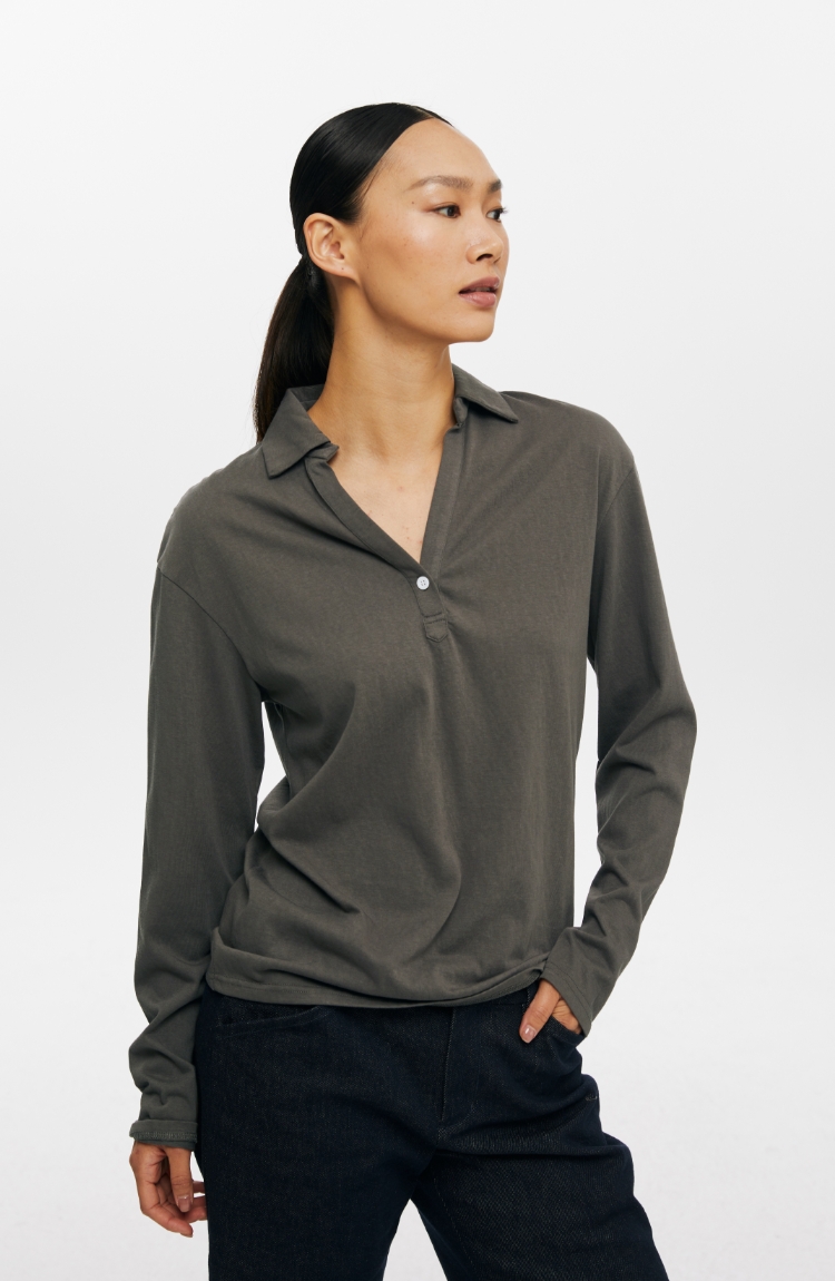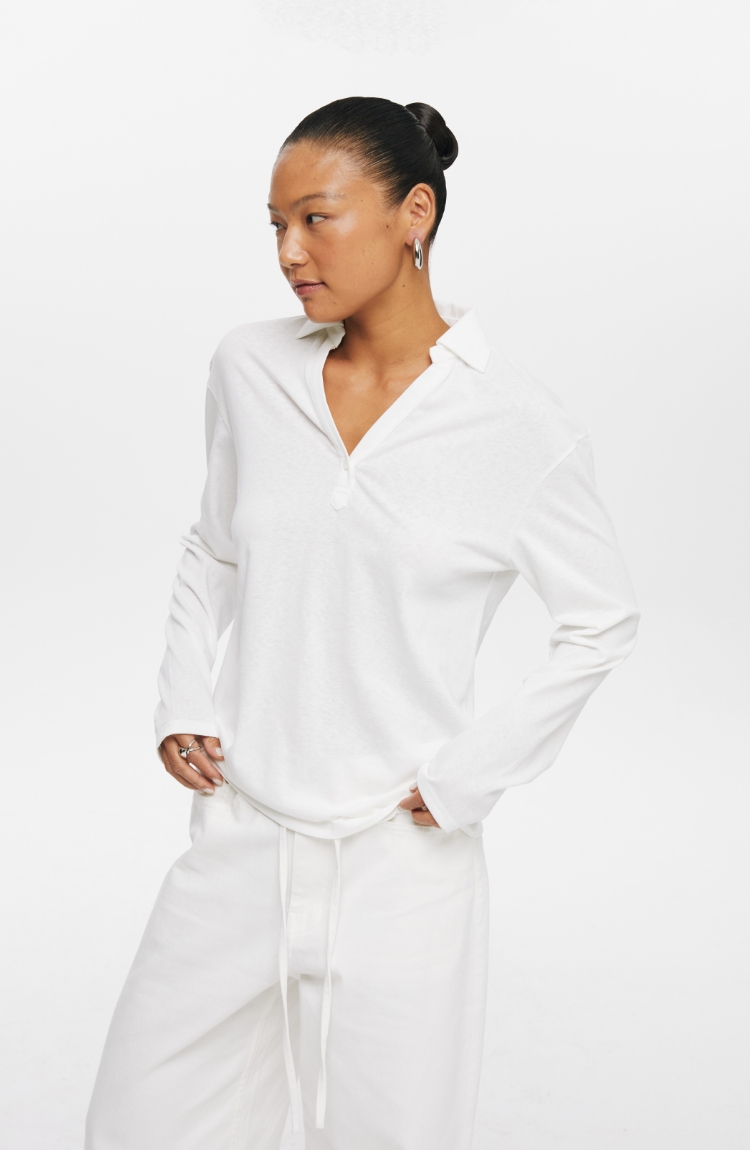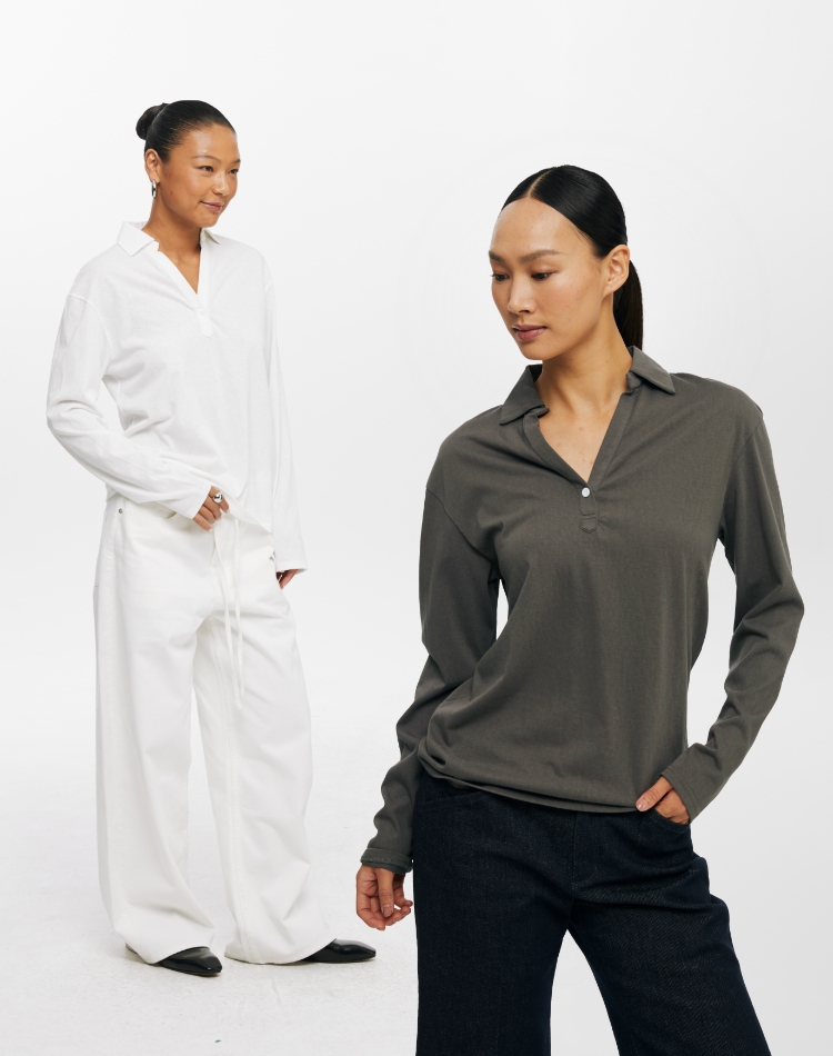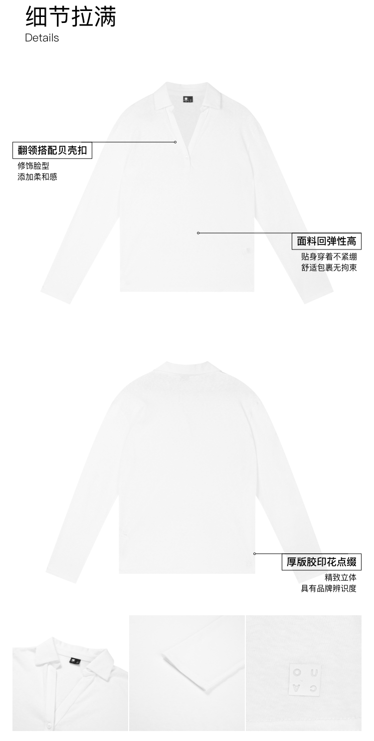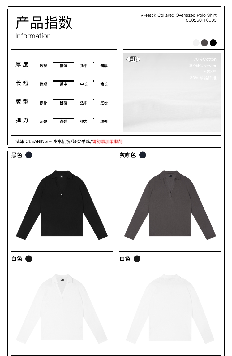 oneup V领翻领宽松长袖Polo
