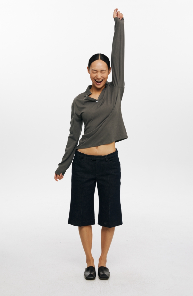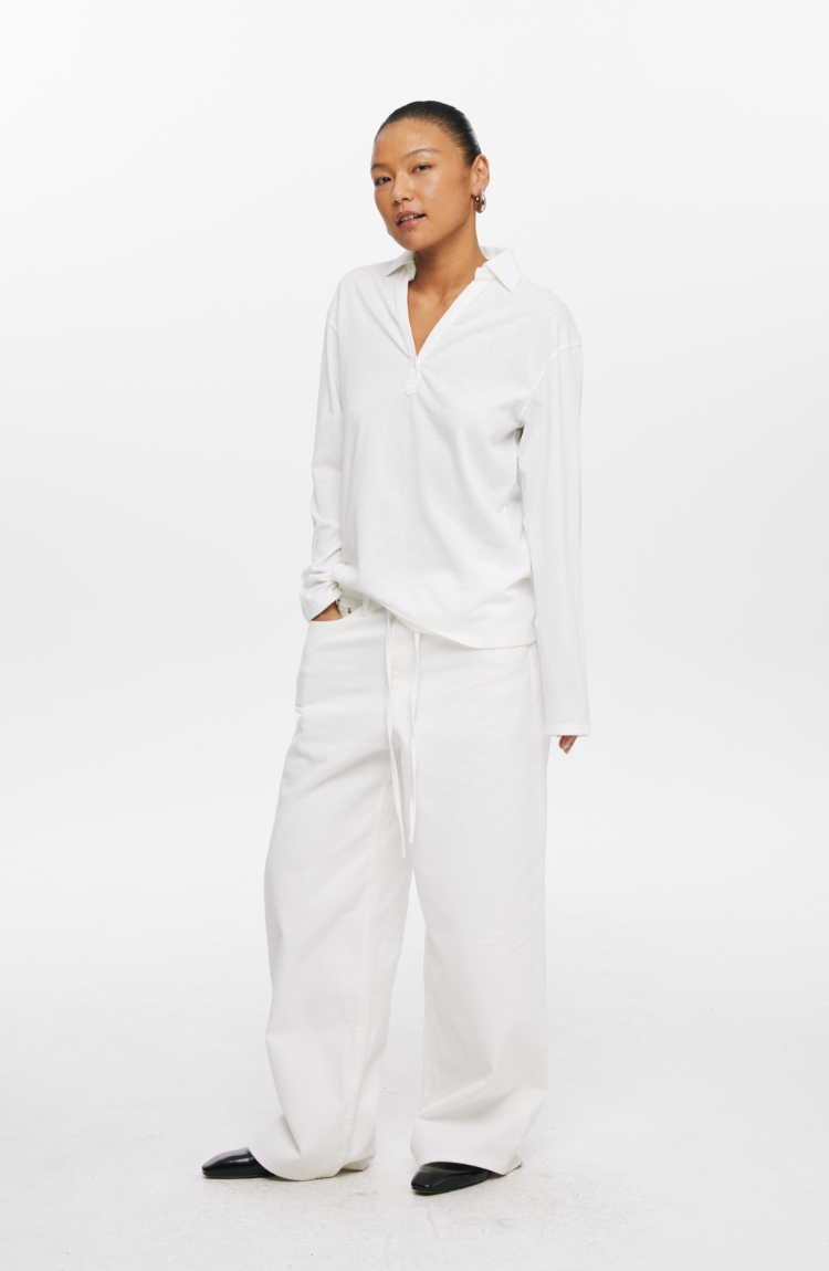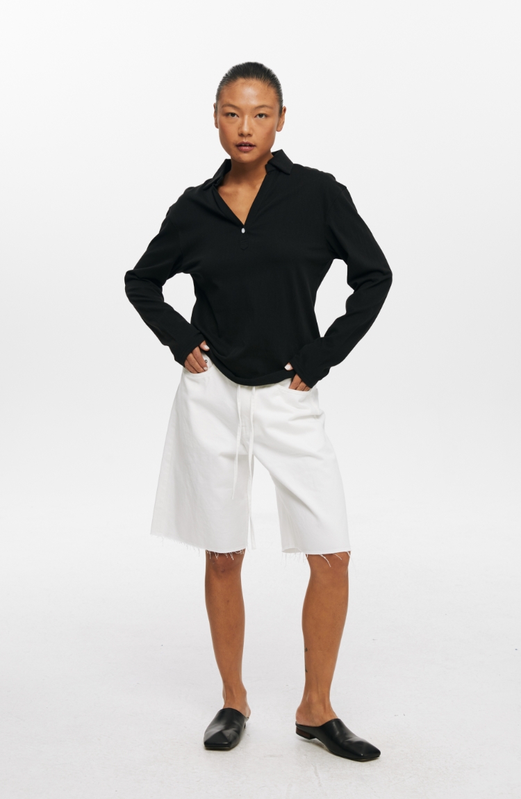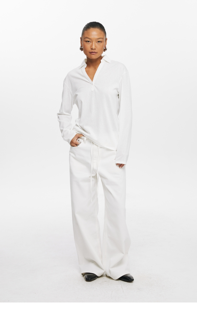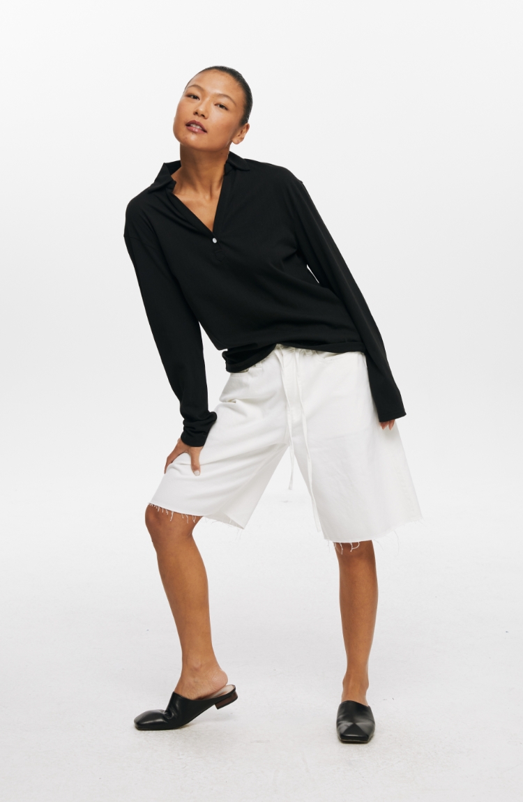 oneup V领翻领宽松长袖Polo