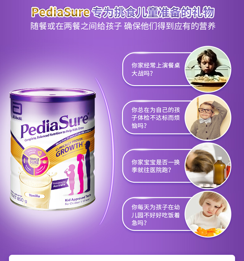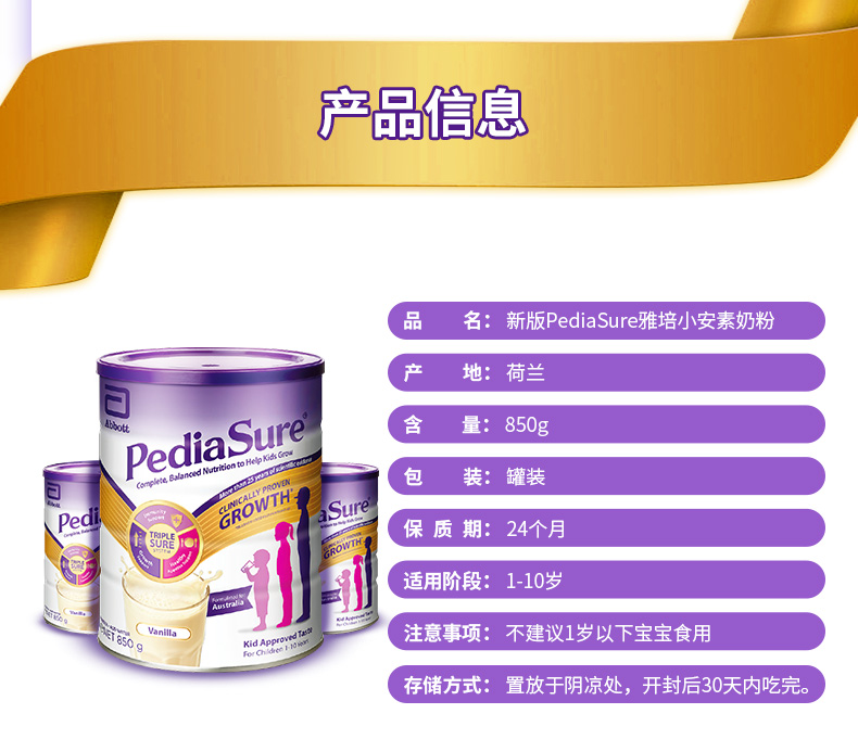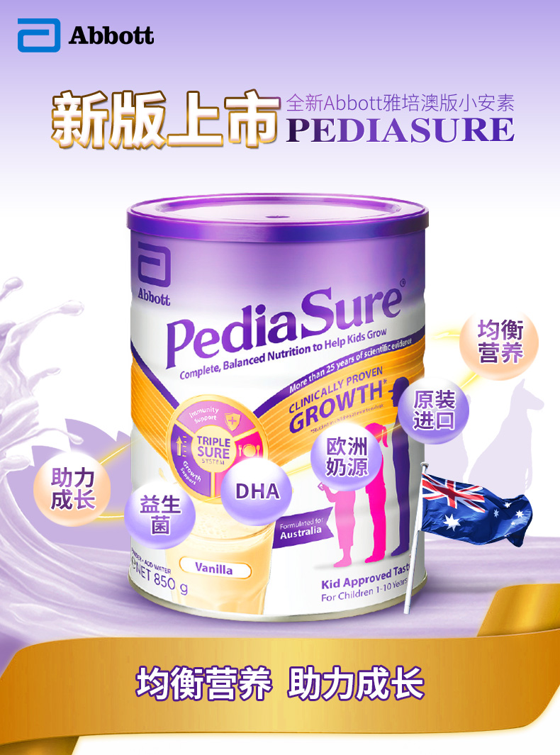 【Abbott雅培】小安素营养粉850克/罐1-10岁小安素奶粉草莓味/巧克力味