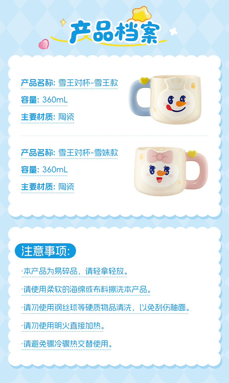 雪王对杯 甜蜜加杯 雪王款 雪妹款 360ml