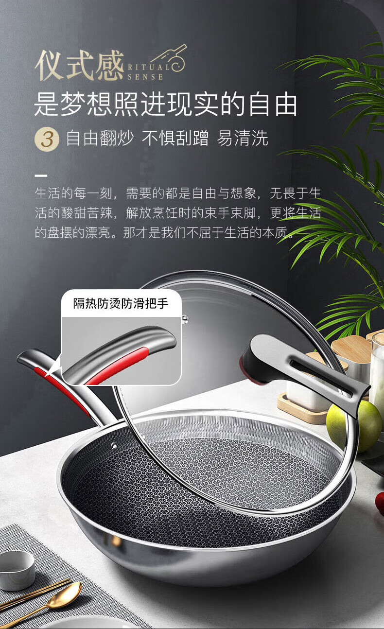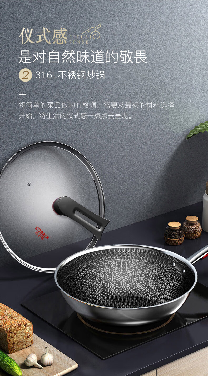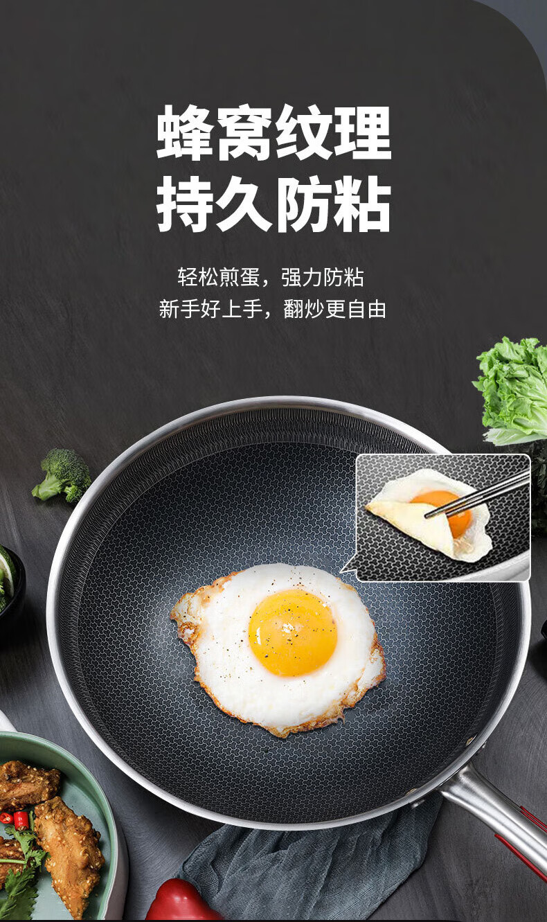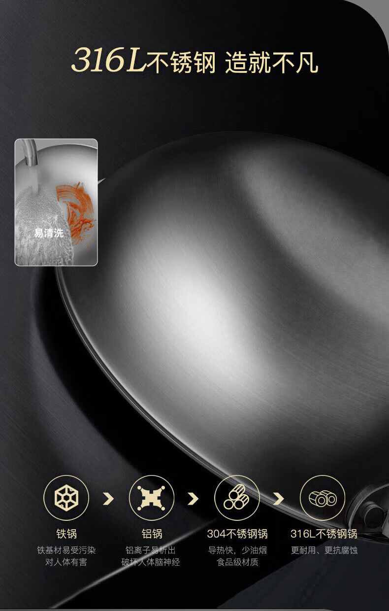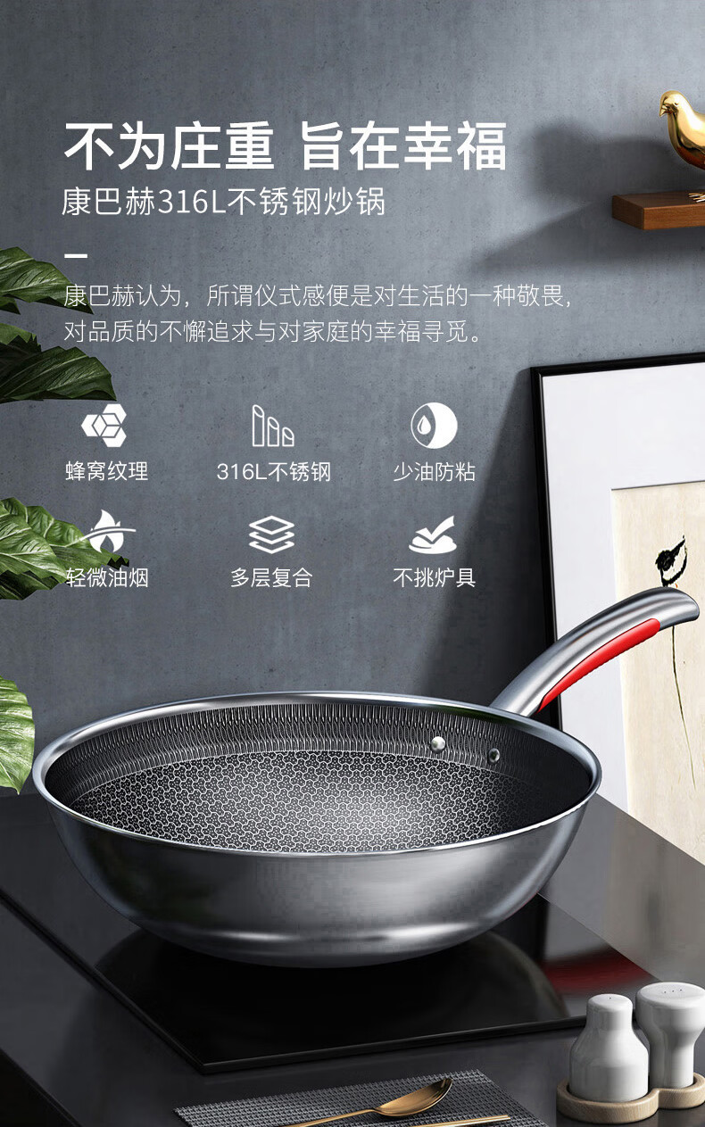 【小家电】康巴赫316L不锈钢炒锅32CM CHC32A3 HF