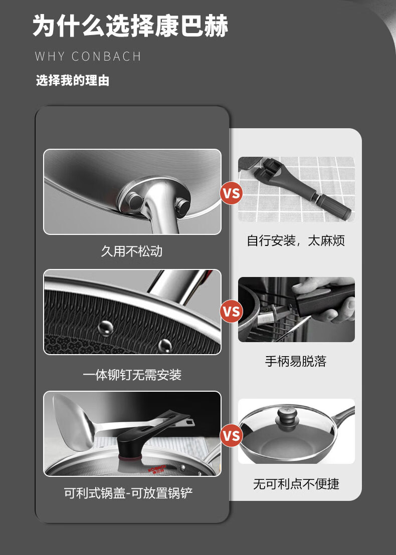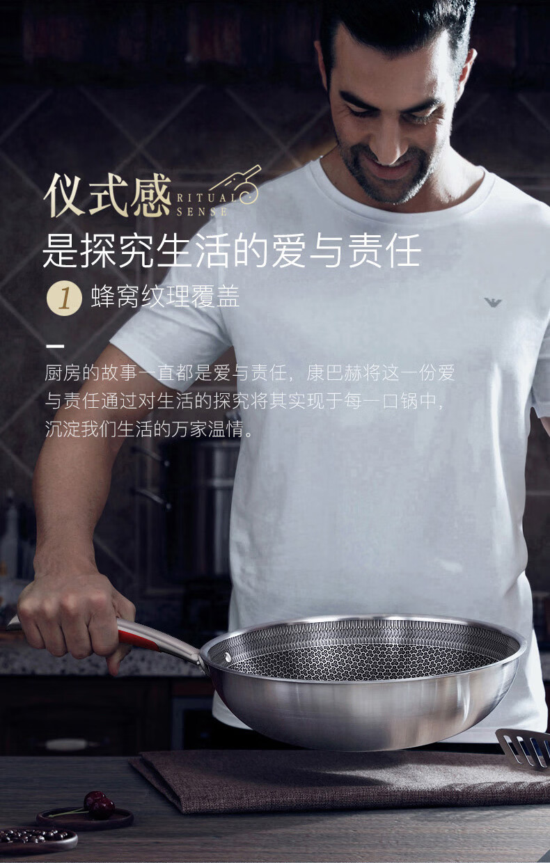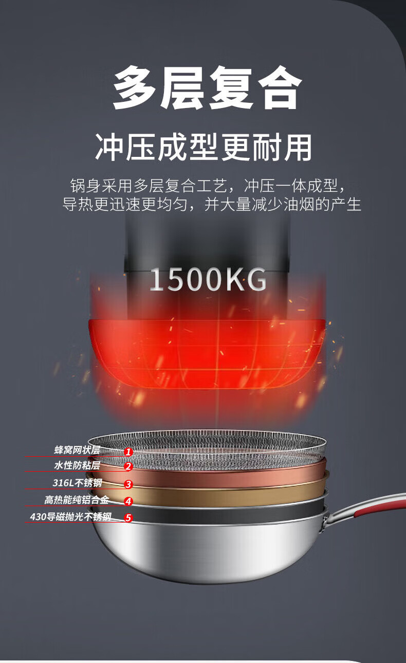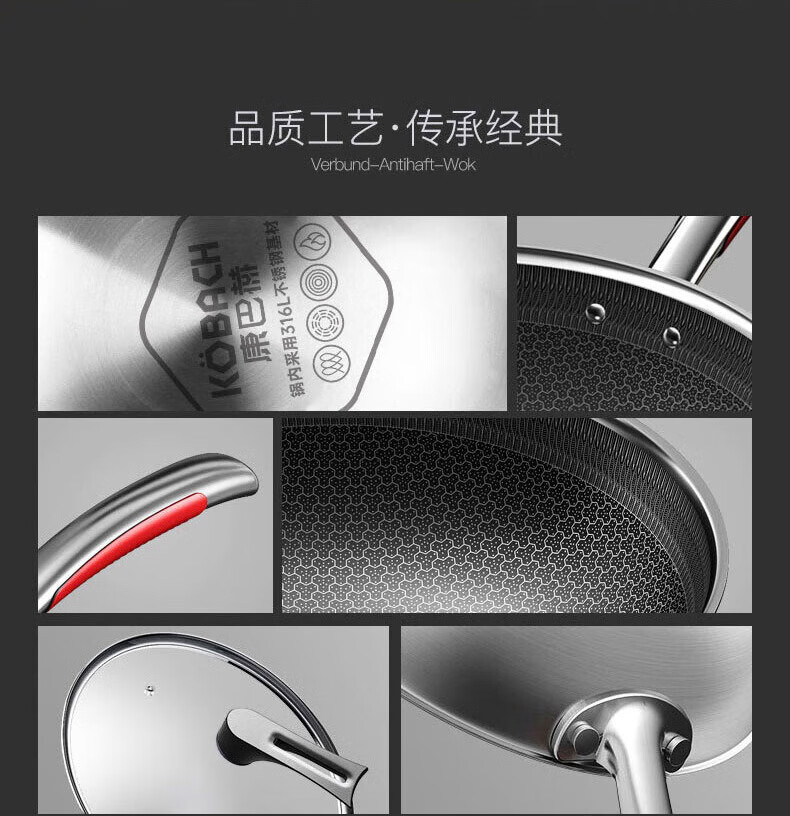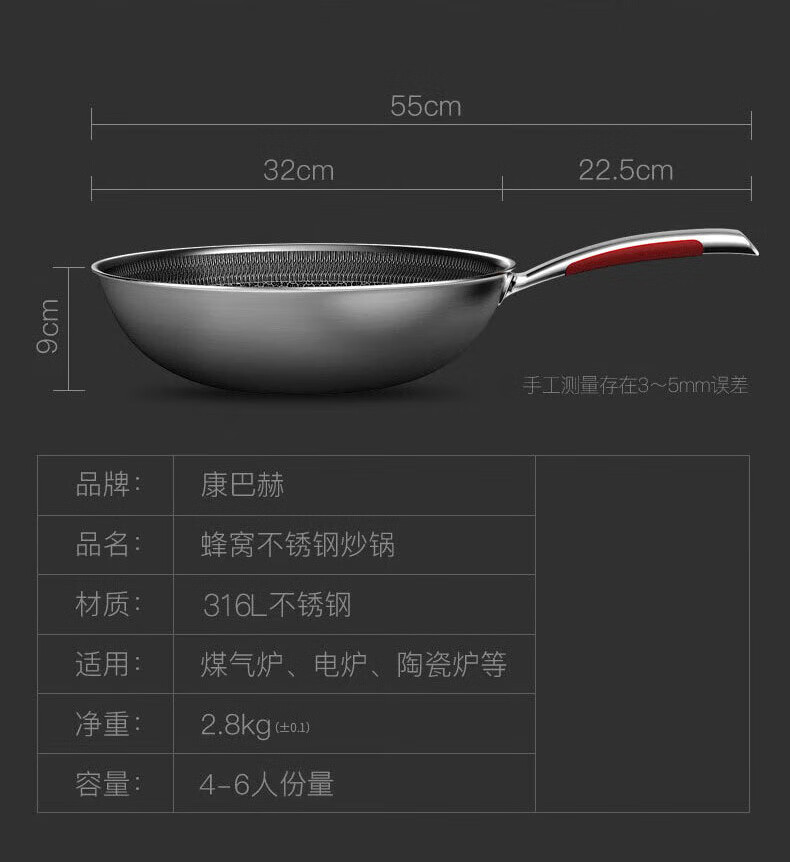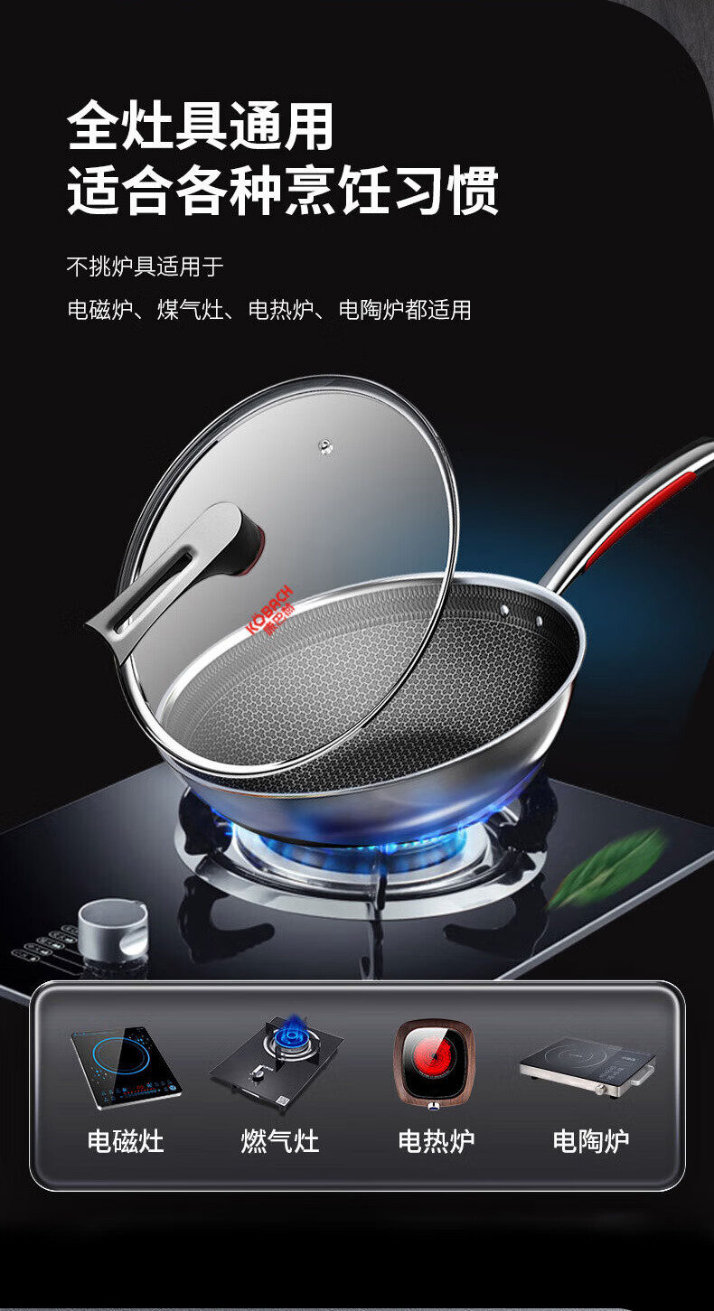 【小家电】康巴赫316L不锈钢炒锅32CM CHC32A3 HF