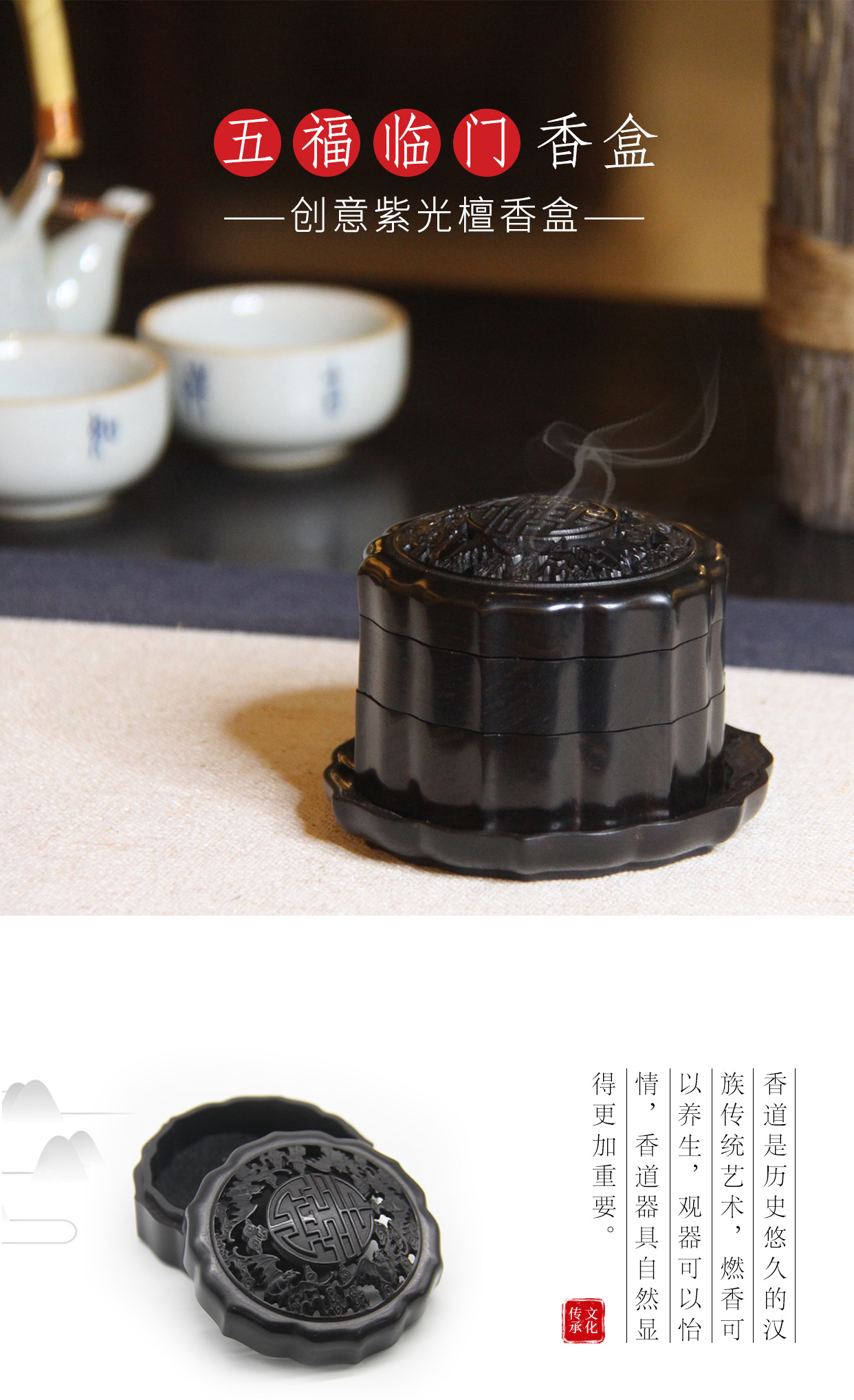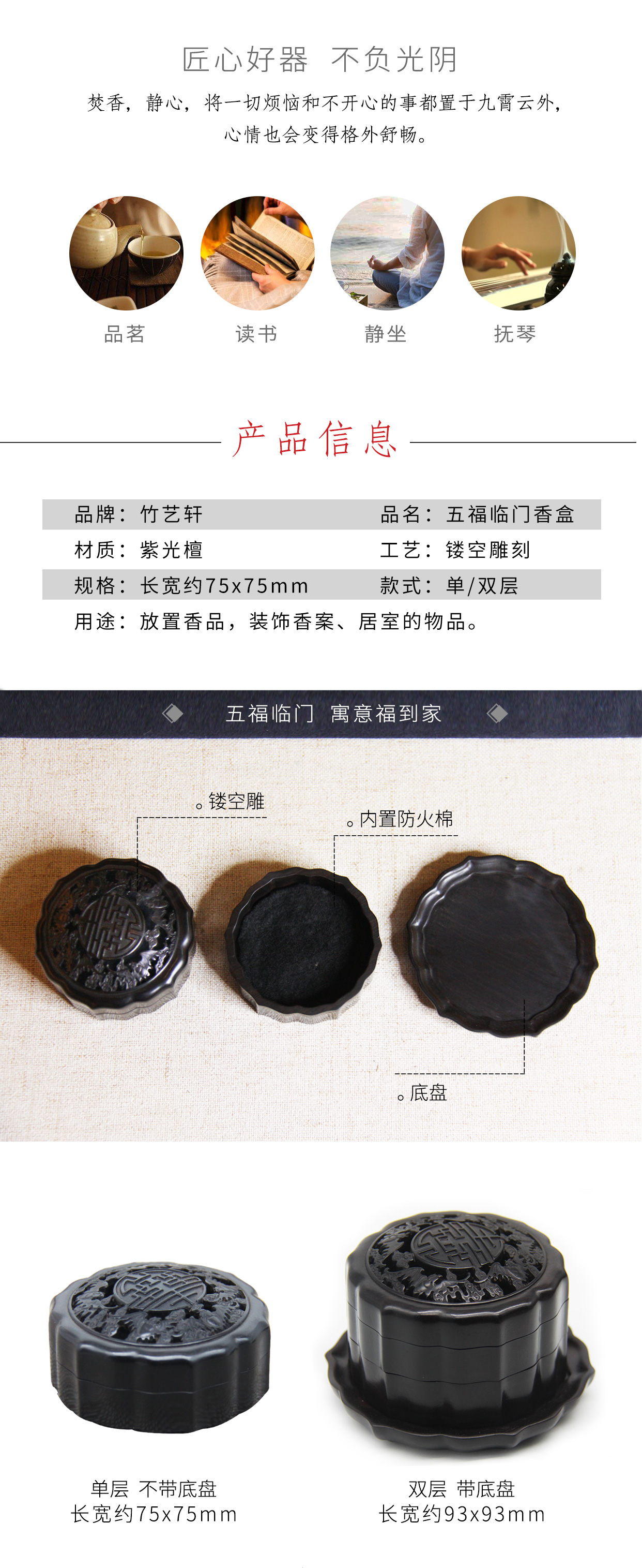 五福临门-小°紫光檀单&双层香盒