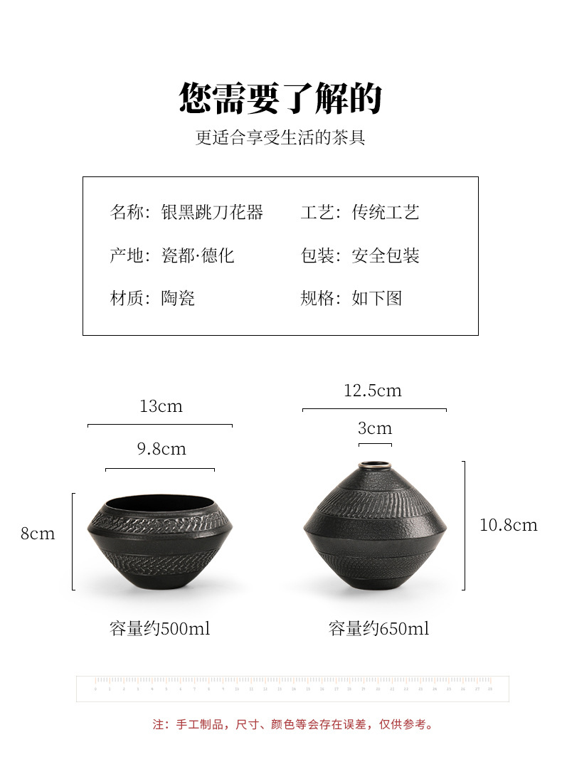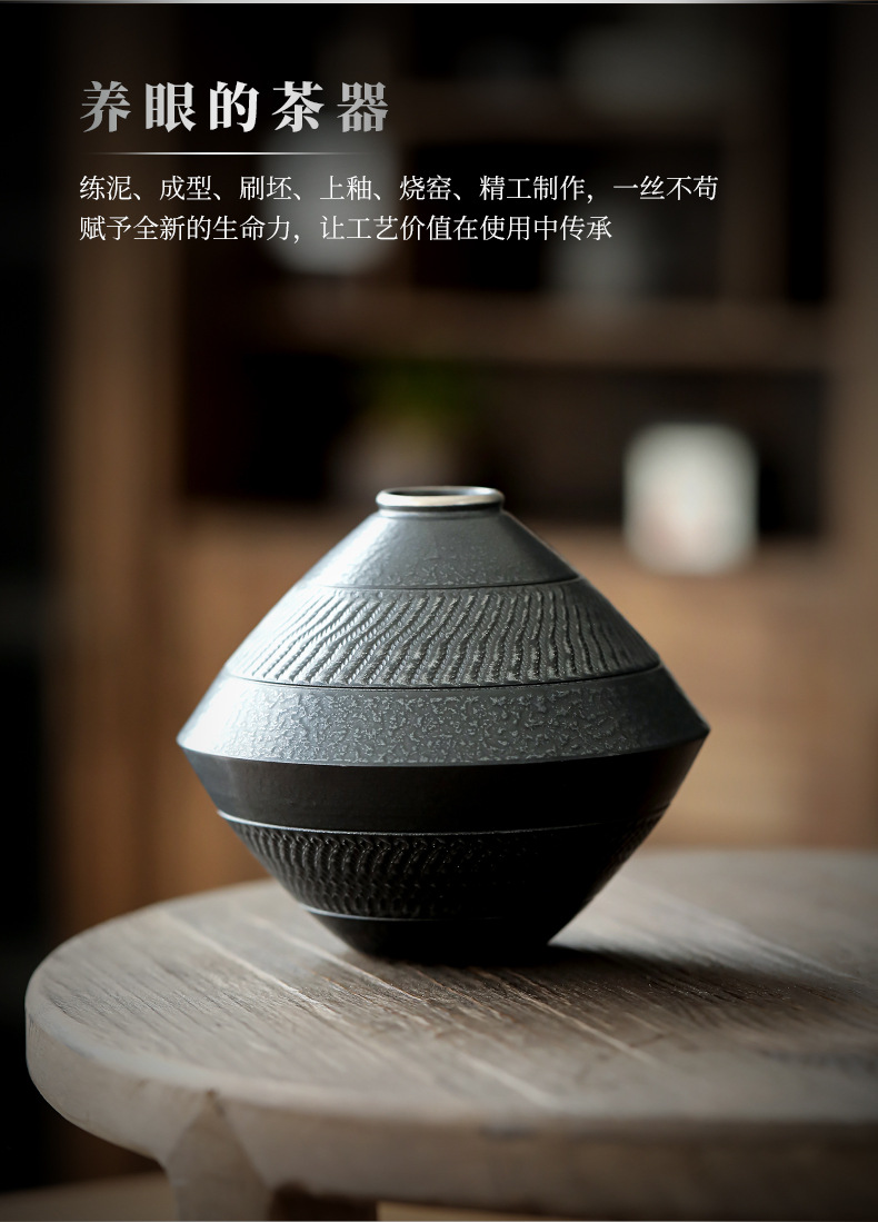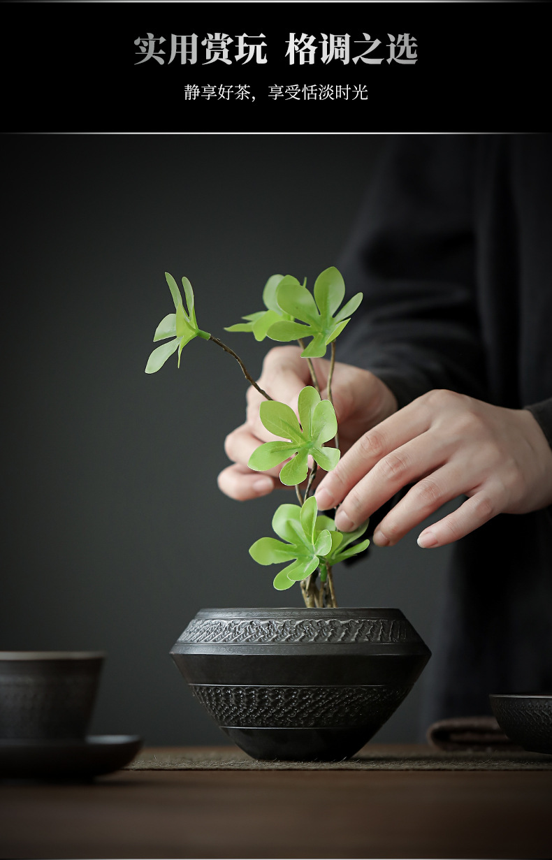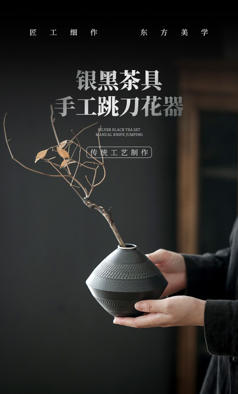 黑玄粗陶手制花瓶复古禅意桌面花器陶瓷花插水培小花插工艺品摆件