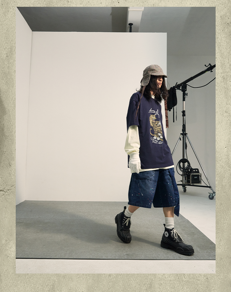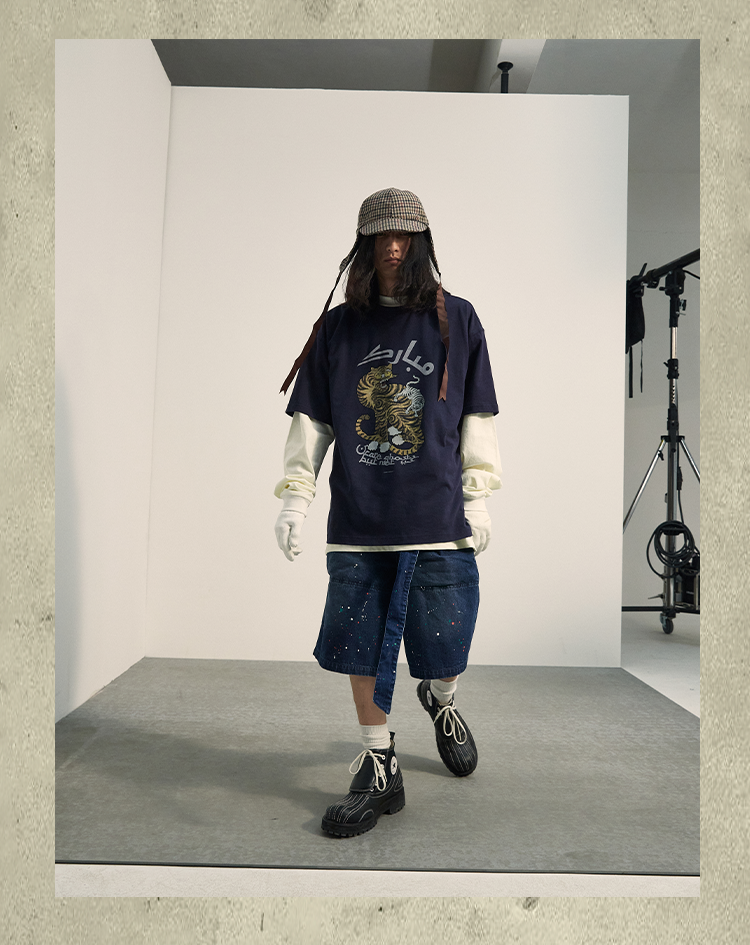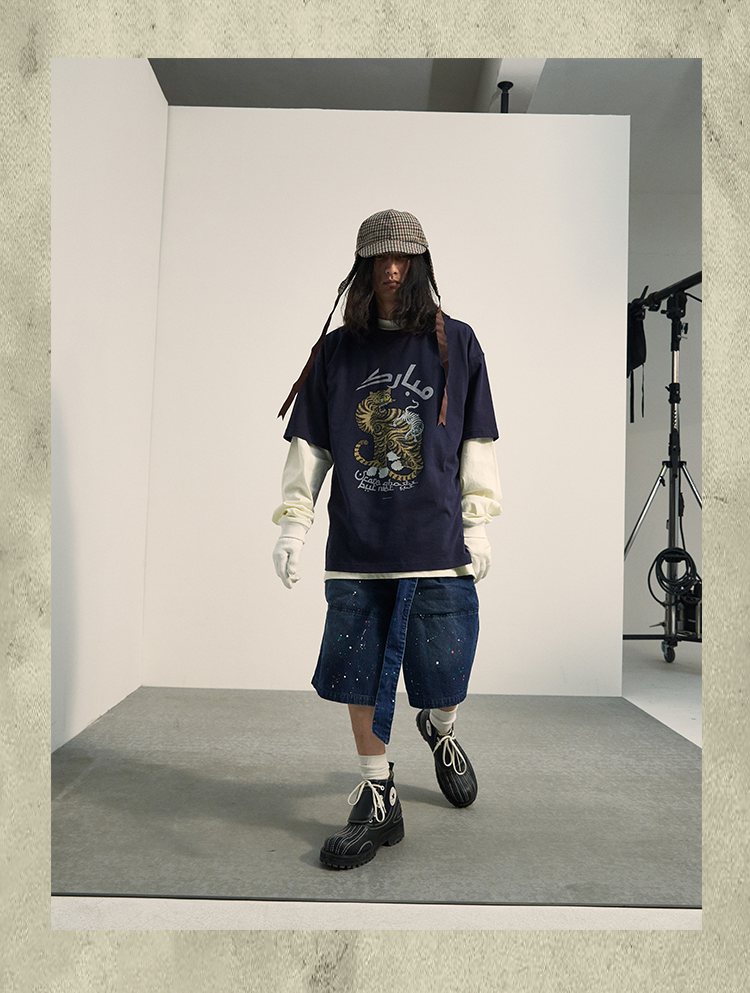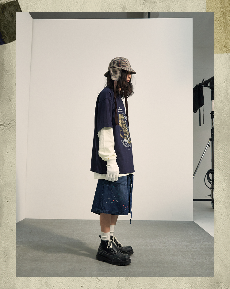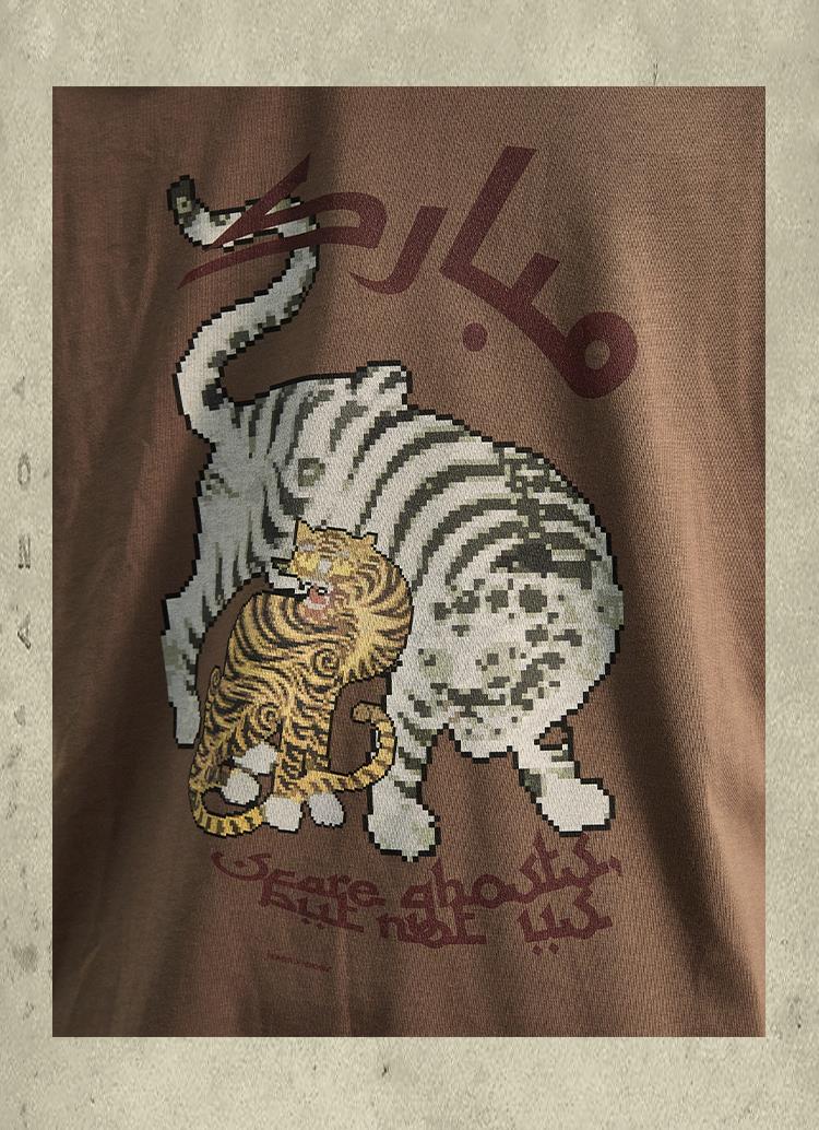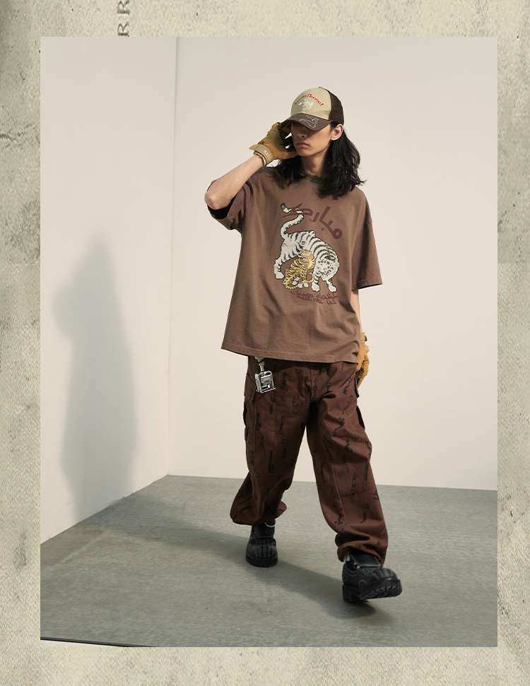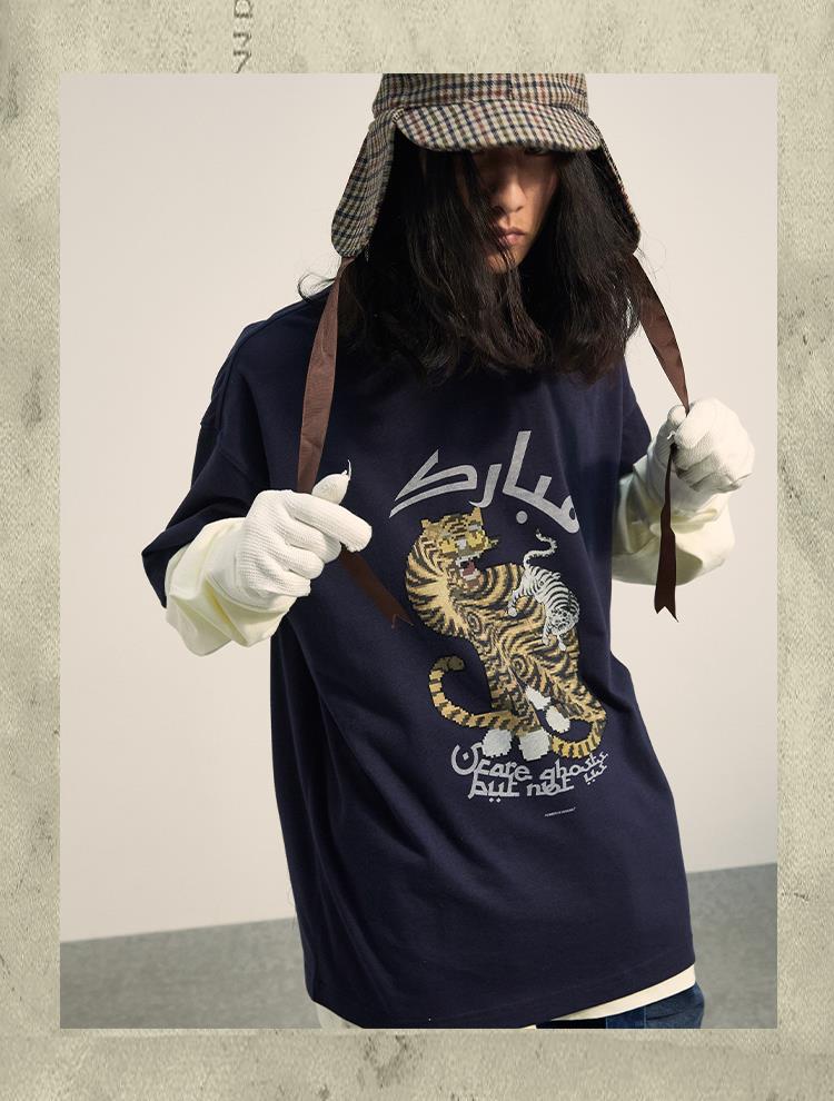 POH「李朝猫虎画」印花街头BF风打底上衣国潮牌宽松休闲短袖T恤男