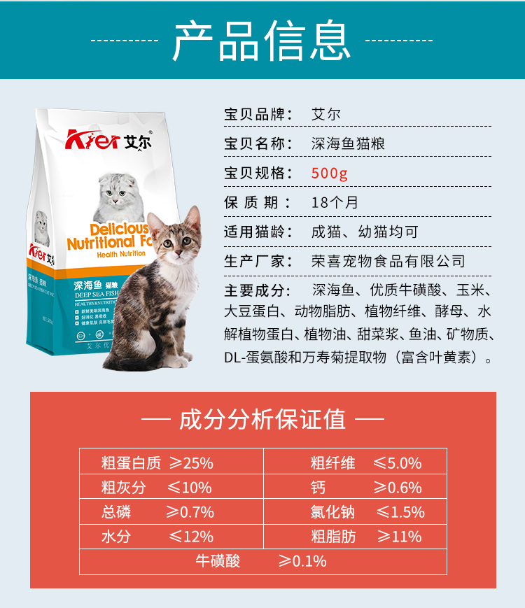 艾尔猫粮 深海鱼配方 幼猫成猫全阶段猫粮500g