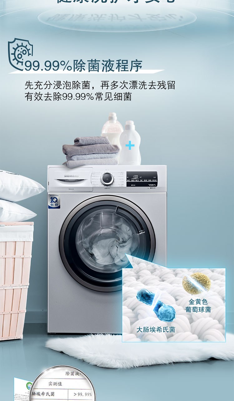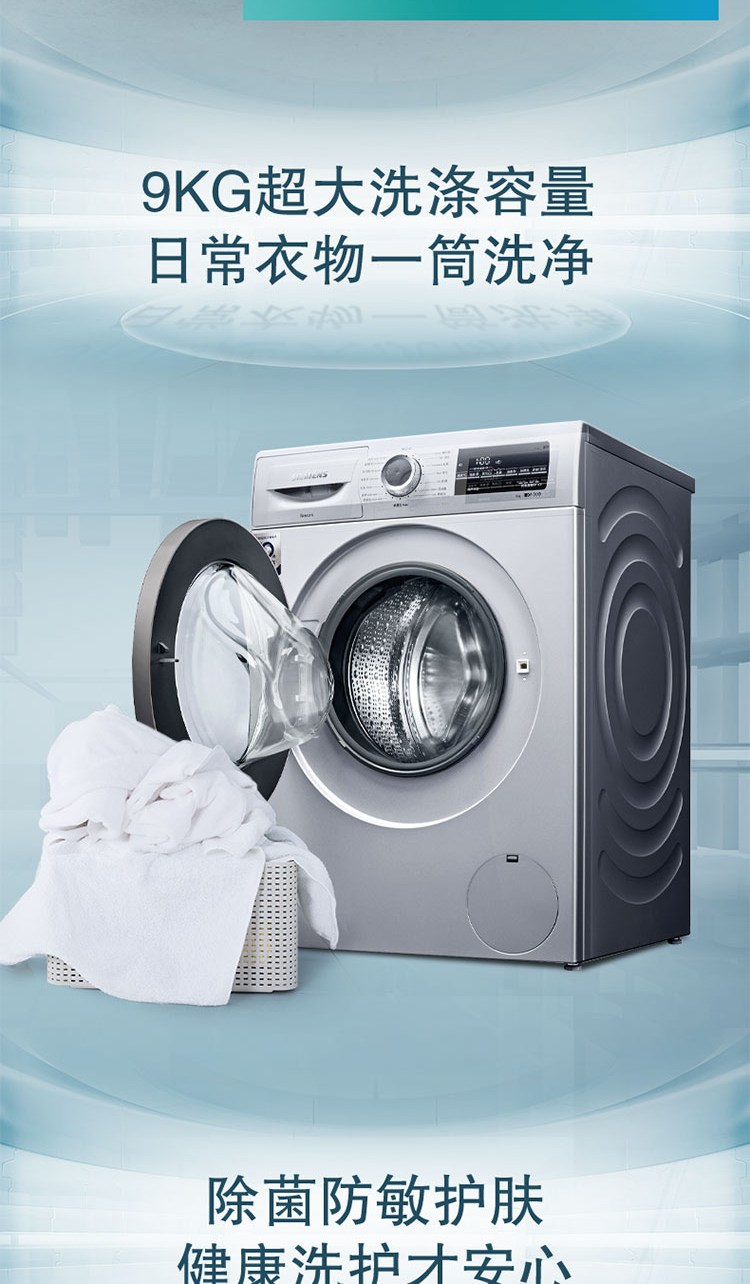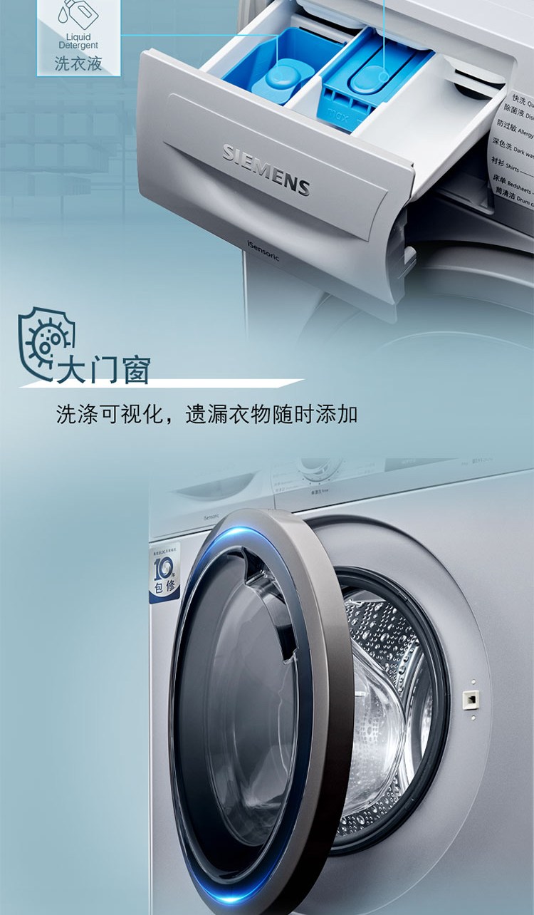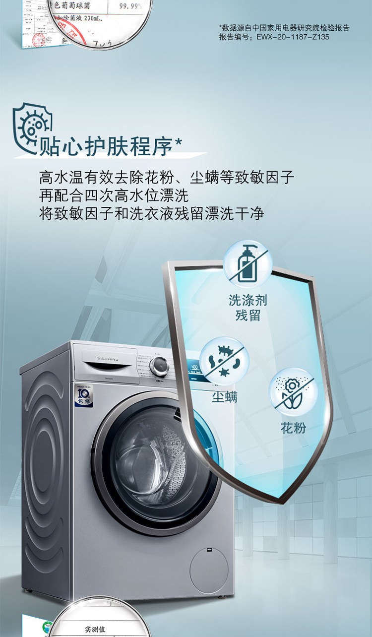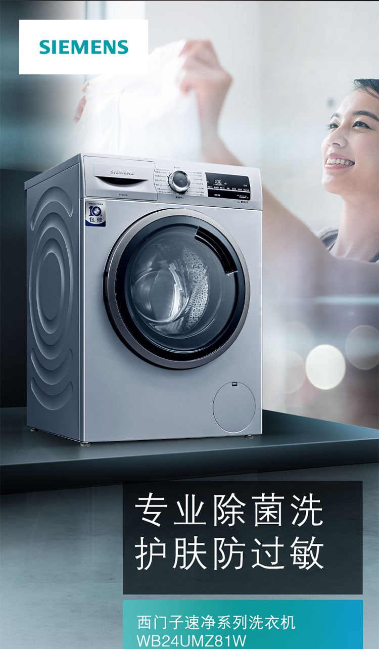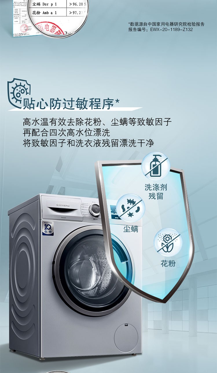 西门子9KG大容量滚筒全自动洗衣机 家用 防过敏程序 高温筒清洁XQG90-WB24UMZ81W