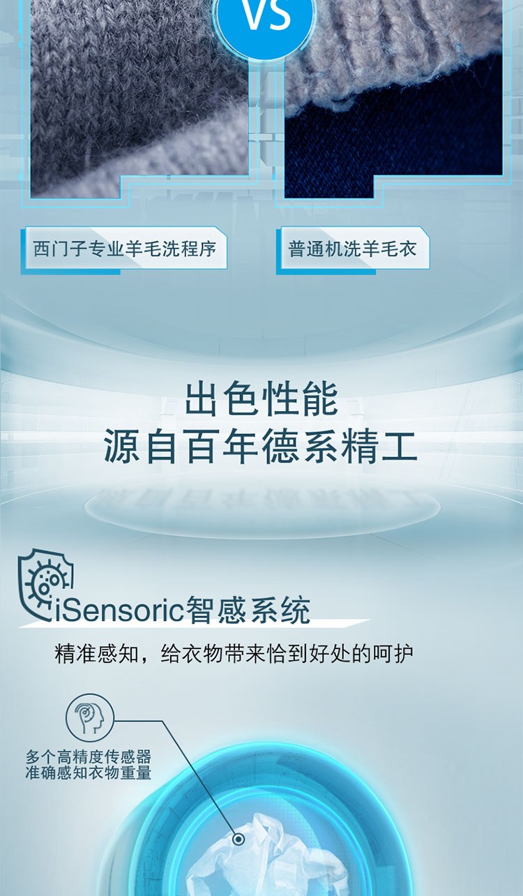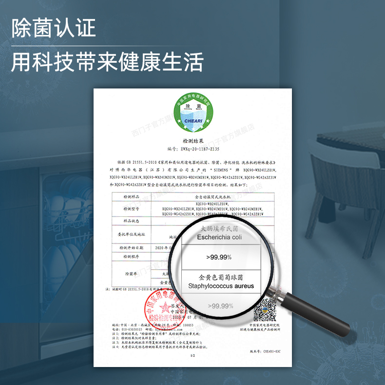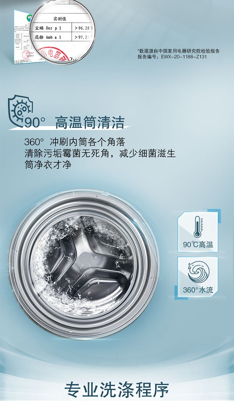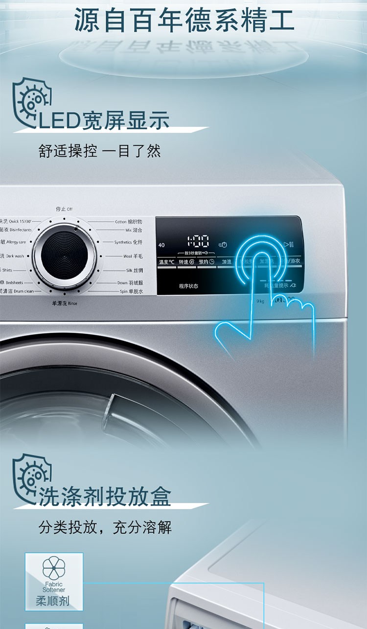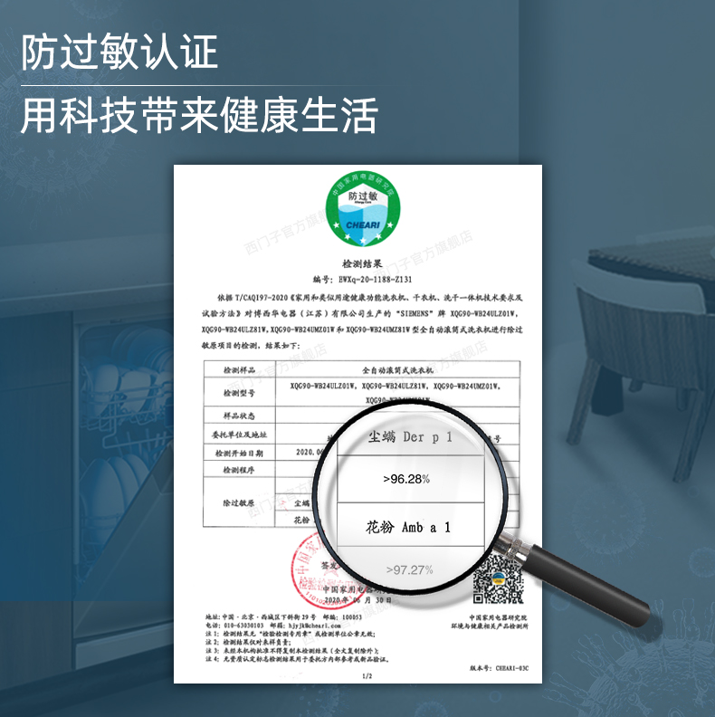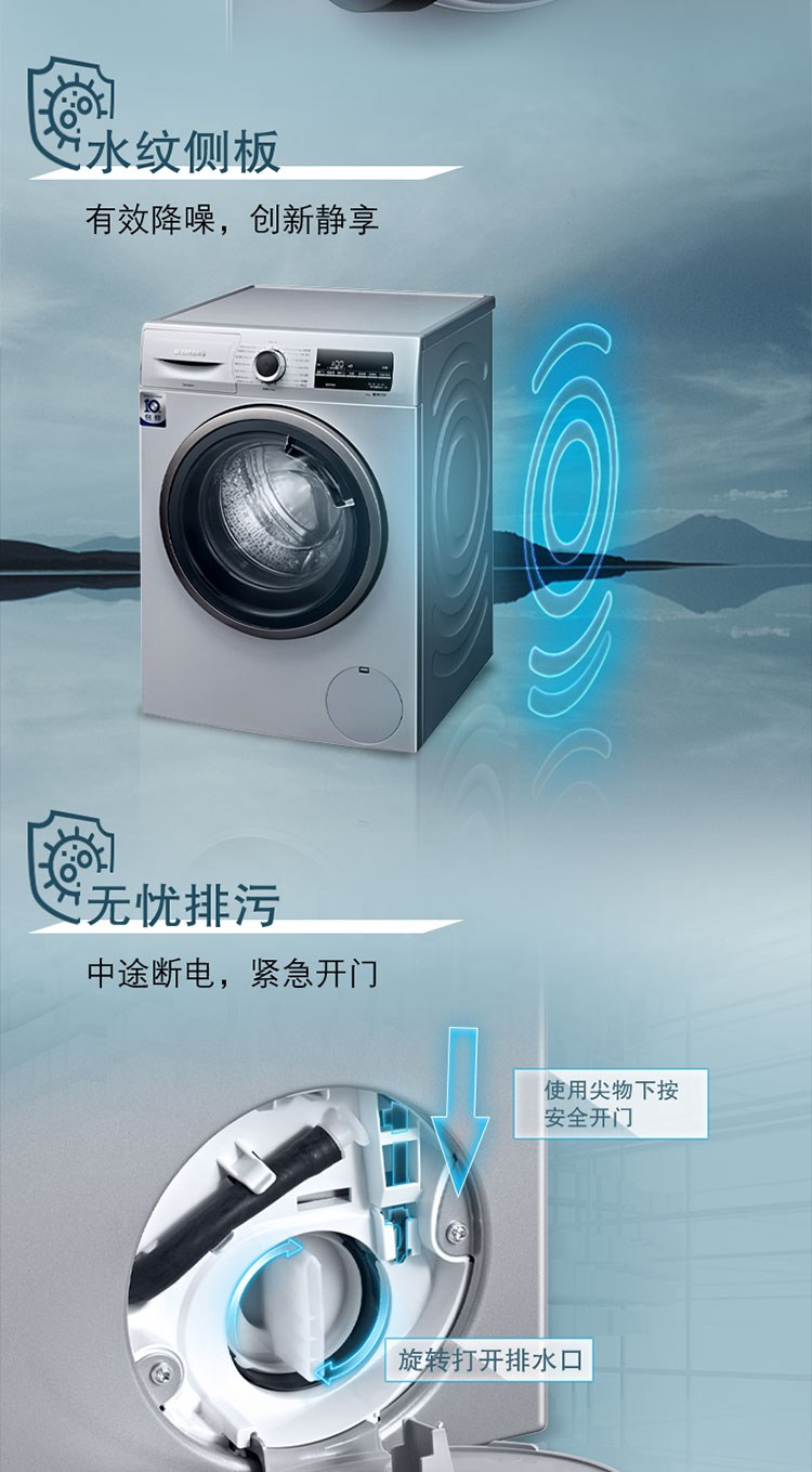 西门子9KG大容量滚筒全自动洗衣机 家用 防过敏程序 高温筒清洁XQG90-WB24UMZ81W