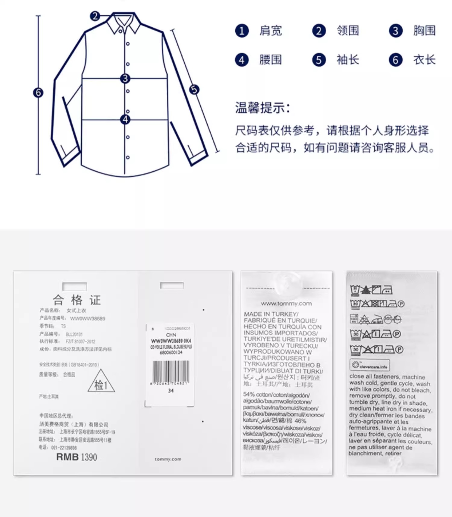 【特价商品不退不换】TOMMY 女衬衫 WW38689-0K4 .54%COTTON 46%VISCOSE