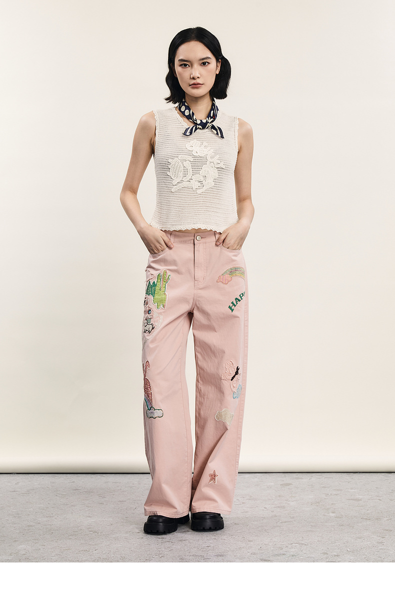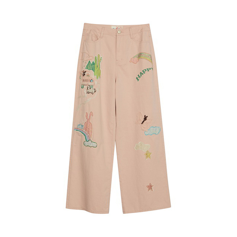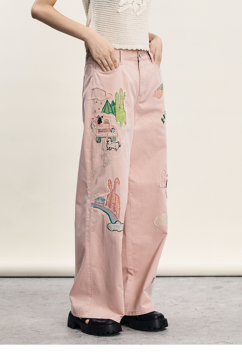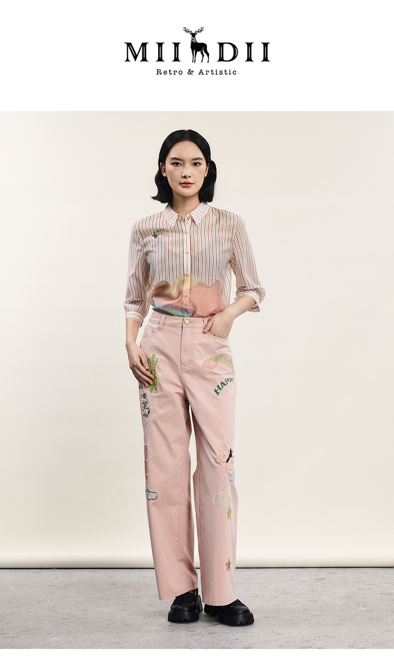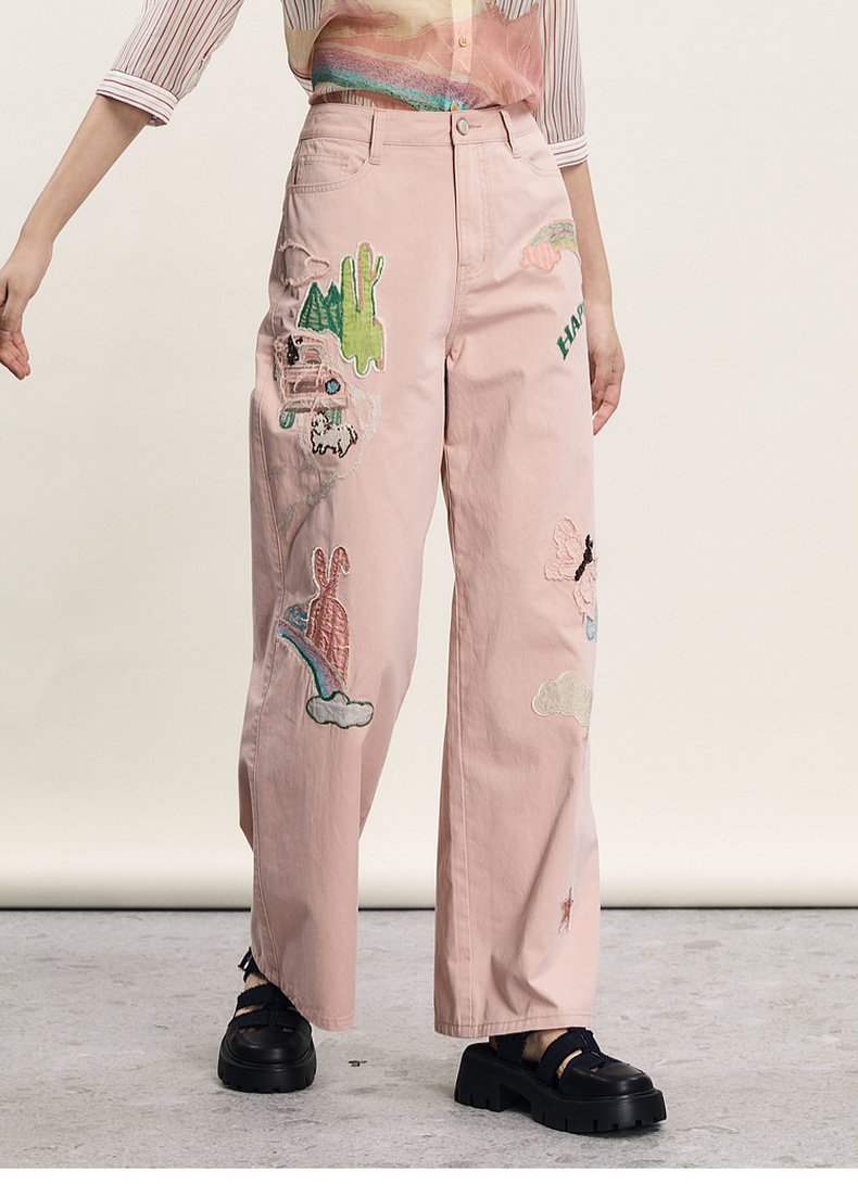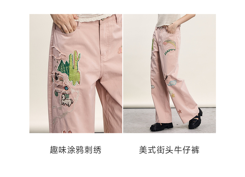 谜底直筒裤女2024年夏季新款复古风重工刺绣牛仔裤长裤242MK0501