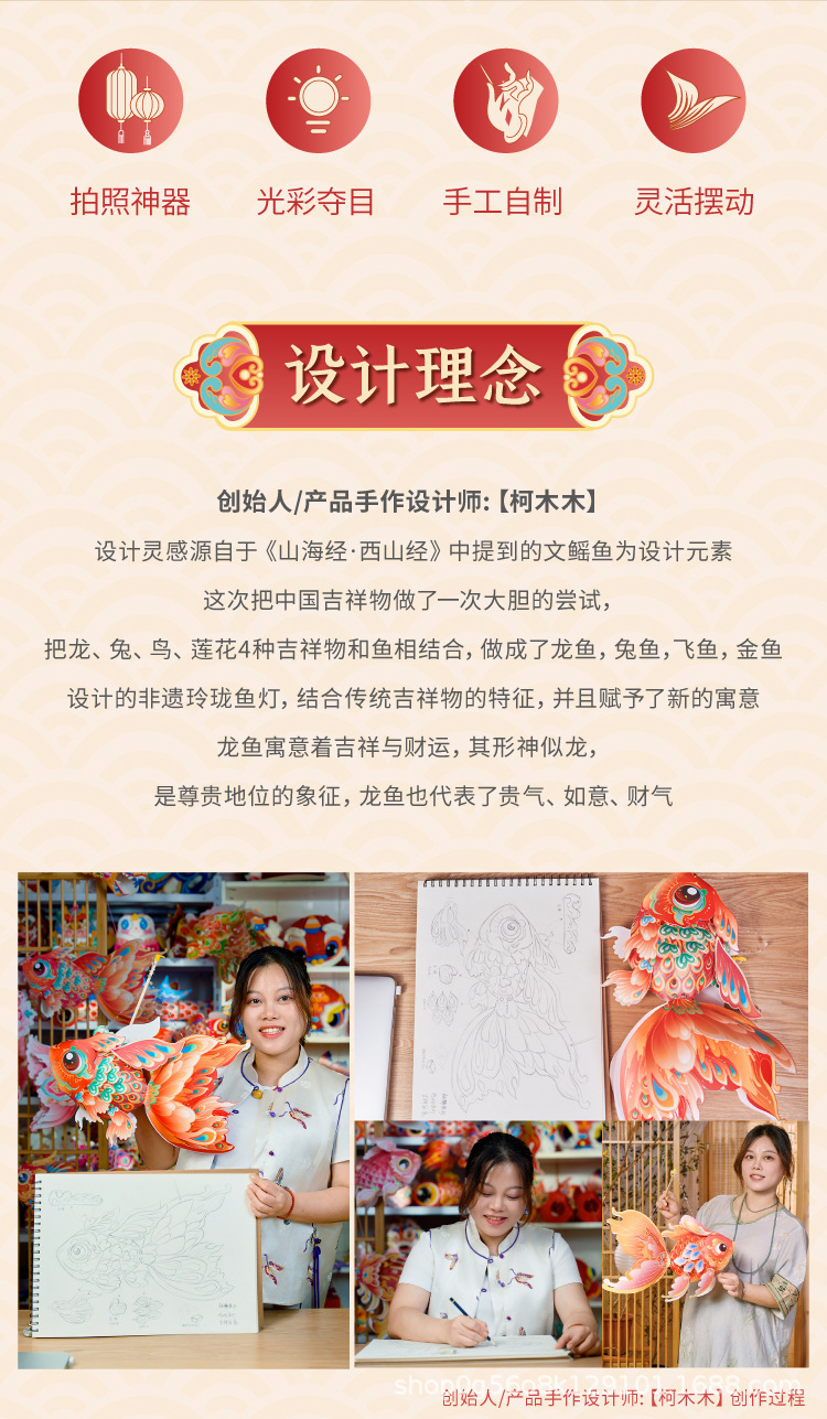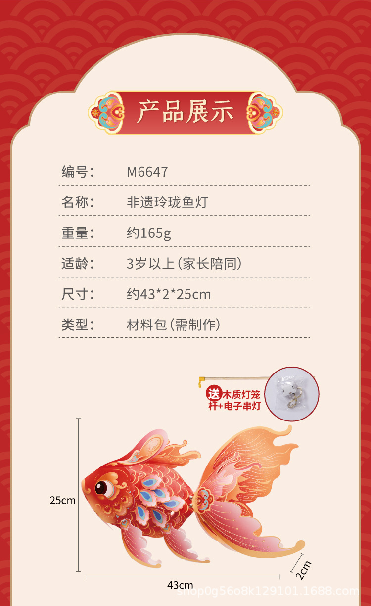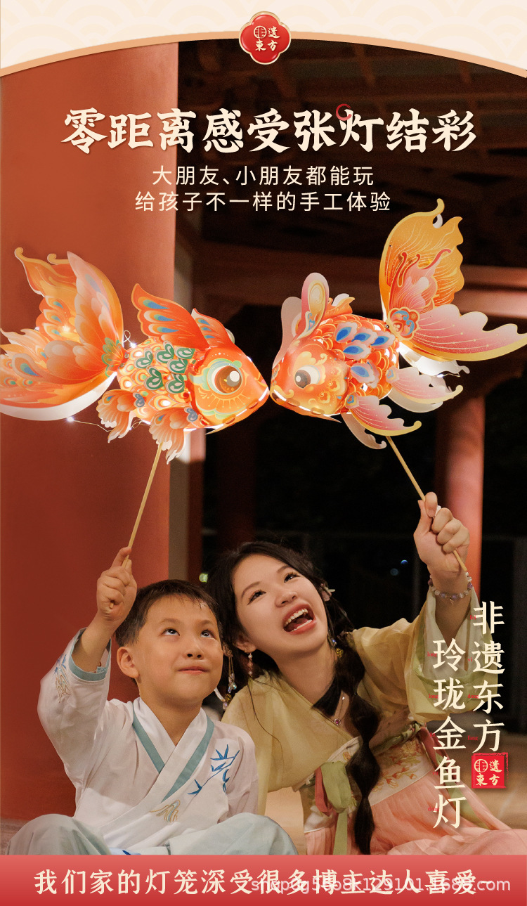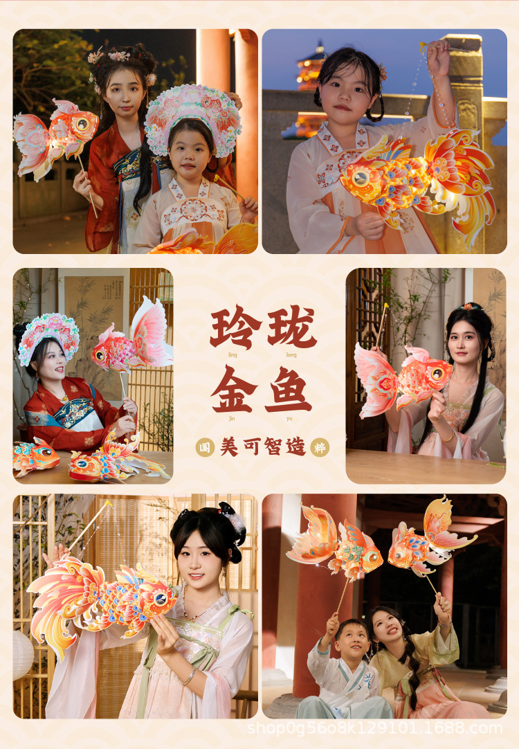 2025蛇年灯笼非遗玲珑鱼灯手工diy儿童手提发光花灯玩具夜市元宵节春节