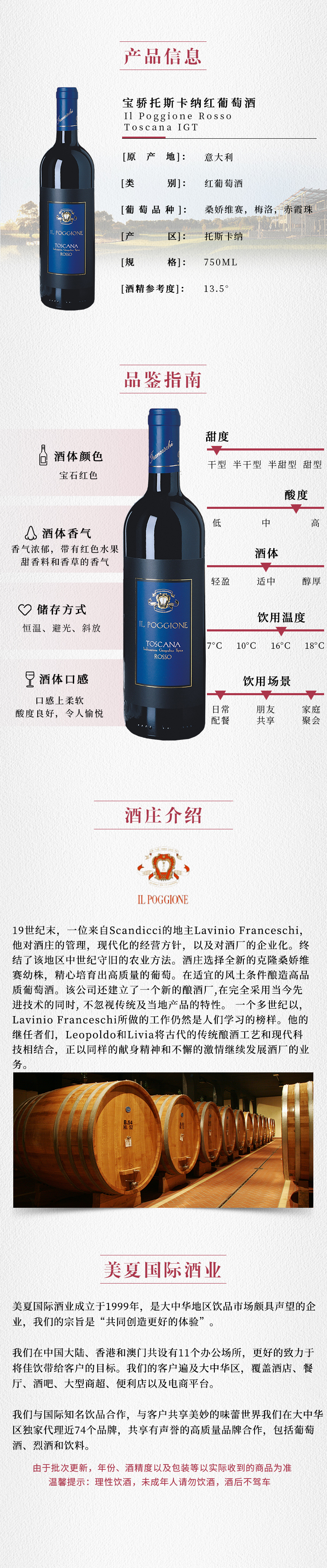 进口意大利宝骄托斯卡纳红葡萄酒750ml