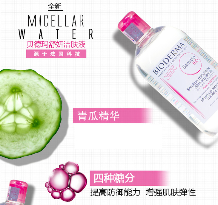 贝德玛舒妍多效洁肤液卸妆水粉水500ml