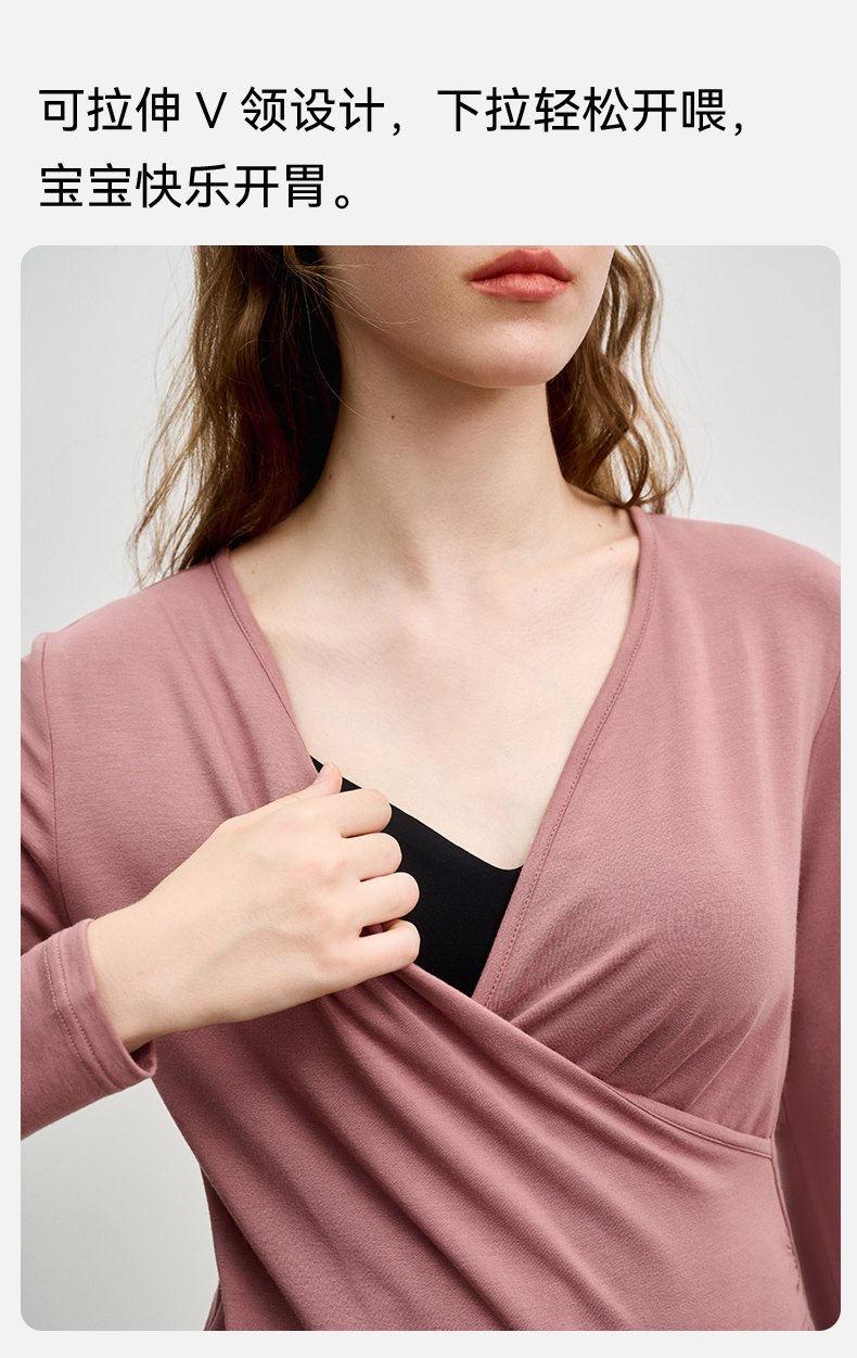 【家居服专场】EMXEE嫚熙V领哺乳秋衣上衣