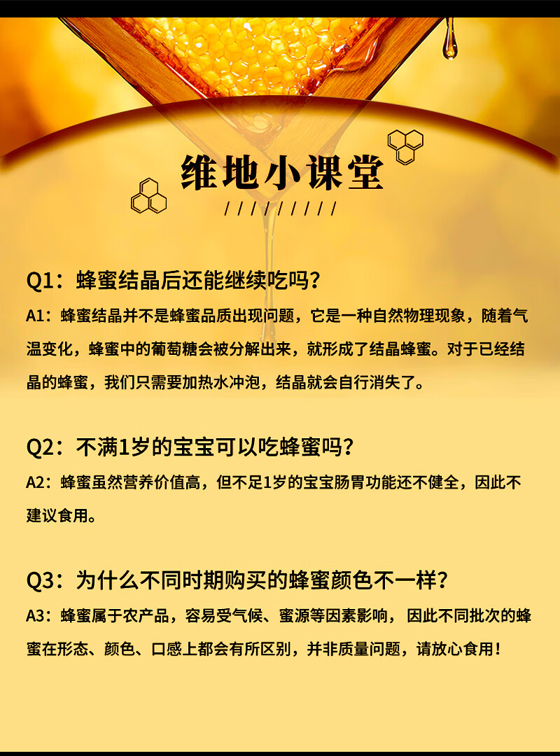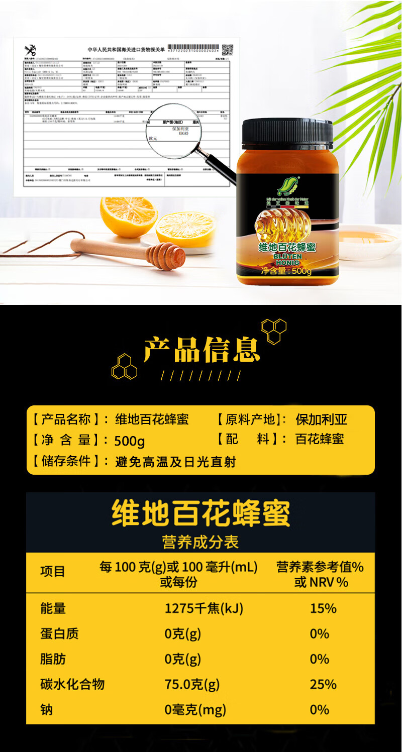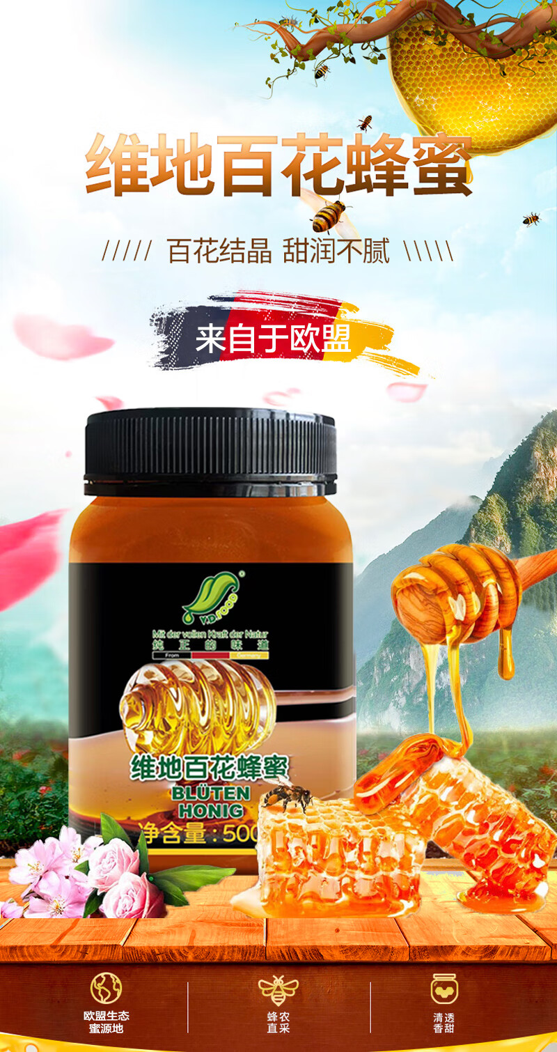 维地(VD)百花蜂蜜 500G 蜂农直采 多花蜜 成熟蜜 蜜源来自欧盟 500G*1瓶