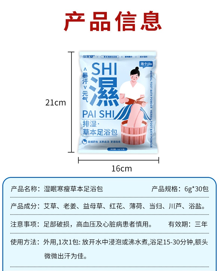 湿眠寒瘦草本足浴包随机一袋(6g*30包)甄选配方 入水即溶