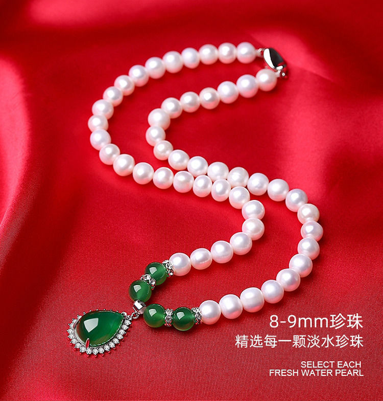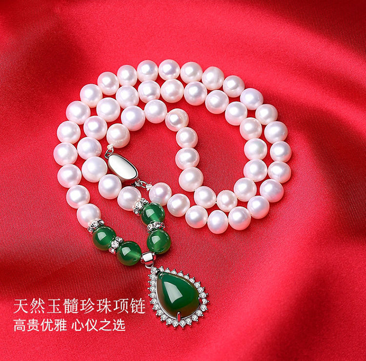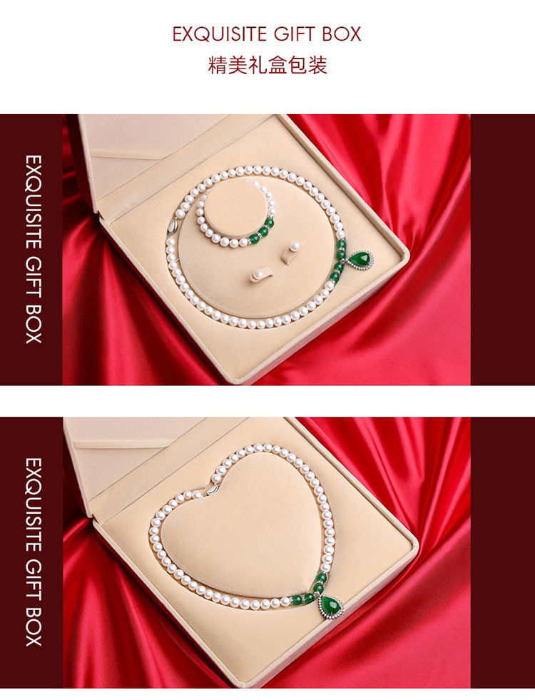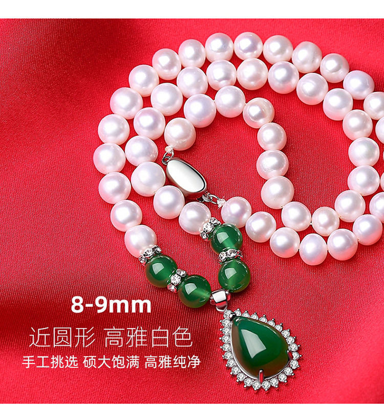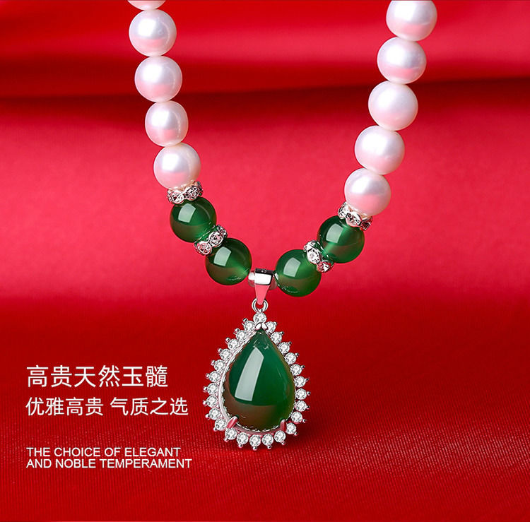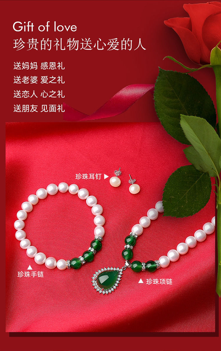 六鑫珠宝 天然淡水珍珠玉髓款吊坠/手链/耳钉三件套 送妈妈婆婆