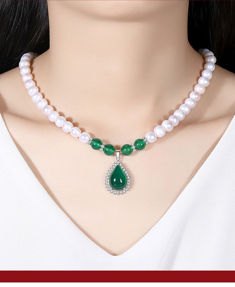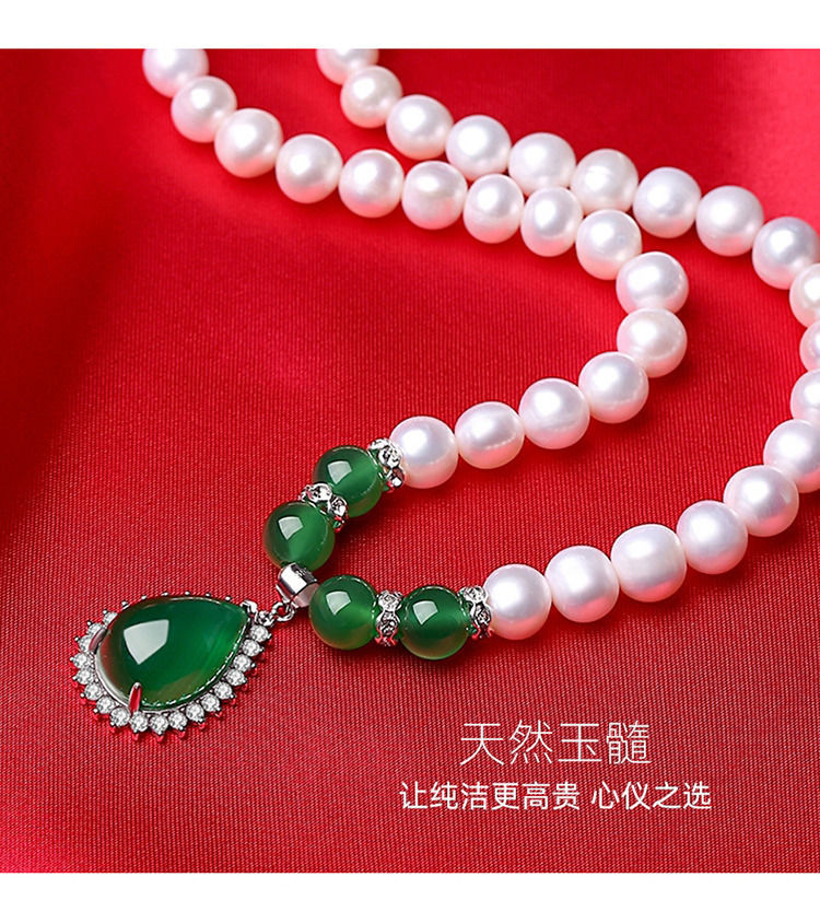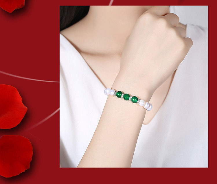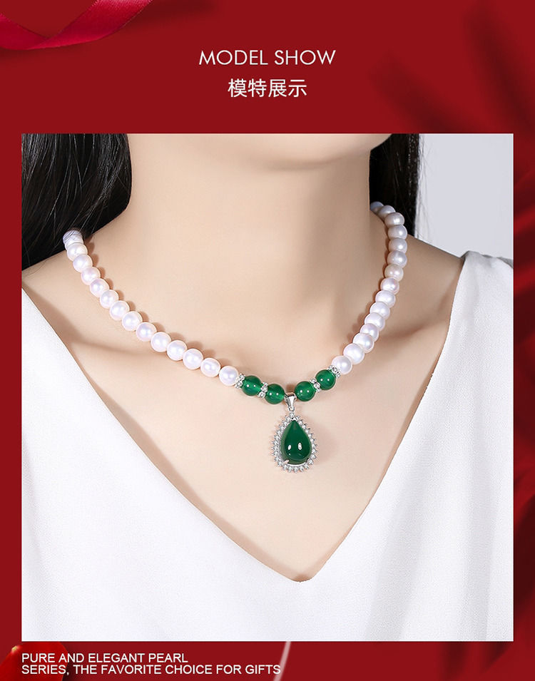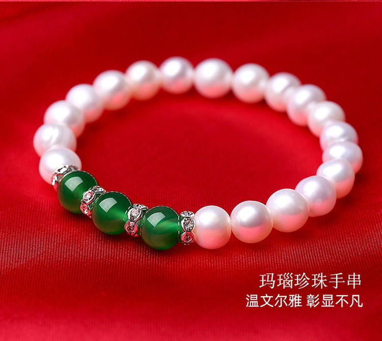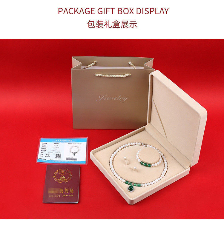 六鑫珠宝 天然淡水珍珠玉髓款吊坠/手链/耳钉三件套 送妈妈婆婆