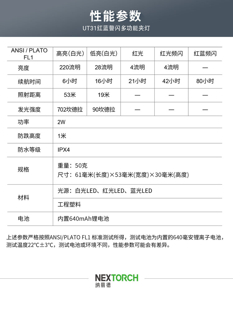 纳丽德(NEXTORCH)UT31红蓝闪肩灯信号灯