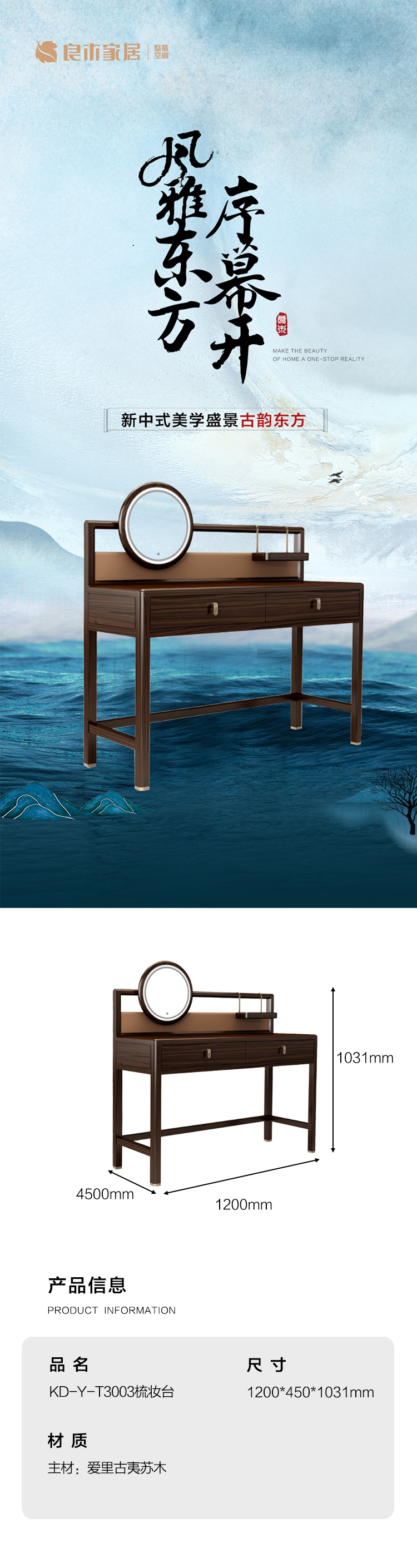 【新中式-妆台KD-Y-T3003】黑檀/卧房/衣帽间/妆台