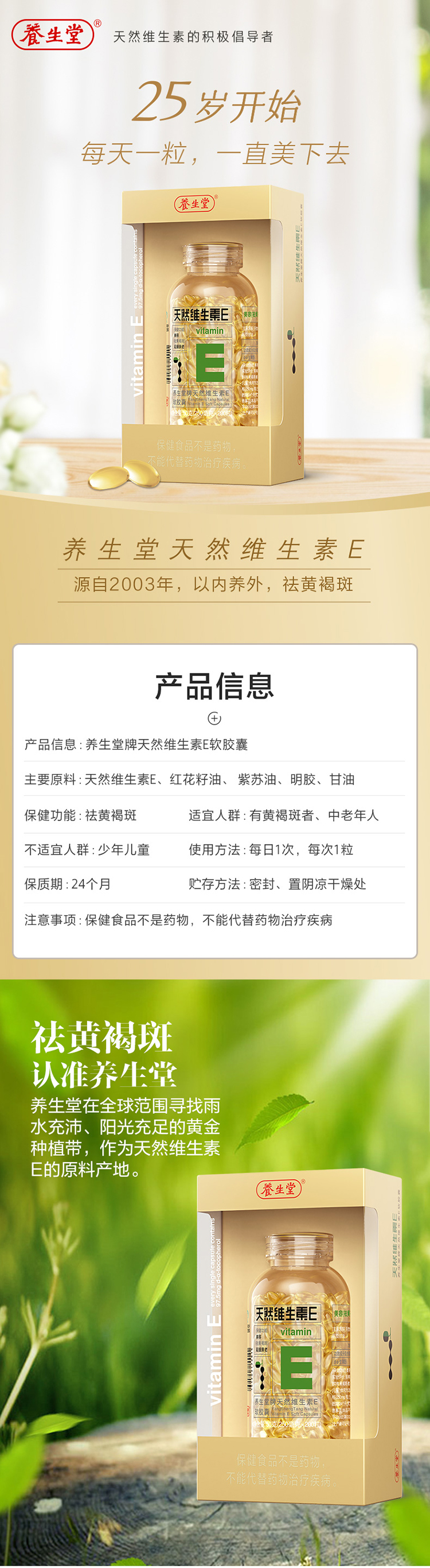 养生堂天然维生素E软胶囊200粒(瓶装)