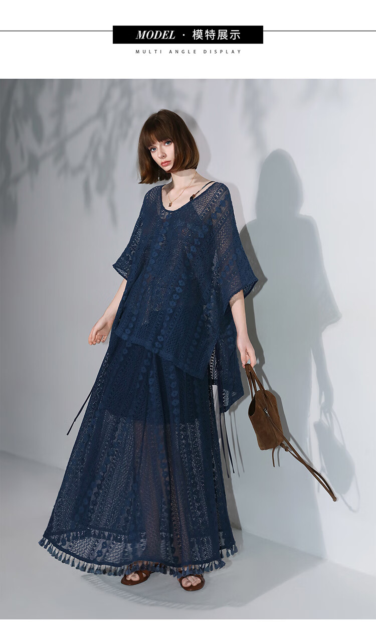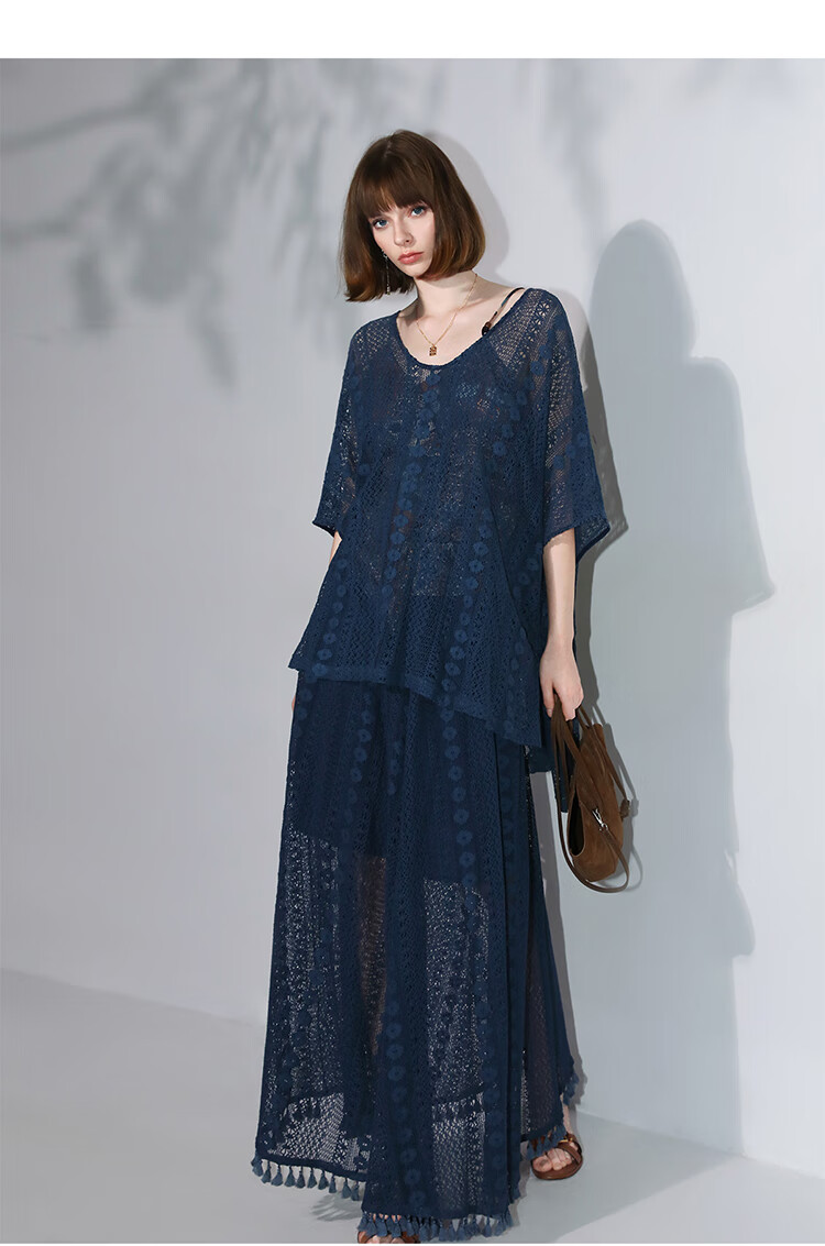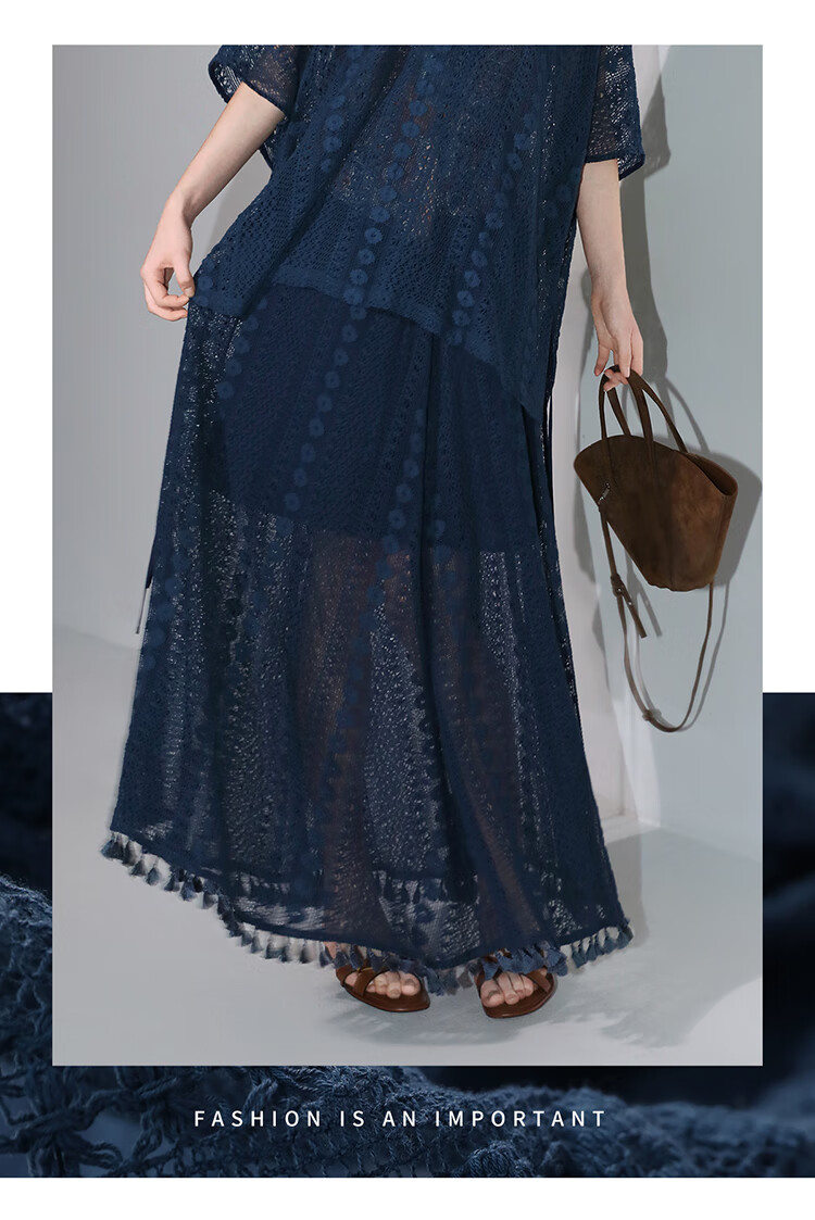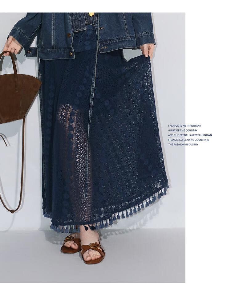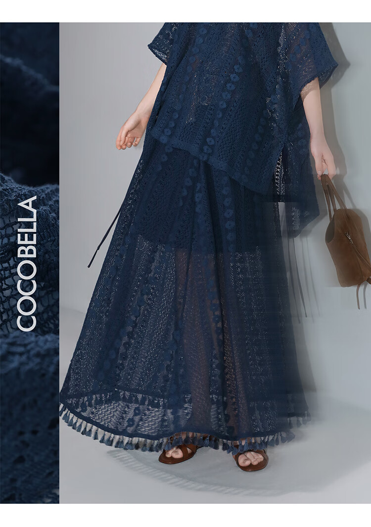 COCOBELLA重工镂空刺绣蕾丝半身裙度假流苏大摆长裙HS3063-3
