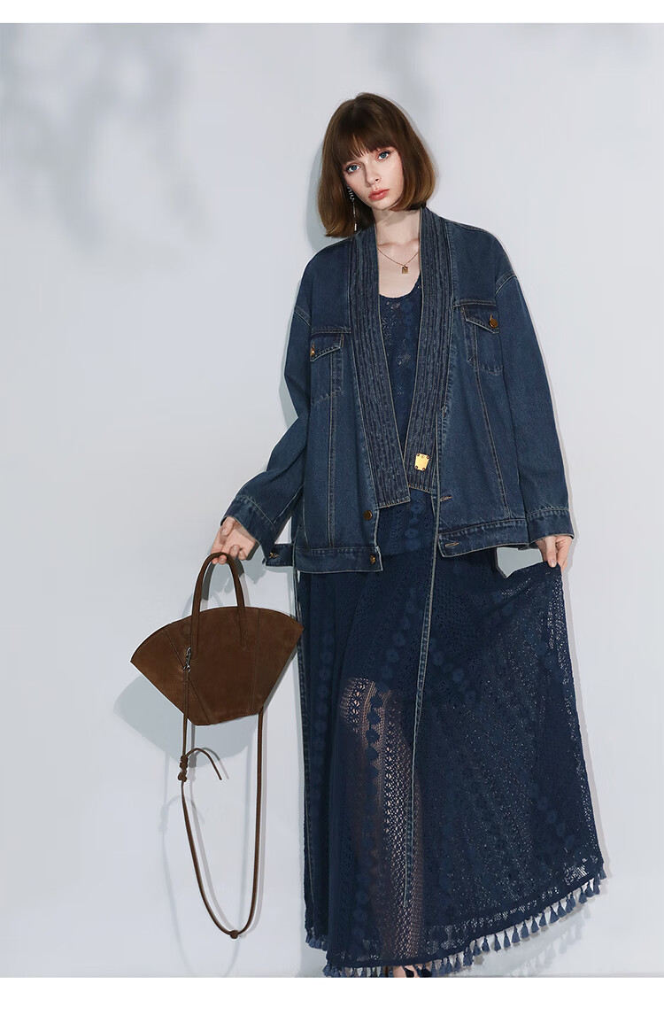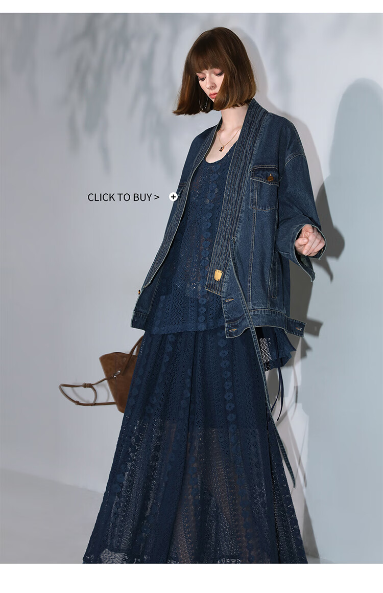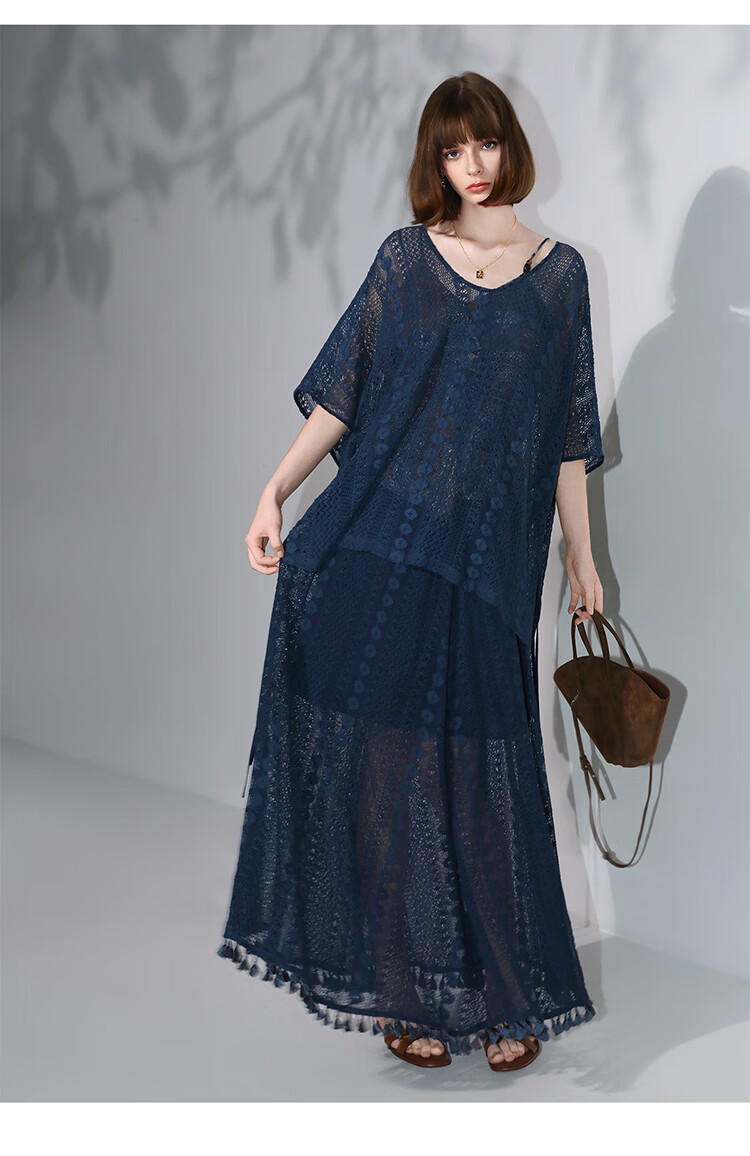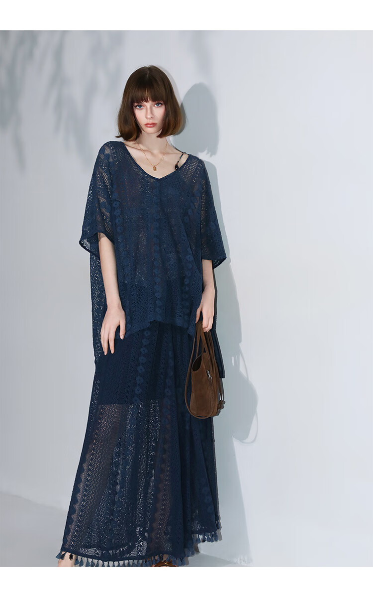 COCOBELLA重工镂空刺绣蕾丝半身裙度假流苏大摆长裙HS3063-3