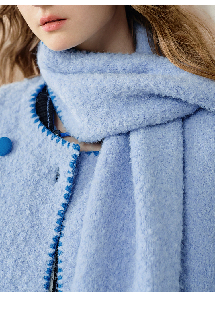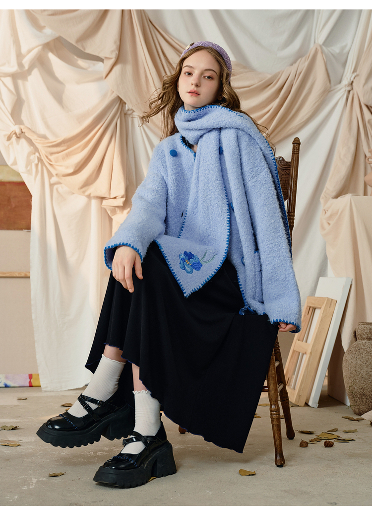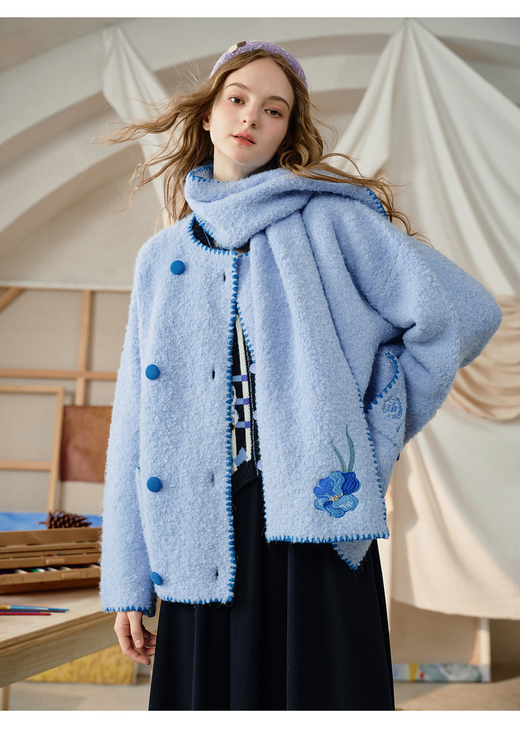 两三事梵高文艺2025秋冬新款刺绣围巾圈圈纱毛衣外套女