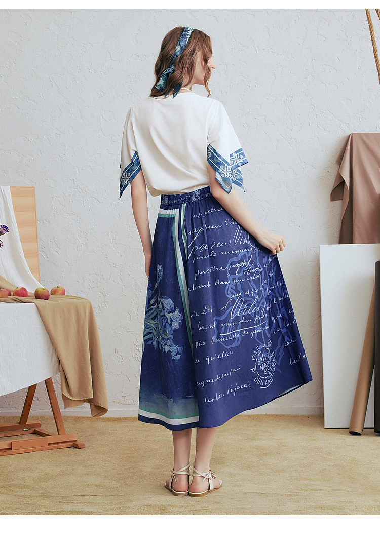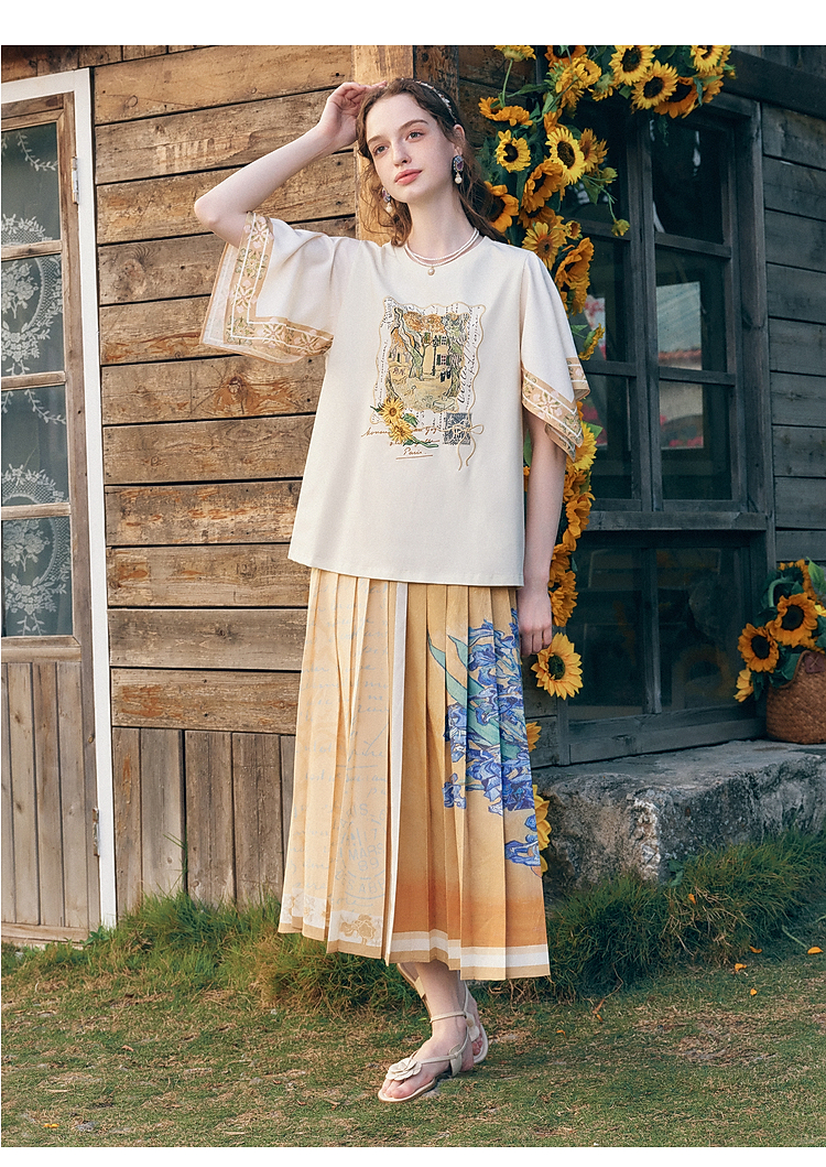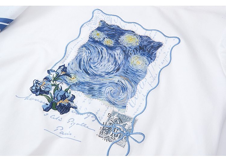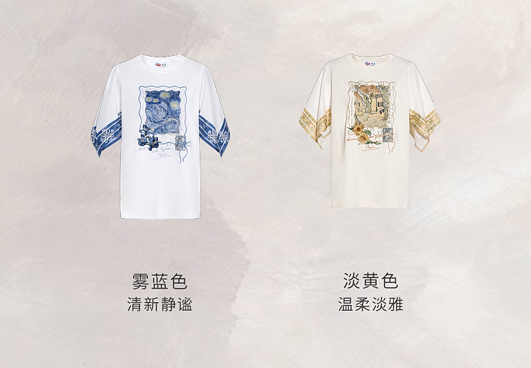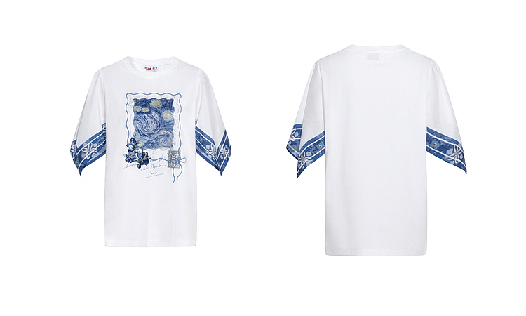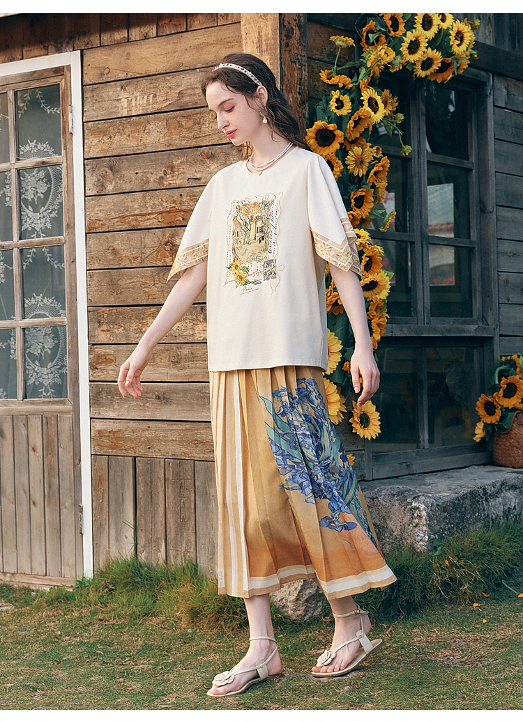 两三事梵高文艺风铃纸鸢2026春新款小清新印花不规则袖t恤女宽松