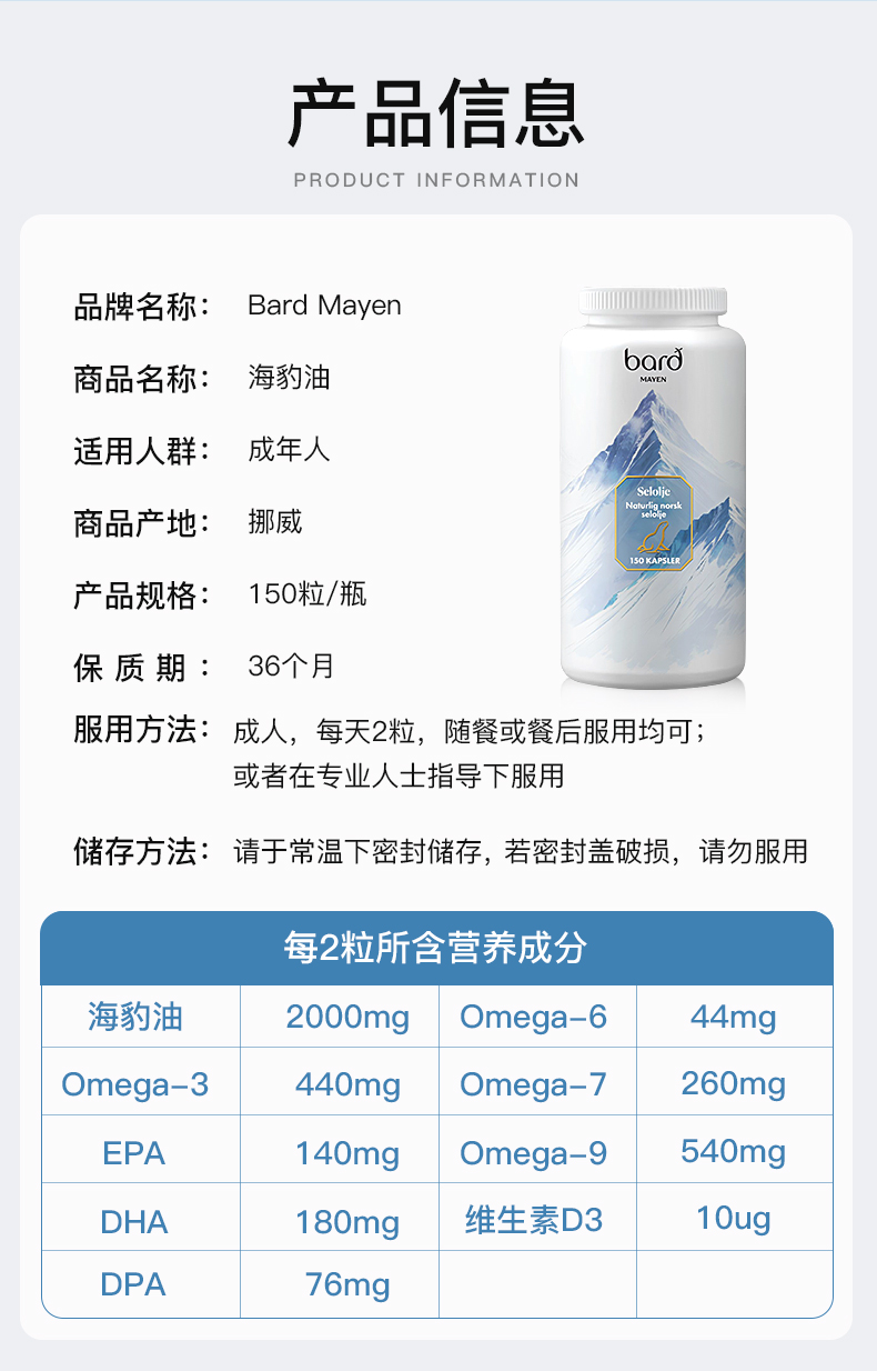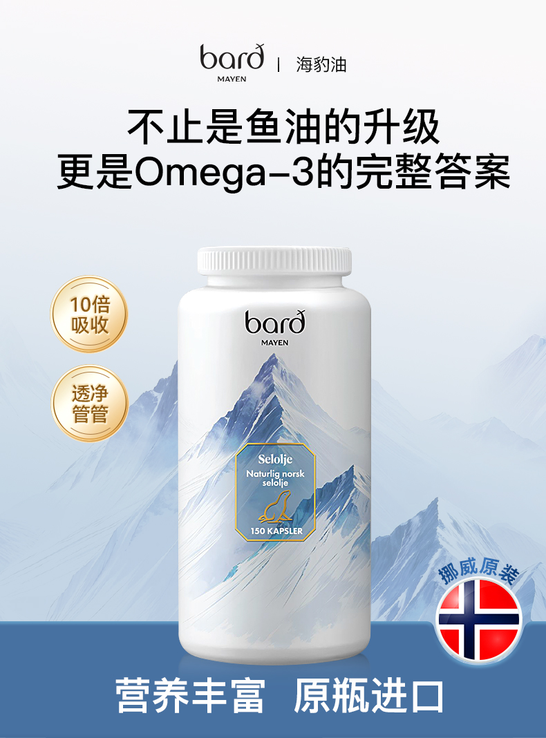 Bard Mayen挪威进口高纯中老年成人海豹油150粒