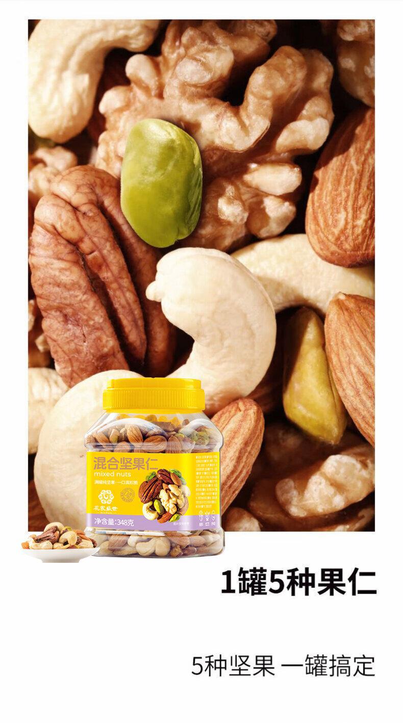 【自营】花家盛世 0添加混合坚果仁348g多巴胺罐装紫衣腰果巴旦木碧根果新鲜健康 HJSSJG007