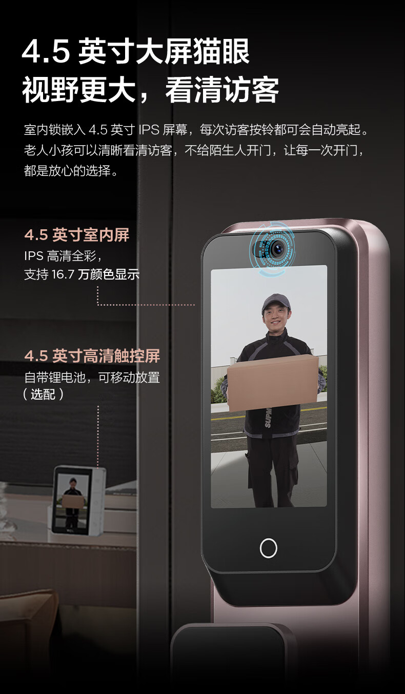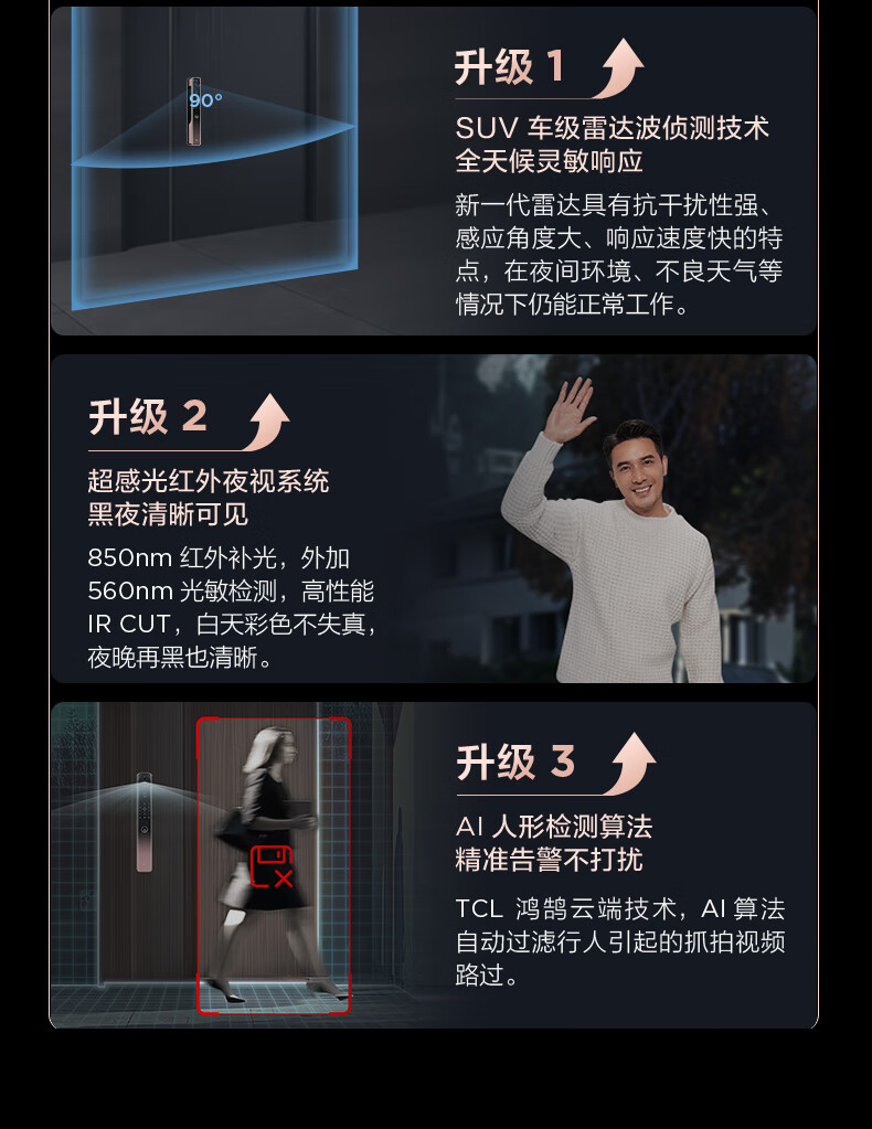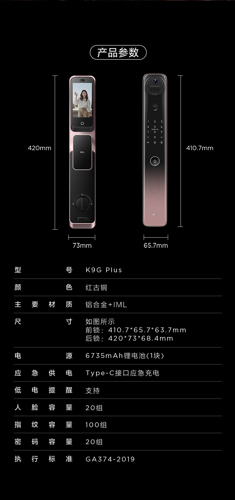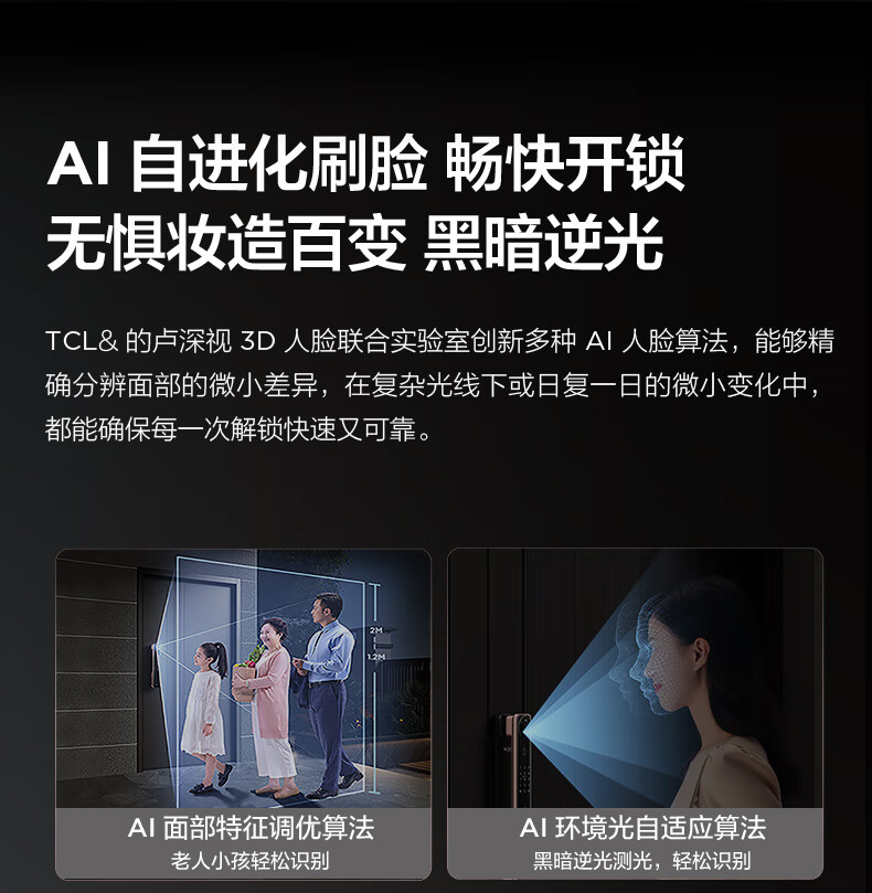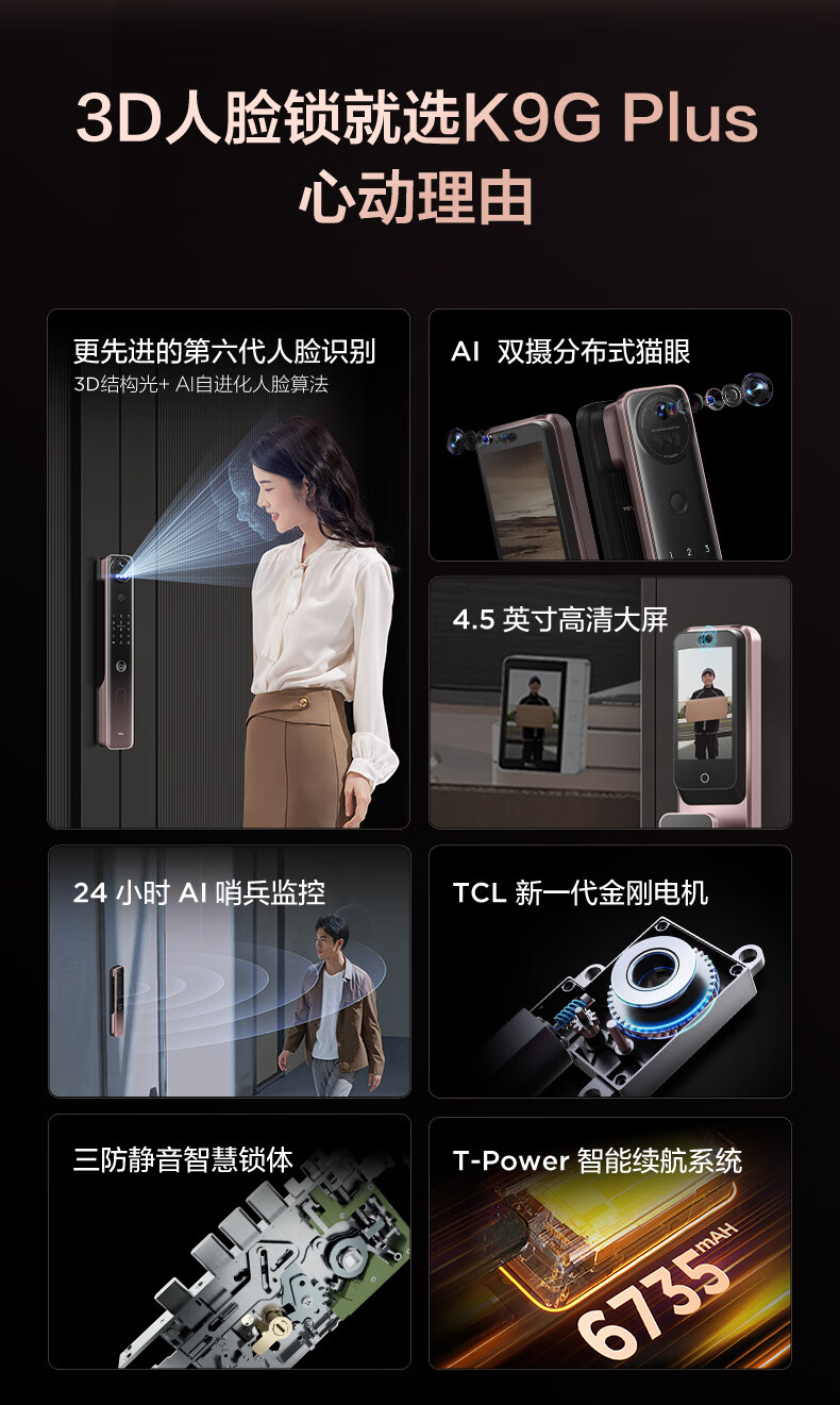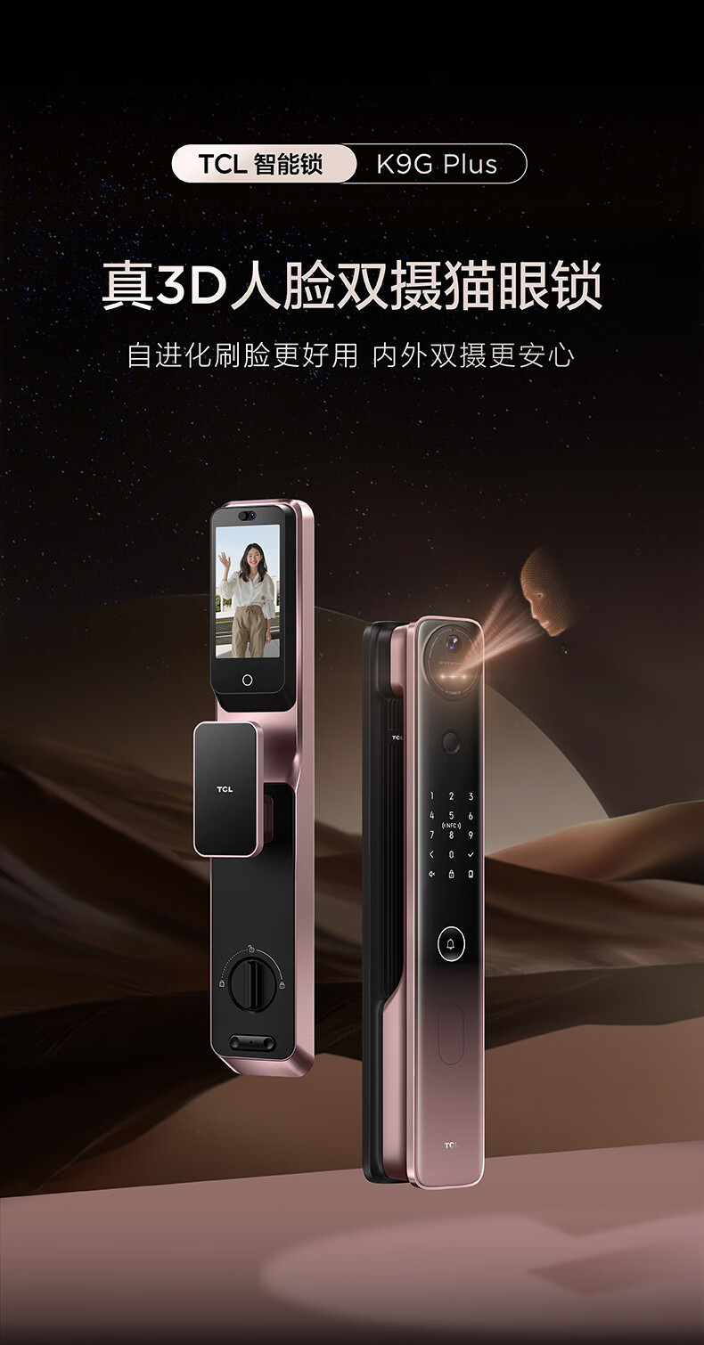 【门店同款】TCL灵速3D人脸双摄猫眼全自动智能门锁K9G Plus指纹密码锁哨兵猫眼