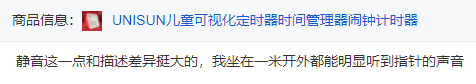 不过有1个妈妈反馈说指针走动不够静音,第一次推荐时候,我指的静音是,没有突兀的到时提醒铃声吓孩子一跳。