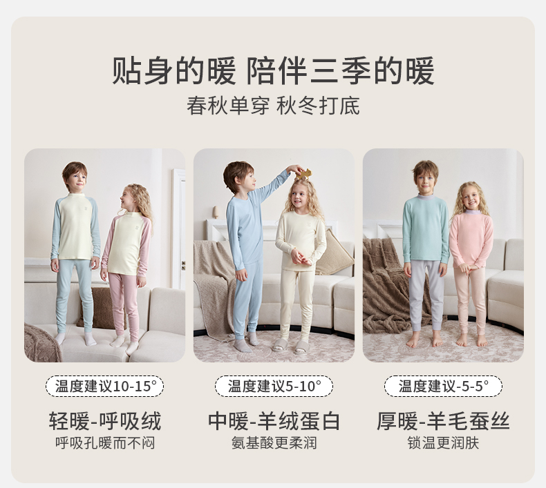 【宝宝服饰】嫚熙儿童家居服保暖内衣套装羊毛蚕丝男女童秋冬校服打底秋衣秋裤