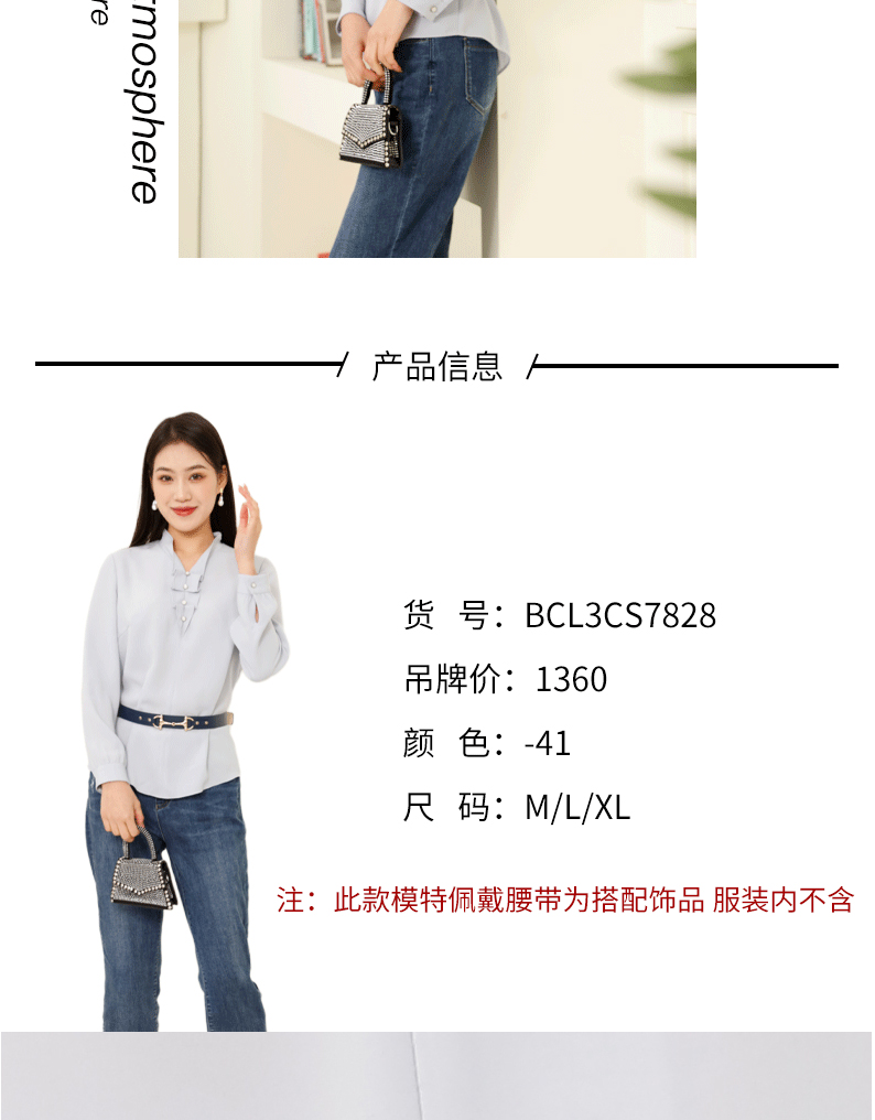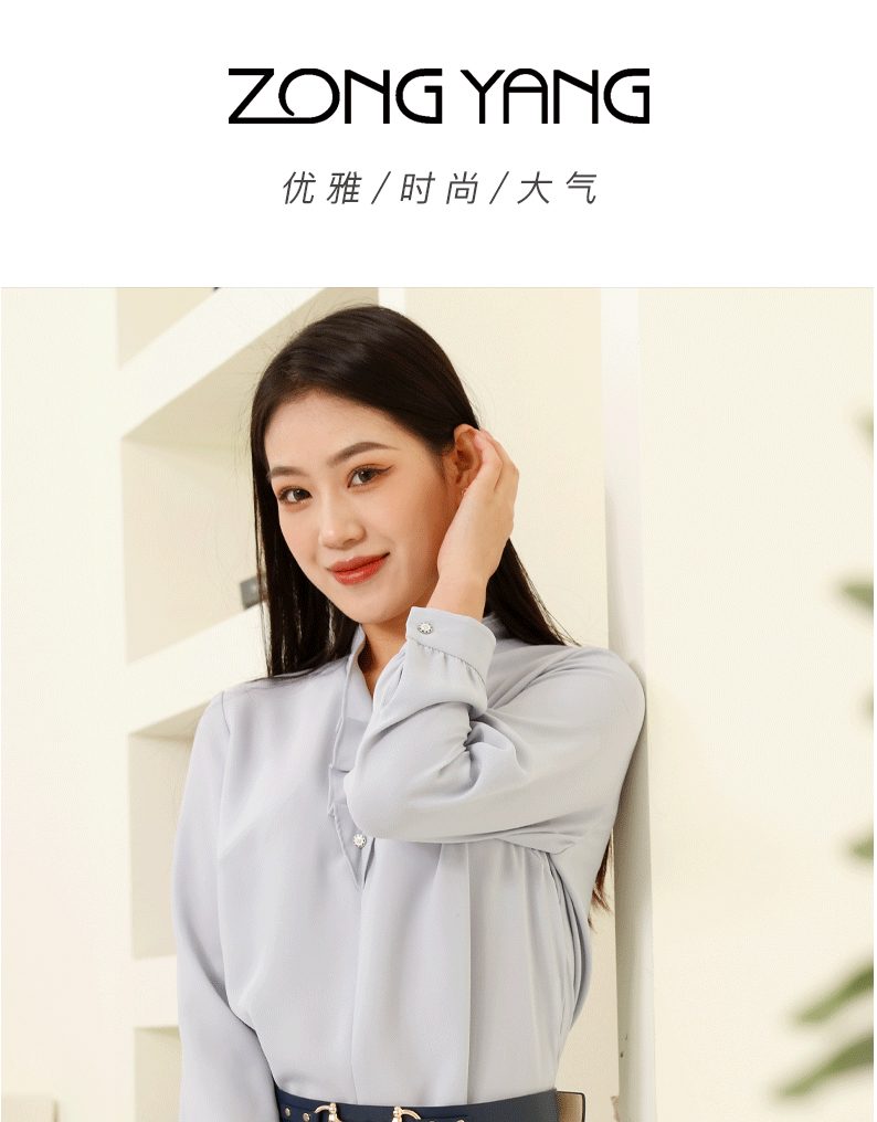 宗洋zongyang女装2022春季新品雪纺V领衬衣长袖衬衫BCL3CS7828-41