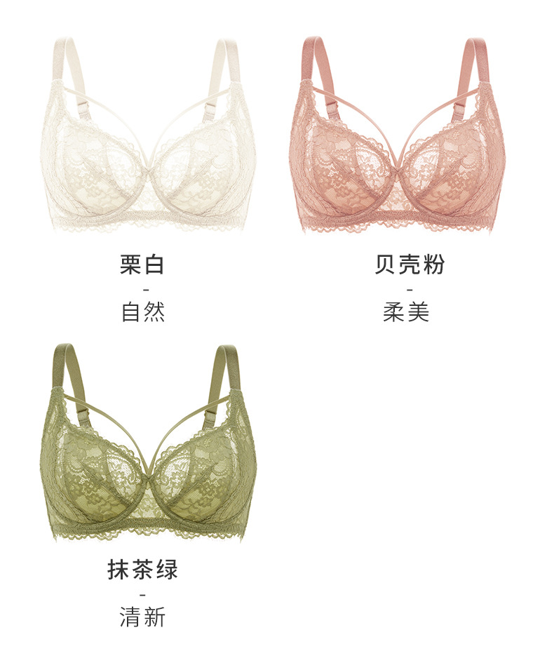 抹茶2024新款内衣女全罩杯防下垂防凸点微聚拢胸罩轻薄大胸显小文