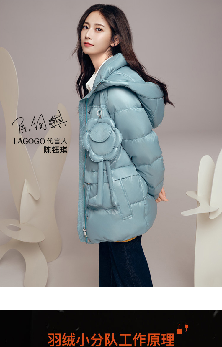 Lagogo拉谷谷2021冬季新款羽绒服女加厚白鸭绒外套KCYY23XC79