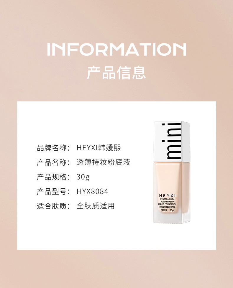 【买一送一】HEYXI韩媛熙持妆粉底液,清透轻薄又防水防汗,随时保持完美肌肤。BB霜控油、遮瑕、持久,一瓶搞定所有底妆需求。妆容更持久更自然,成为人群中的焦点!