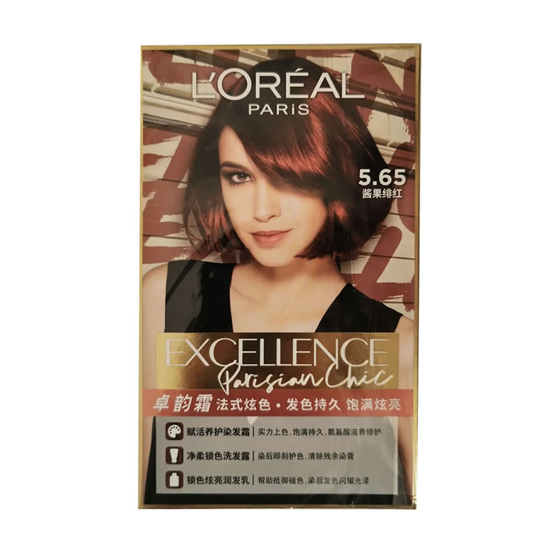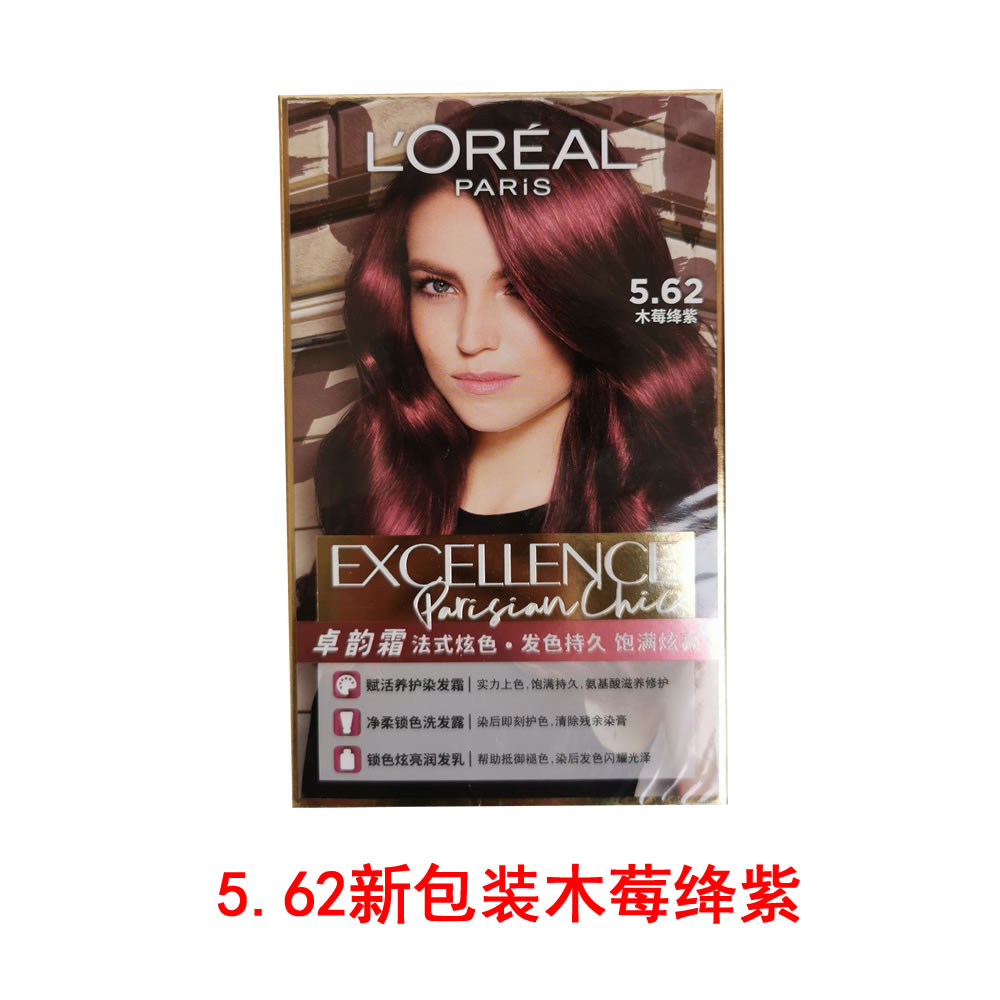 商品名称:【清仓好价】欧莱雅染发霜(可盖白发)5.62木莓绛紫/5.65浆果绯红 (到23年9月)