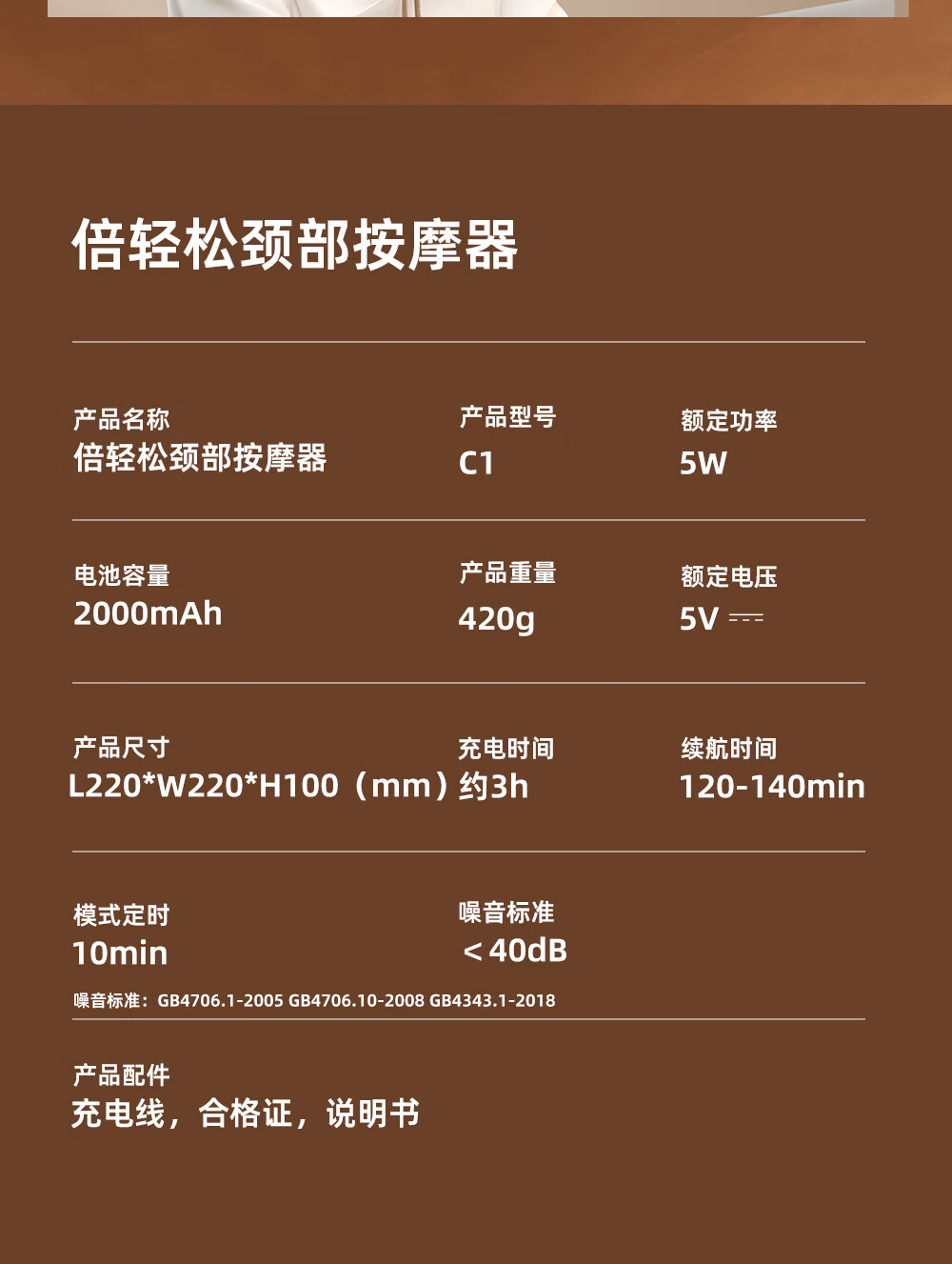 倍轻松颈椎按摩器C1颈部按摩仪器枕环颈U型