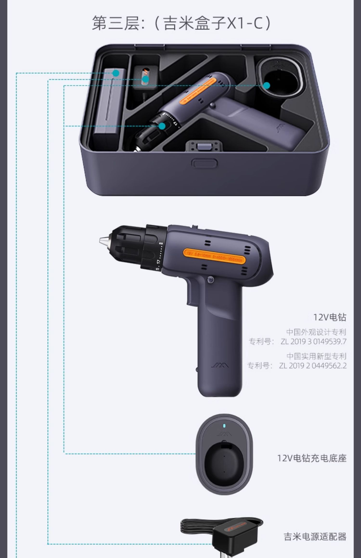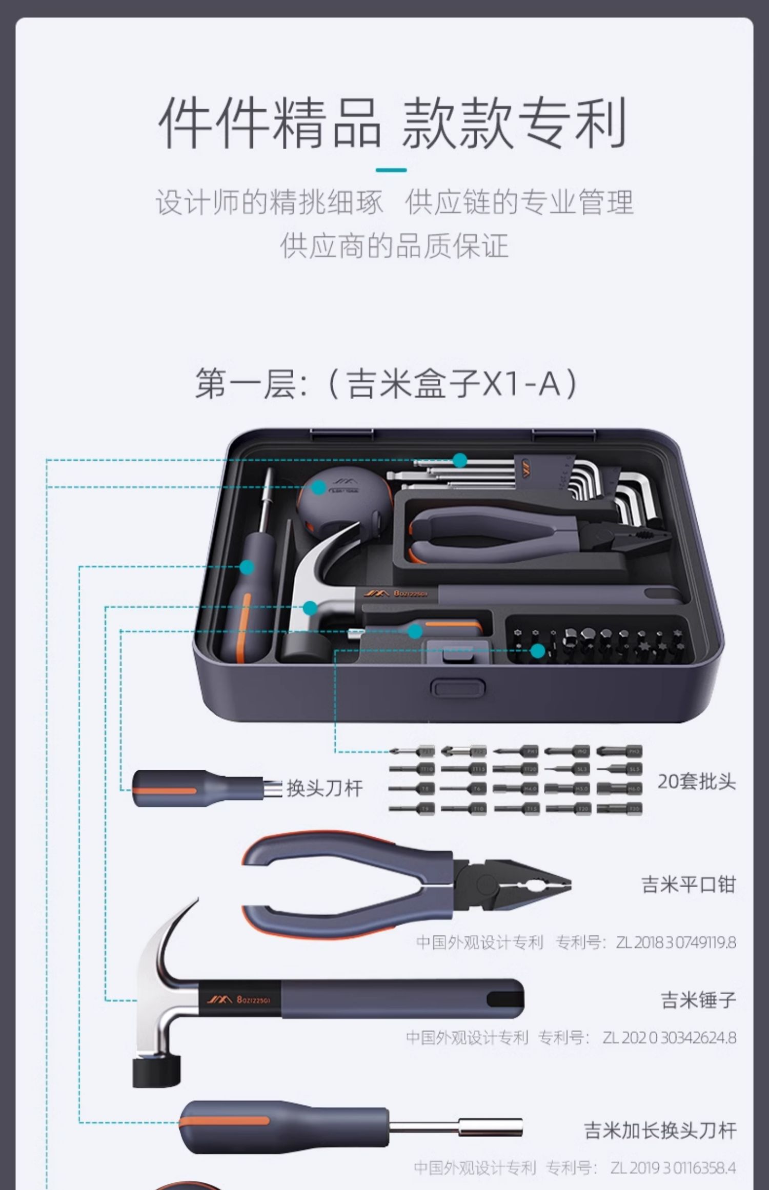 吉米家居X3-ABC家用工具套装五金电钻多功能全套电动组合工具箱