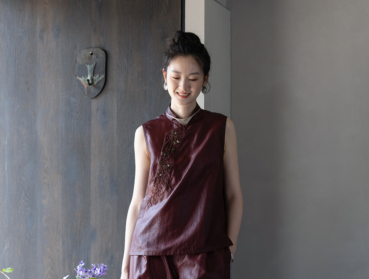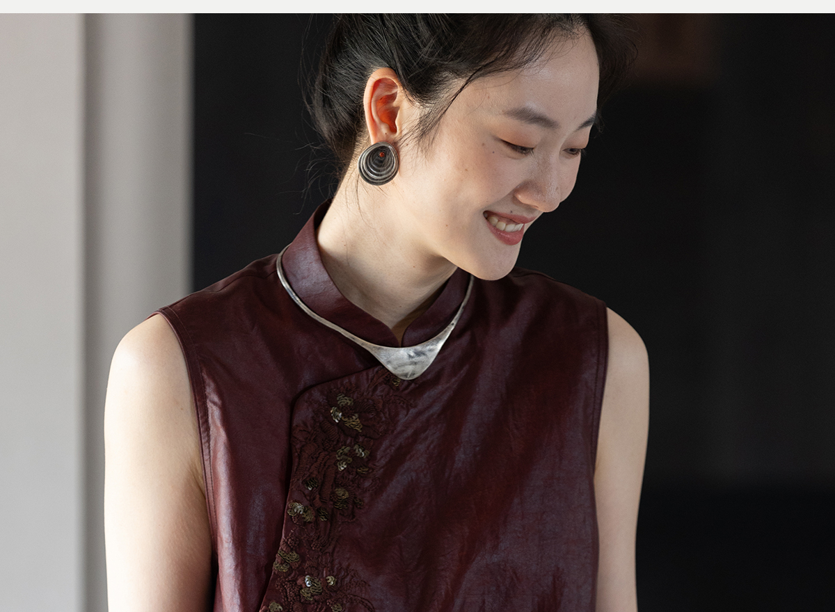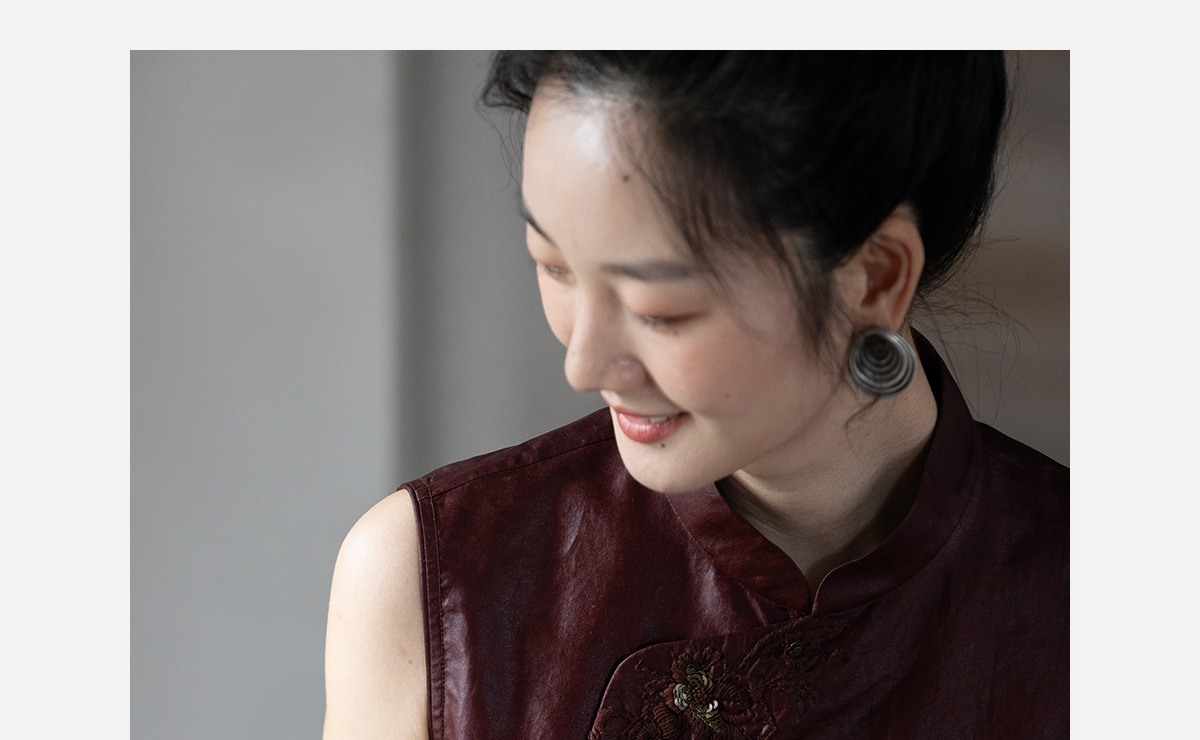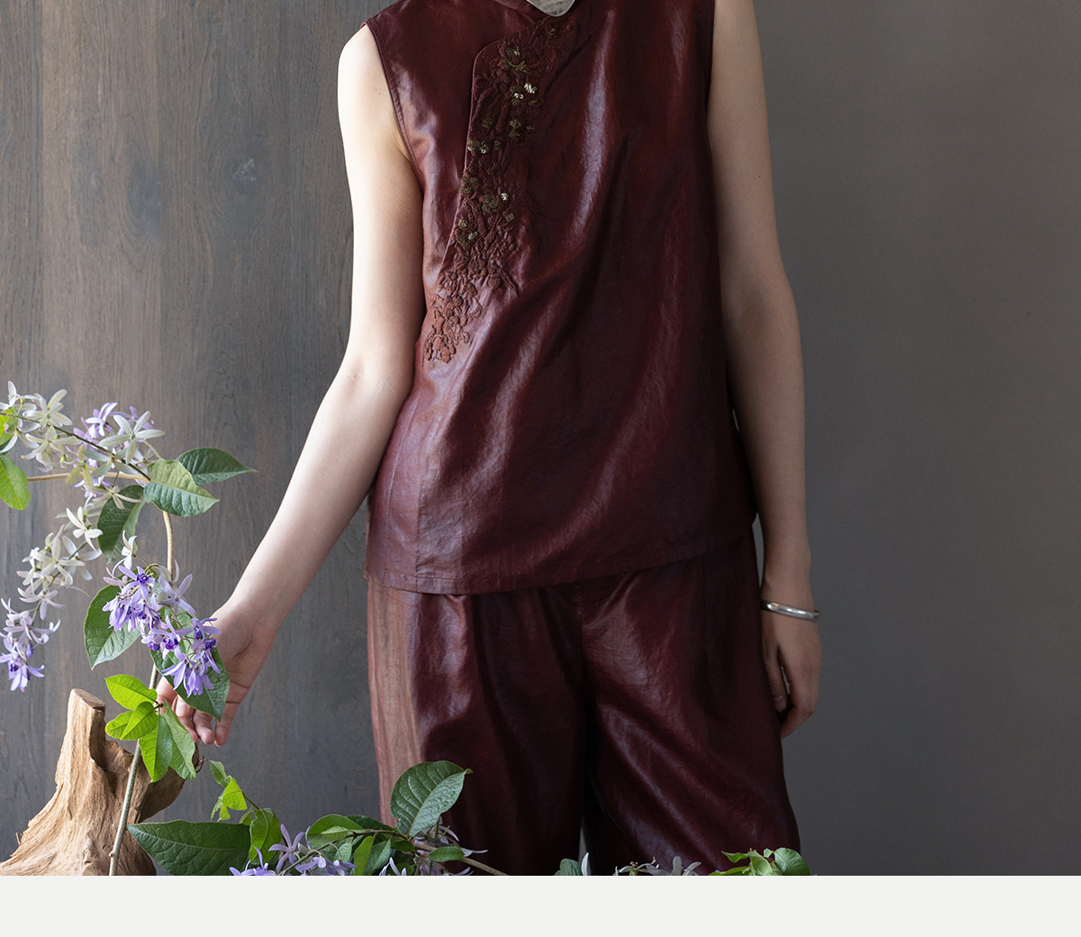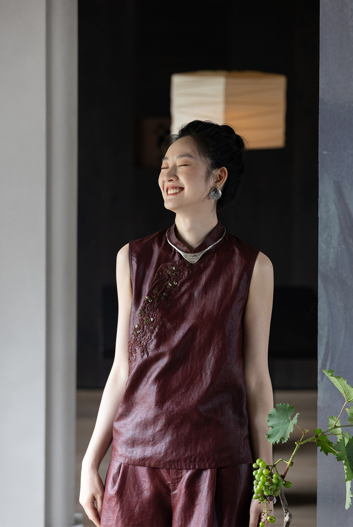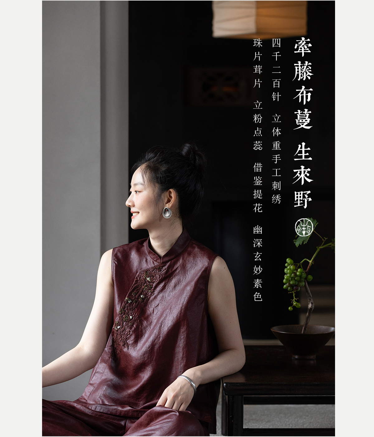 牧衣游原创 重磅28姆米龟裂纹香云纱立体手工刺绣马夹新中式 疏窗