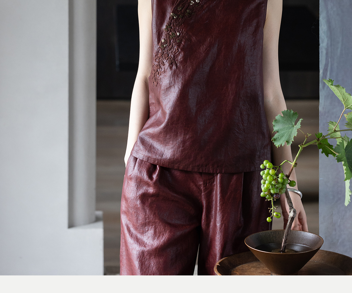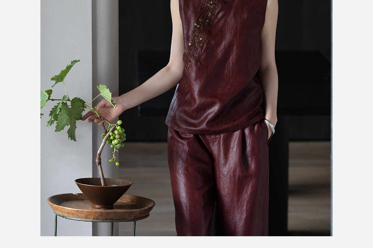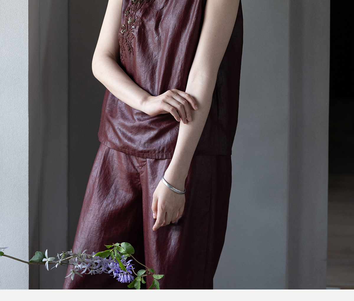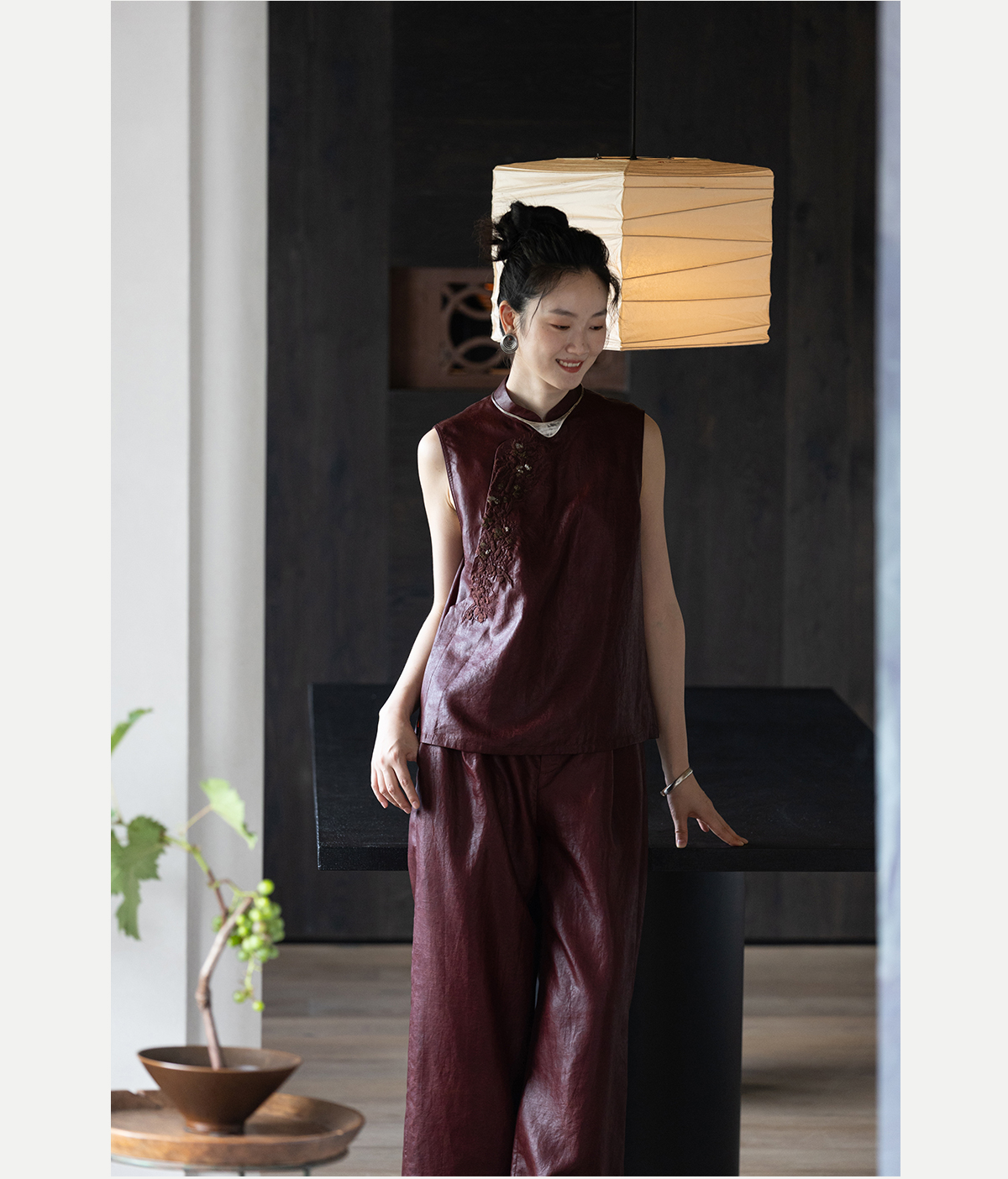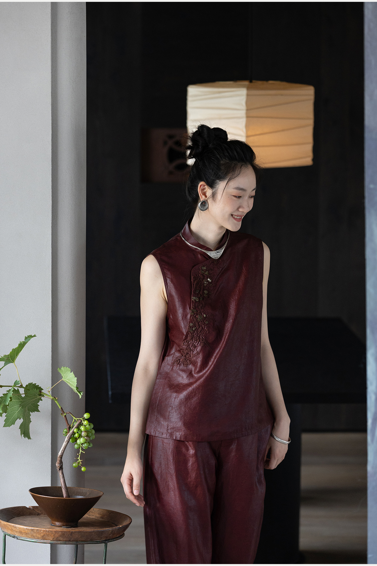 牧衣游原创 重磅28姆米龟裂纹香云纱立体手工刺绣马夹新中式 疏窗