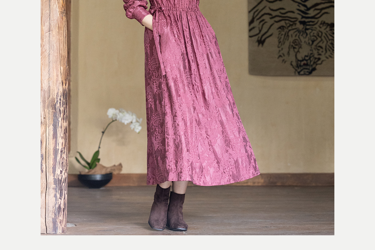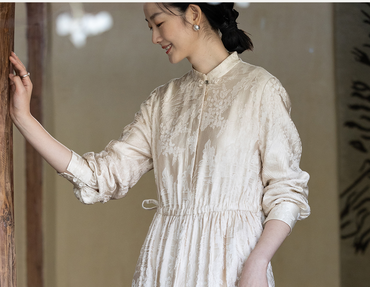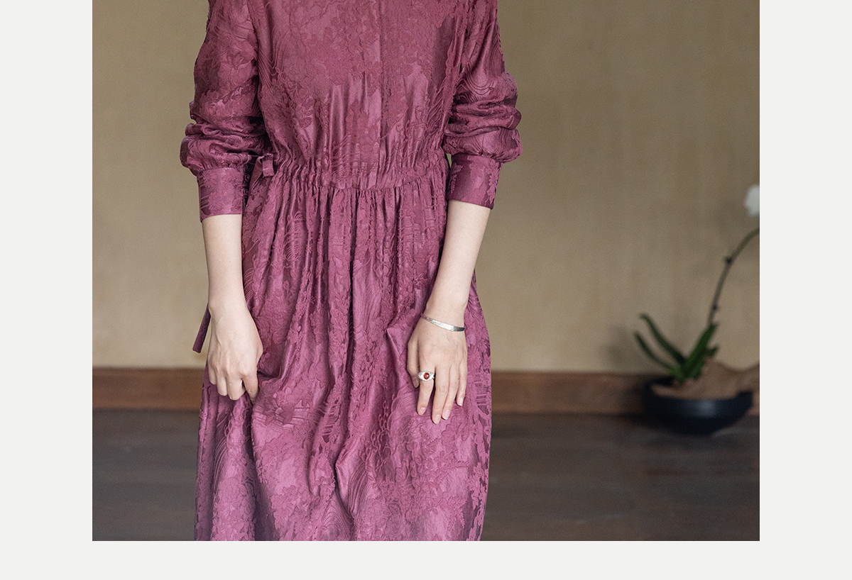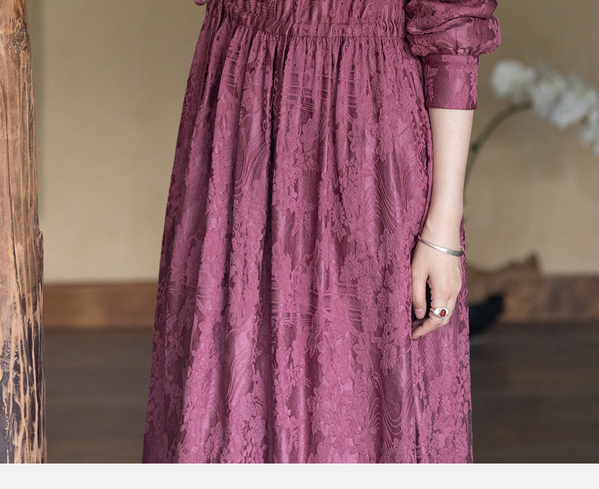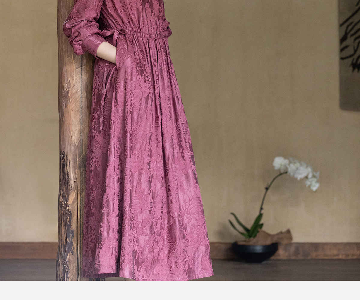 牧衣游原创 29姆米重磅丝麻提花连衣裙冬季新款宽松文艺长裙 衣然