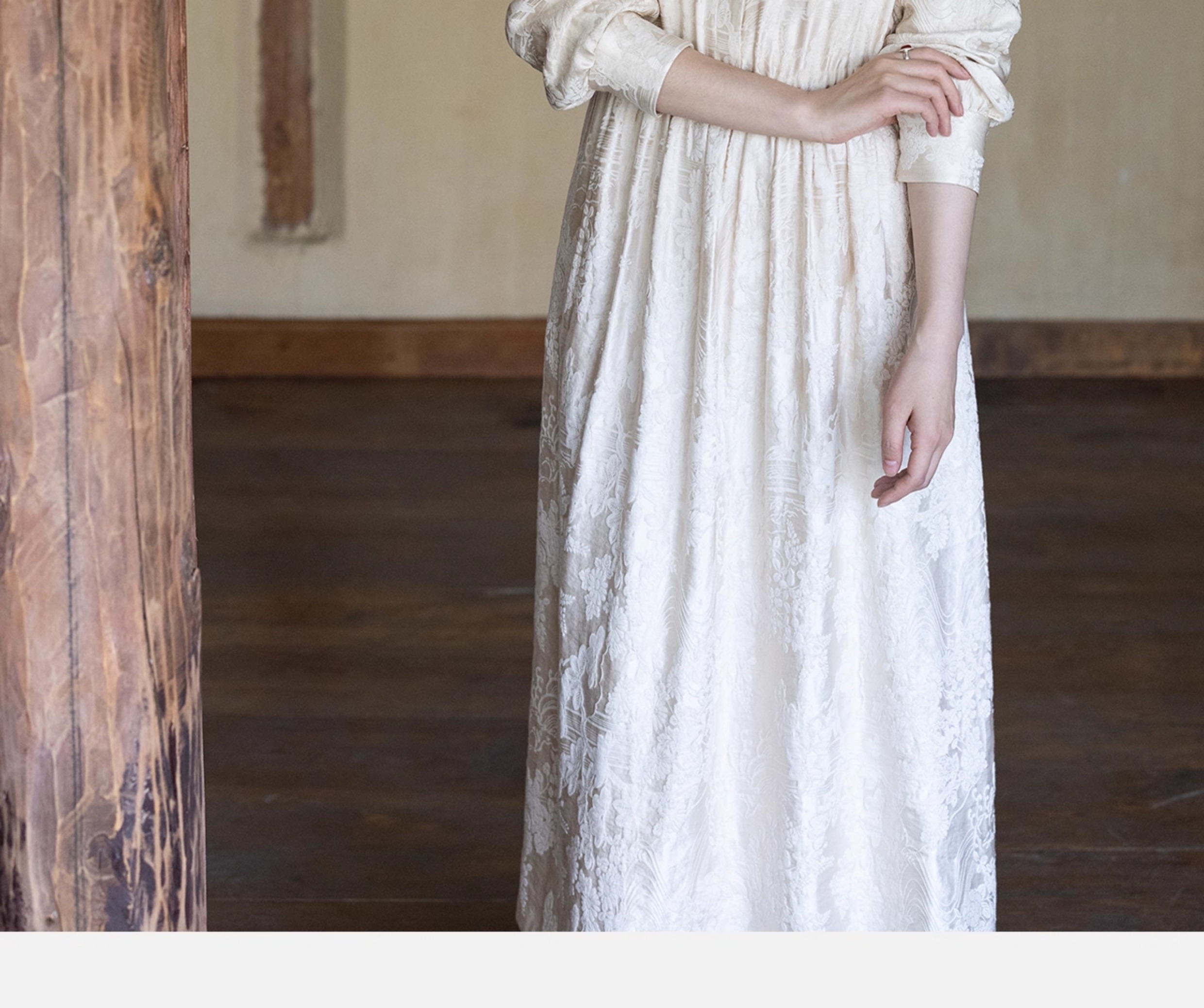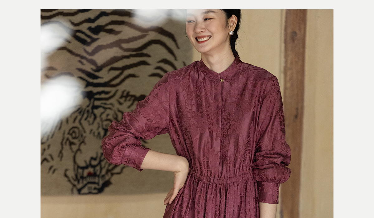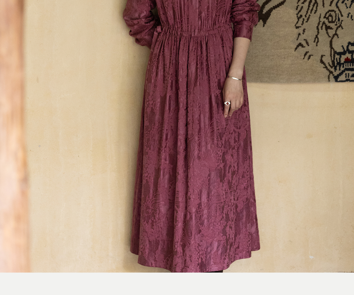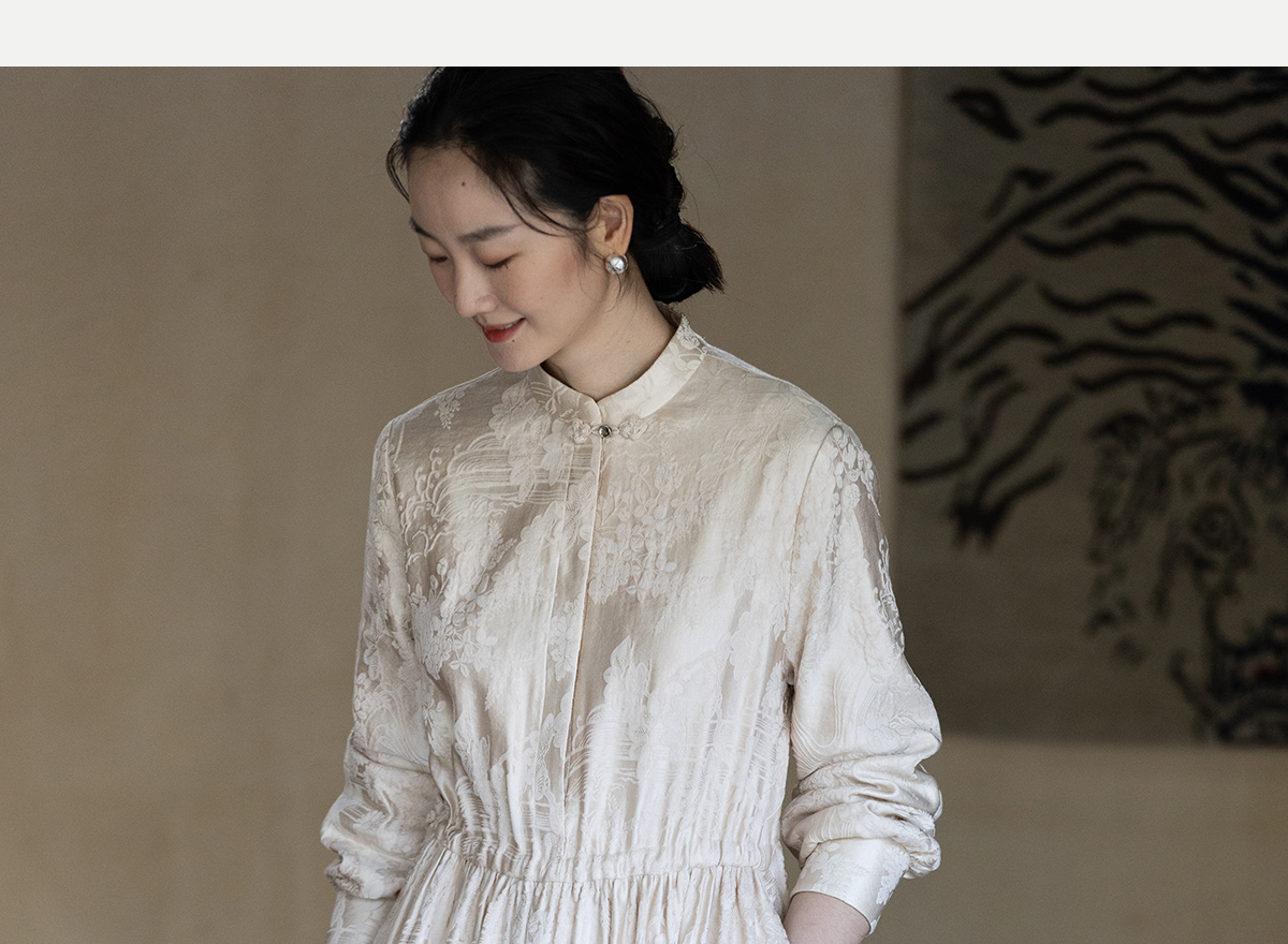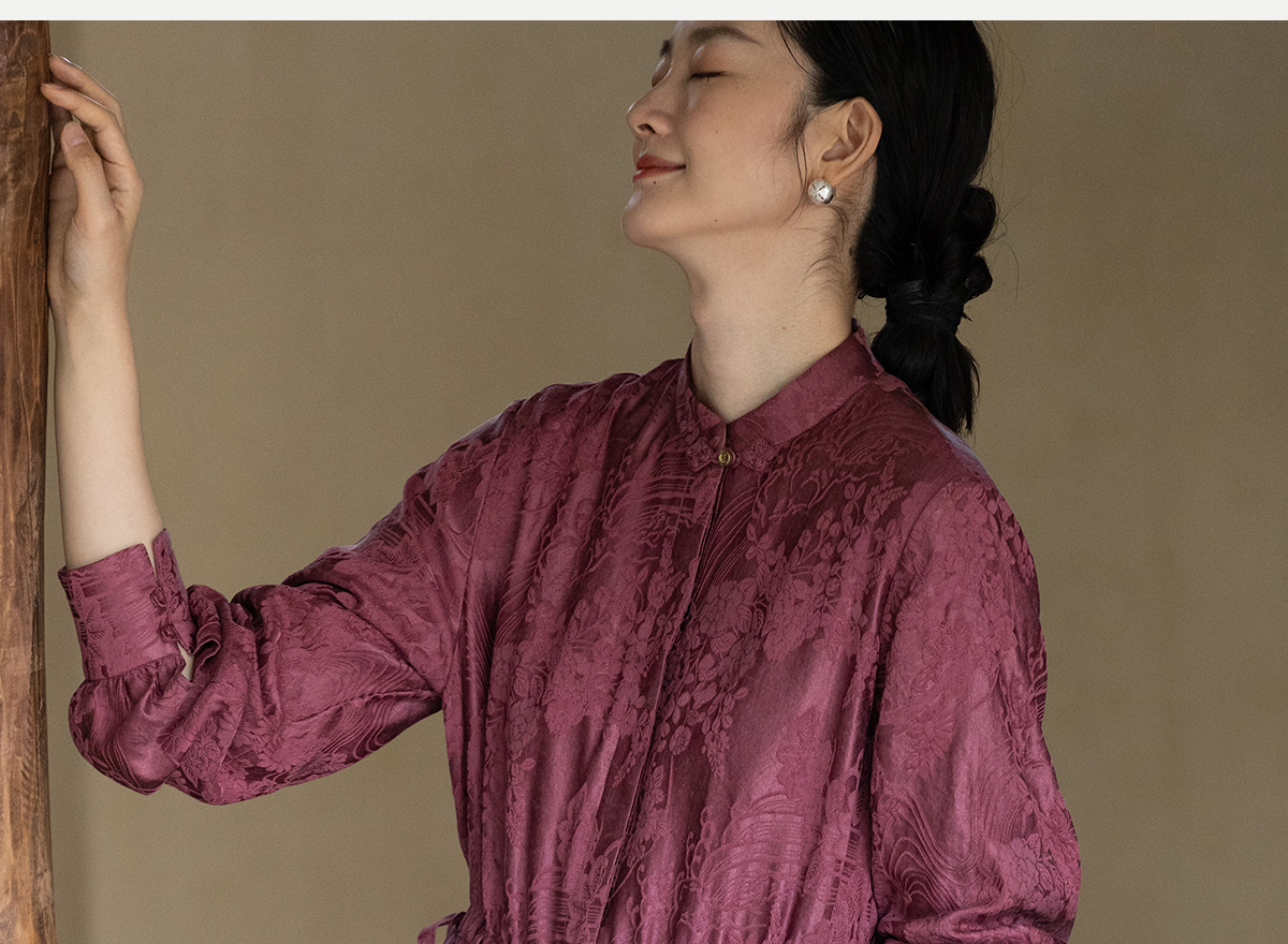 牧衣游原创 29姆米重磅丝麻提花连衣裙冬季新款宽松文艺长裙 衣然