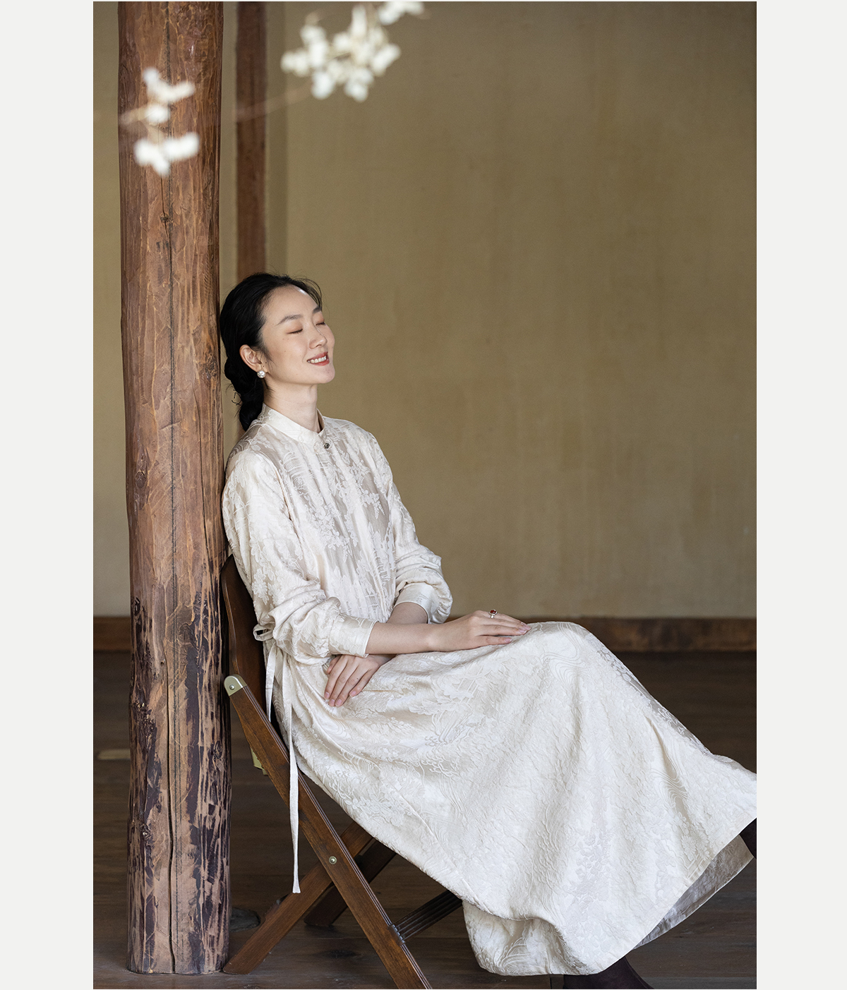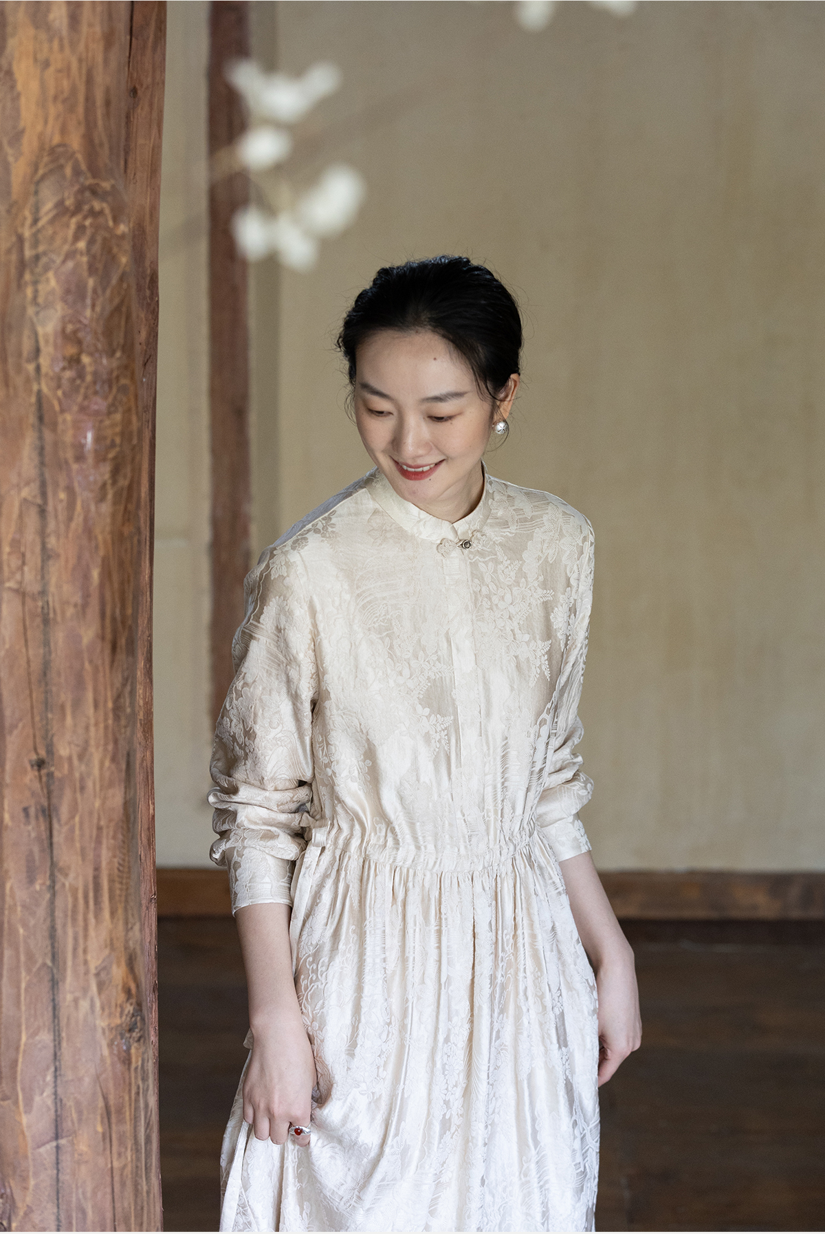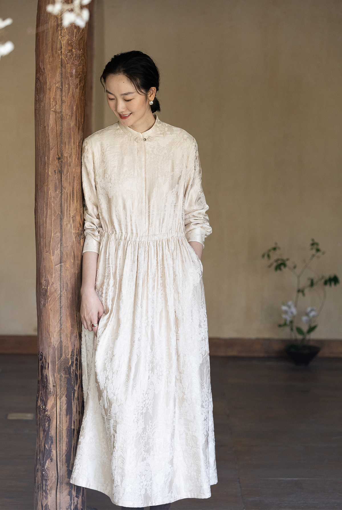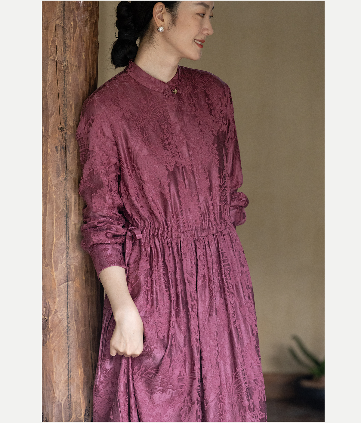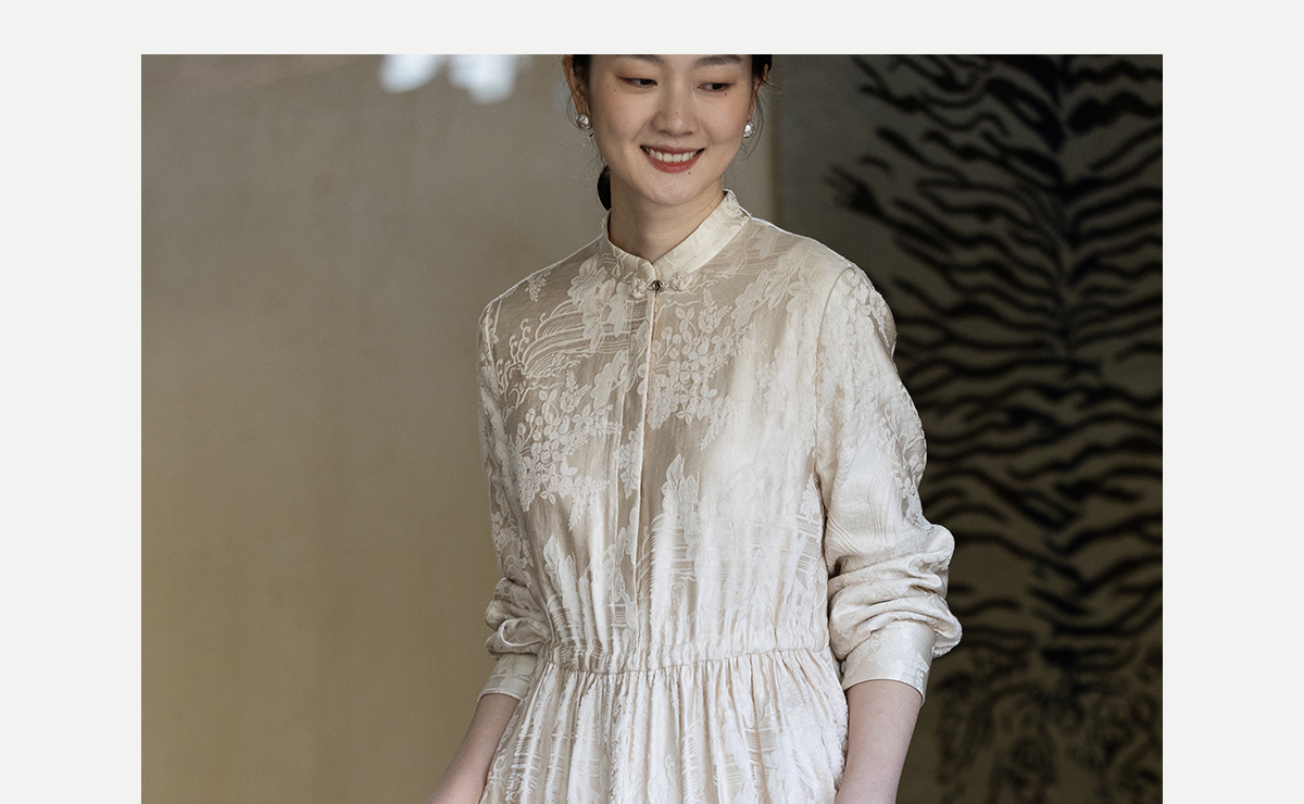 牧衣游原创 29姆米重磅丝麻提花连衣裙冬季新款宽松文艺长裙 衣然