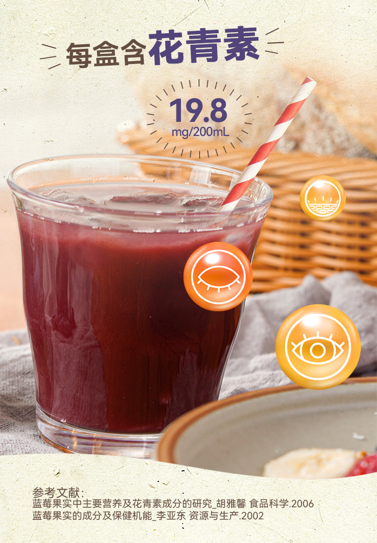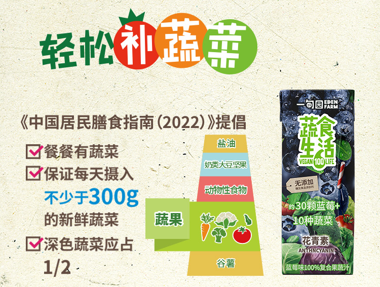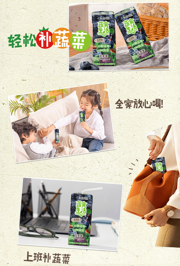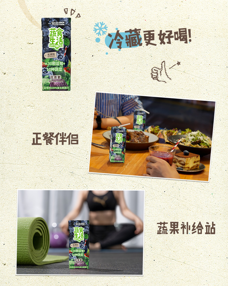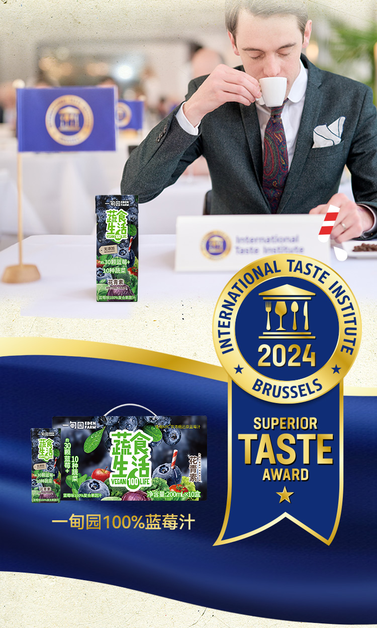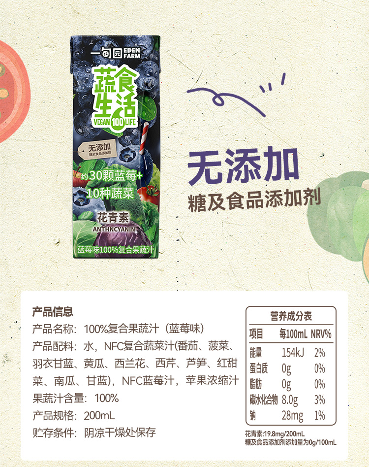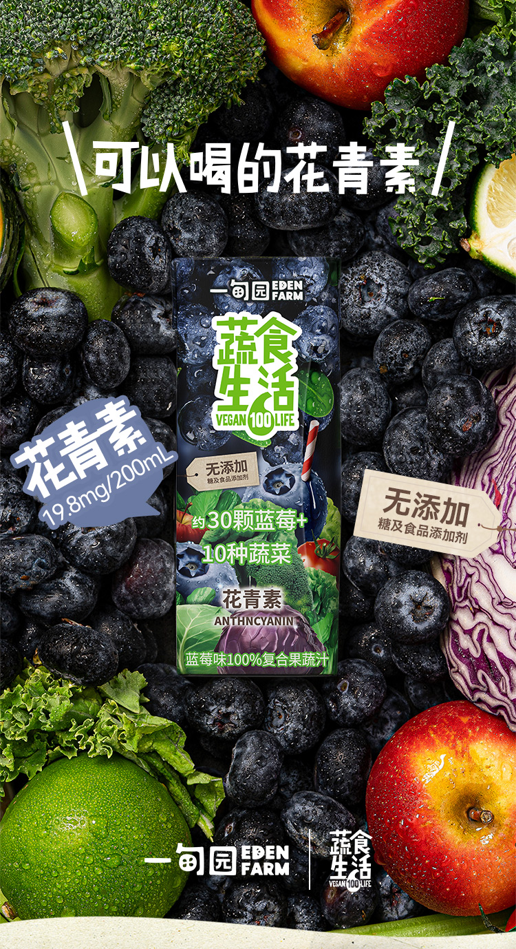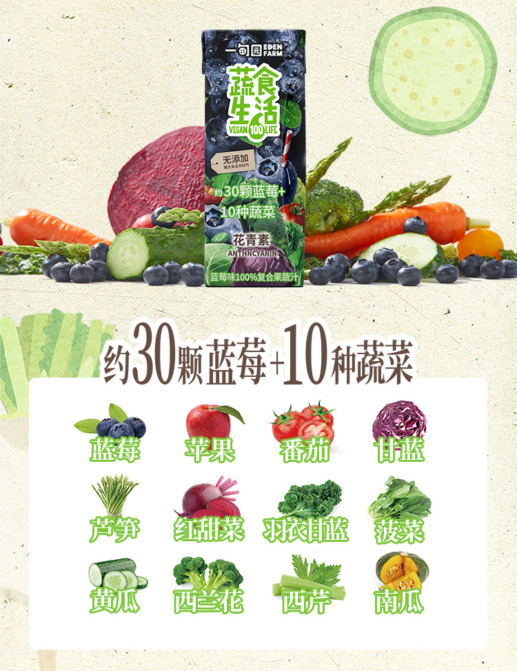 一甸园 蔬食生活100%复合果蔬汁(蓝莓味)200ml*10