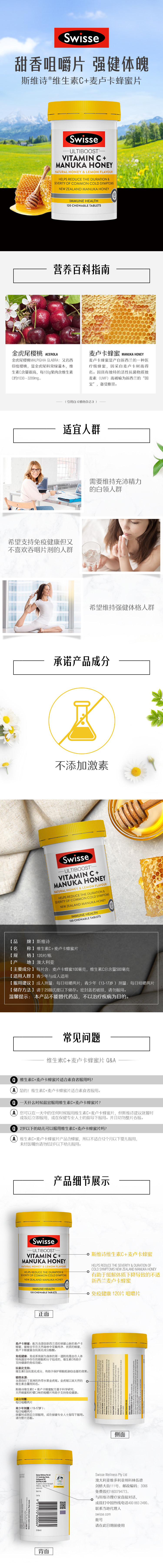 热巴同款Swisse斯维诗维生素C+麦卢卡蜂蜜咀嚼片